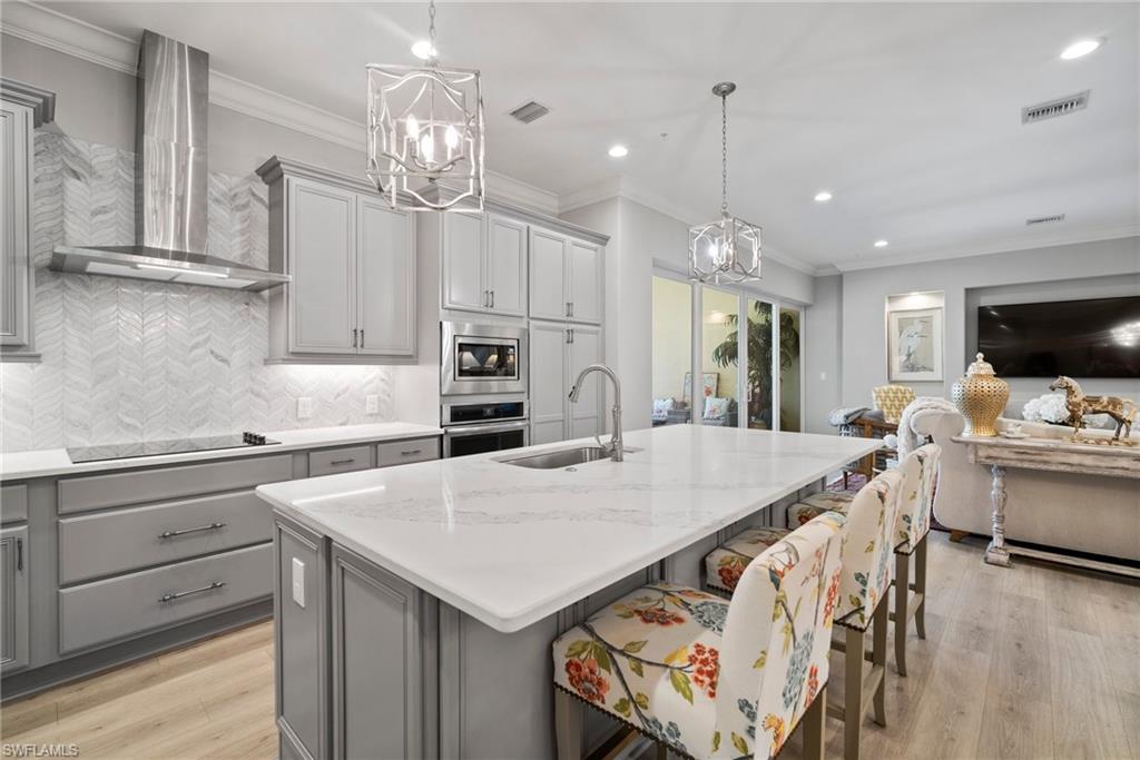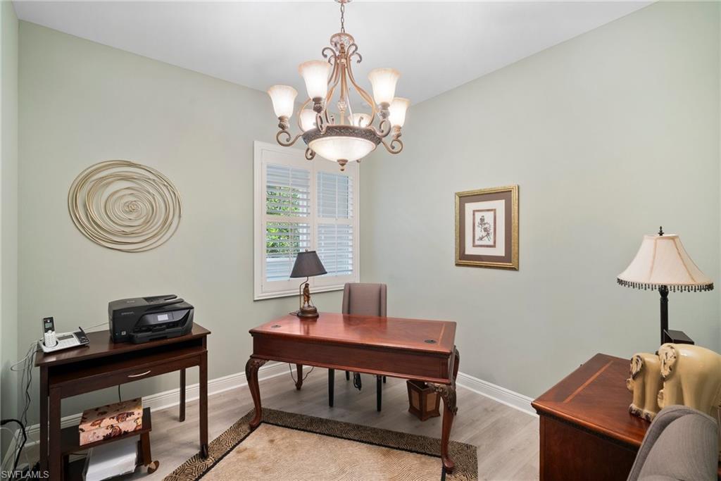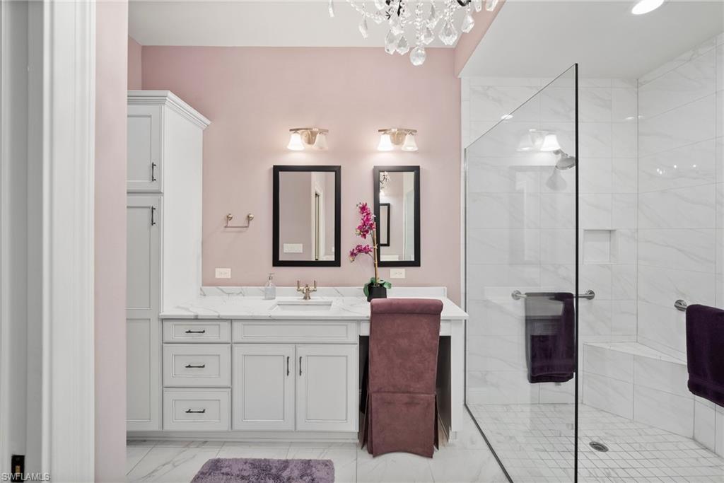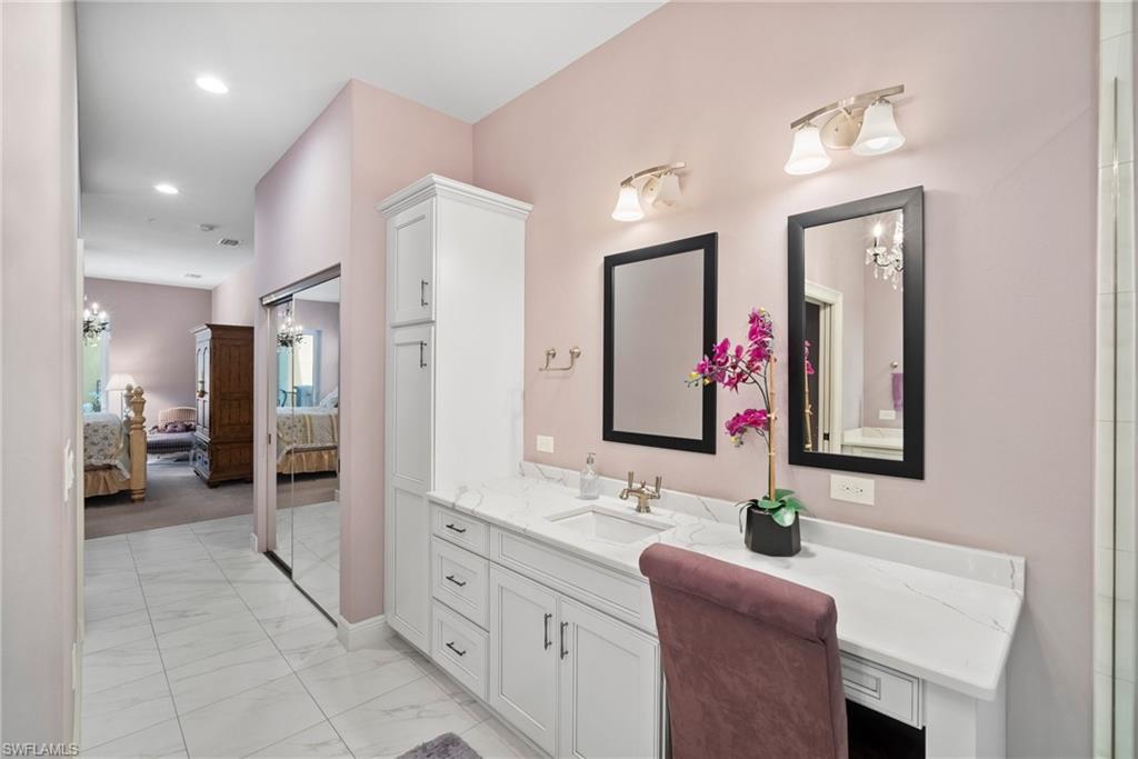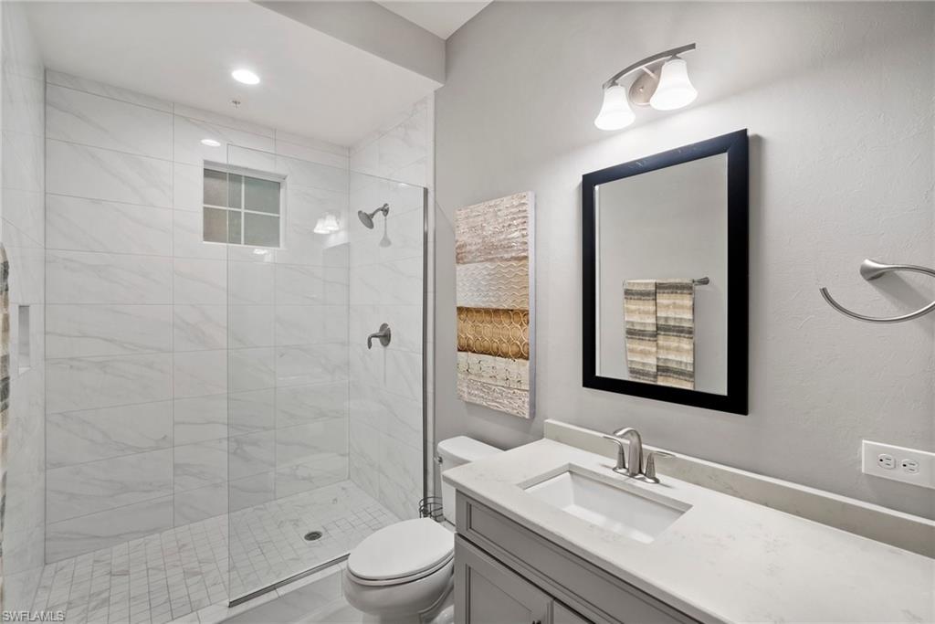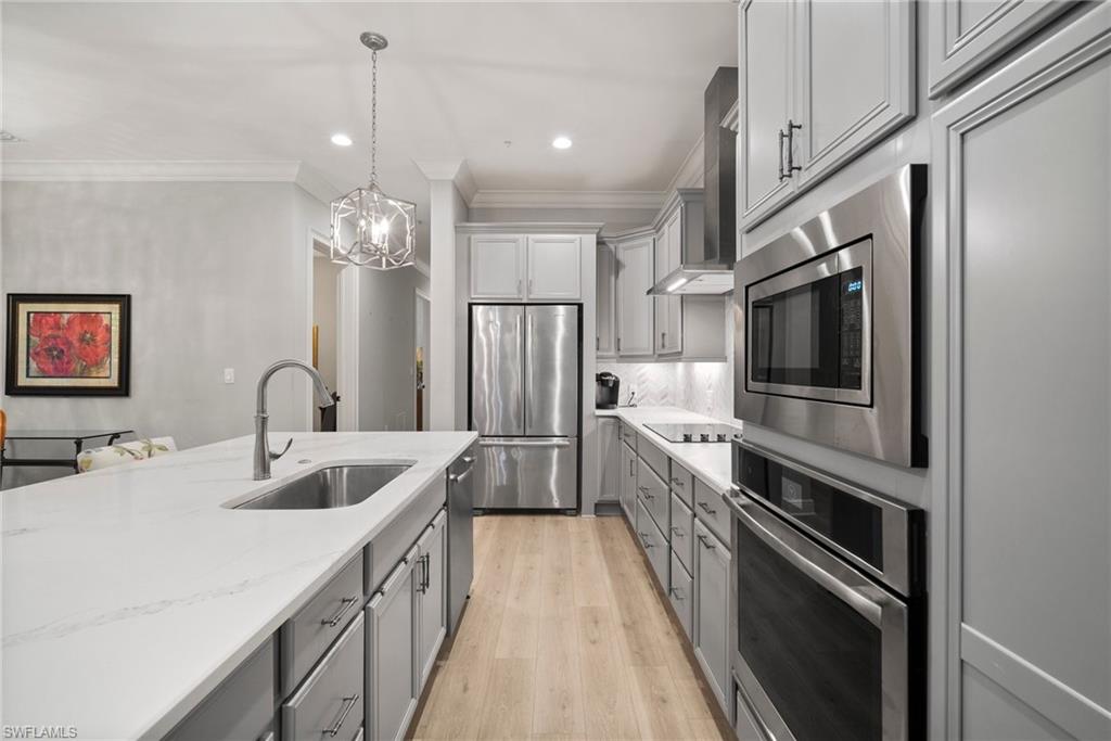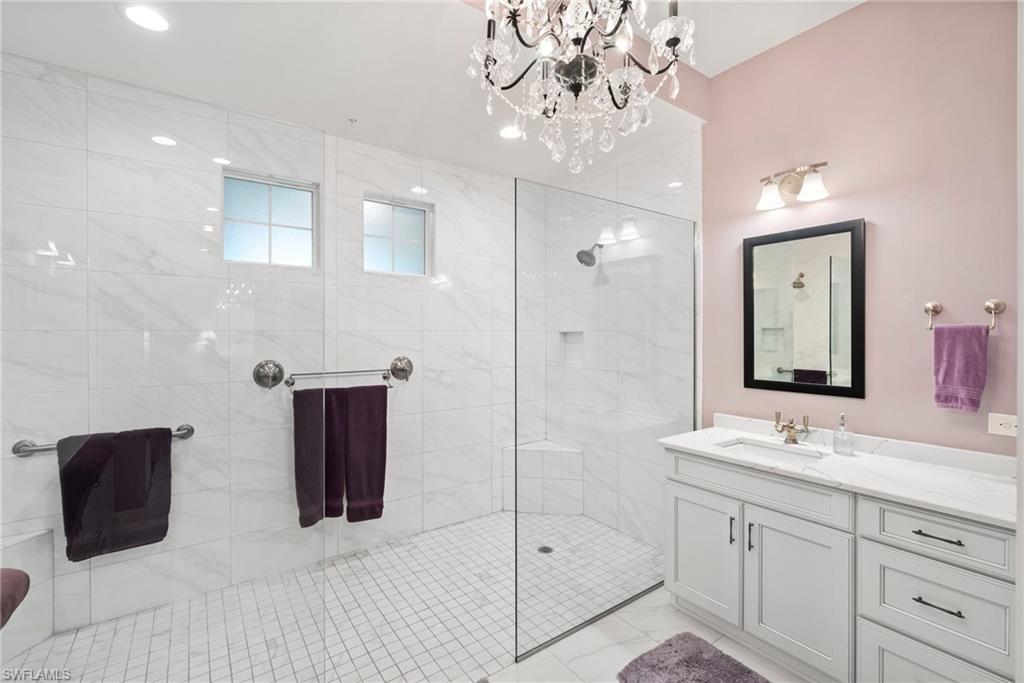 So many great things about this Genova condo. First is the quality, you will not find any condo or house with the better than builder quality. From the time park your car in the oversized 2 car garage with an 18 foot wide door instead of the average 16 foot wide doors of most other communities you will notice the difference immediately and you haven't even been inside the unit yet. The interior is definitely a site to see, from the over 9 foot extended kitchen island with Carrara quartz counters, beautiful light grey cabinets with under cabinet lighting, wall oven and microwave, stainless vent hood with direct vent, electric cooktop and custom marble backsplash make this kitchen truly custom. You will enjoy your great room and dining room that offers so much space for entertaining and a great screened lanai with an awesome view for even more room. Unit is light and bright with all exterior doors and windows impact glass, all interior doors are 8 feet solid core and every interior wall is fully insulated to make sure it's as quiet as possible. Main bathroom is a spa delight. Double showers and shower heads, dual vanities and sinks. You can see the special picked tile in the shower that's a full 3 walls and tile to the ceiling with windows to allow the iight in. Main bedroom is spacious, has a slider to the screened lanai for your morning coffee and it also offers a walk-in closet and a bypass closet. The hall/guest bathroom also has.a window for light a linen closet and another shower with custom wall tile. The guest room was made larger and also offers a walk-in closet. You will notice the french door on the office/study adds to the quality of the entire unit. The only carpet in the entire unit is in the main bedroom all other rooms have hard surface flooring. We haven't even mentioned the great location of Genova in The Village of Estero, great location and so much quality compared to other communities, come take a look you won't be disappointed. Agents, please read confidential comments.