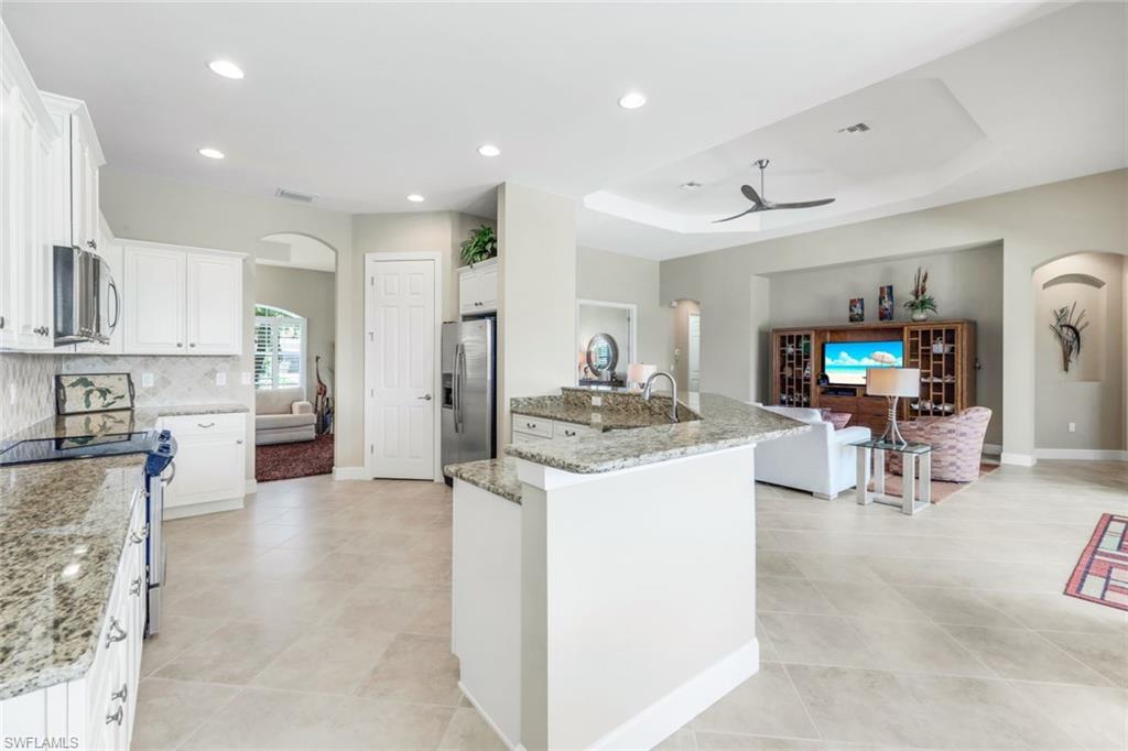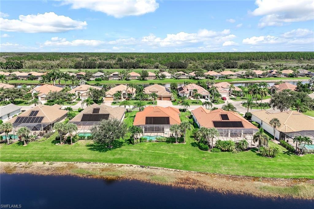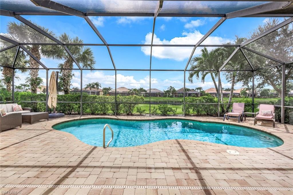 Live the Vacation Lifestyle in a Country Club Setting! No waitlist for OPTIONAL golf membership and a Limited-time 3-year payment plan available, whether you are an avid golfer or simply want the lifestyle without the obligation. This pristine 2-bedroom, 2-bath home with a den (perfect for a 3rd bedroom) offers southern exposure and DIRECT LAKE ACCESS, nestled on a quiet cul-de-sac. With 2,153 square feet of living space under air, this residence is filled with fine details, including diagonal tile, tray ceilings, white cabinets, and stainless steel appliances. Enjoy the convenience of plantation shutters throughout, Storm Smart shutters on the lanai, and solar panels for the pool. Plus, a new AC system was installed in 2023! The Quarry is an amenity-rich, gated lakefront community boasting over 500 acres of lakes ideal for boating, water skiing, paddleboarding, jet skiing, kayaking, and fishing. The newly renovated Beach Club features tennis, pickleball, bocce ball, a Tiki bar, a restaurant, poolside food and drink service, a wellness center, and a full-time activities director to keep you engaged. Optional golf membership is available, making The Quarry a perfect fit for everyone! Embrace the lifestyle you’ve always wanted in this vibrant community!