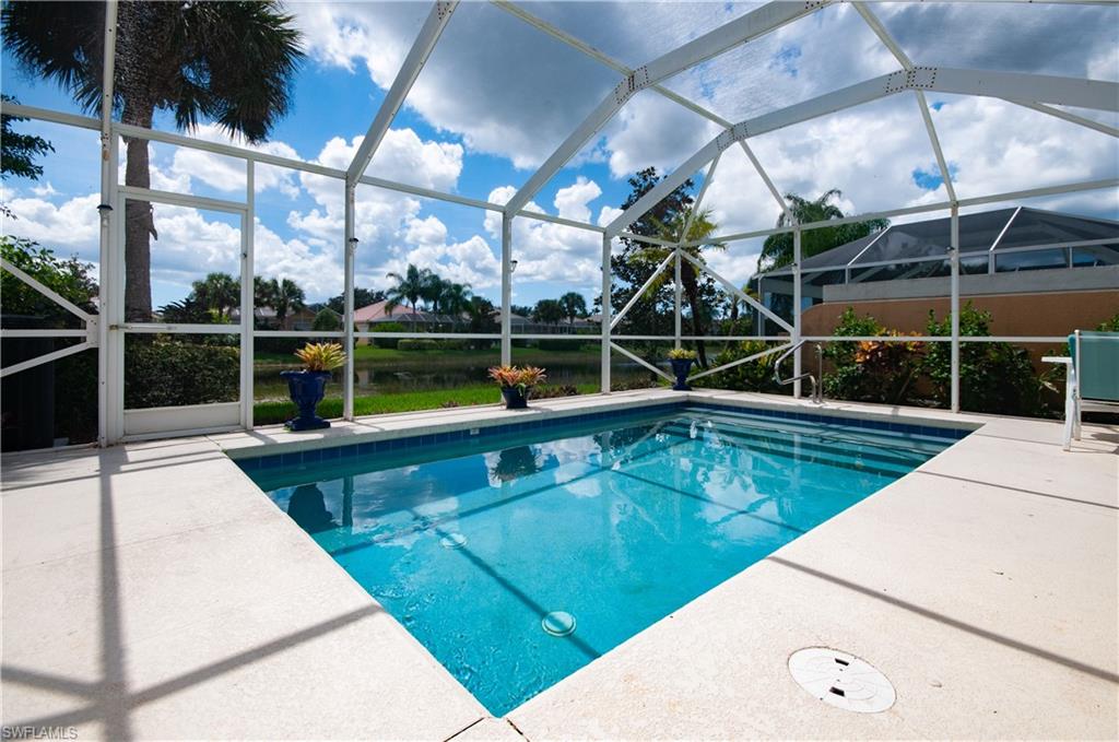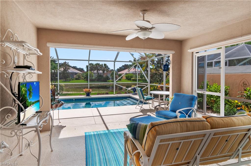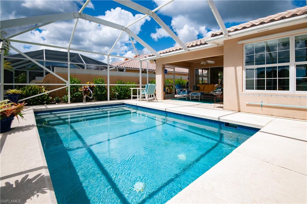 If you're looking for an immaculate, almost new home, then you don't want to miss this one. Pride of ownership shows throughout this beautiful furnished Capri, poured concrete home, built by DiVosta. The open floor plan is wonderful for entertaining your family and friends during the holidays and other festive times. You're updated kitchen has plenty of beautiful cabinets with New Doors, hand made by the Amish; Newer appliances; New Counter Tops; Sink, kitchen faucet and a sit-down Spacious Breakfast Bar. For privacy, there are Two master bedrooms with separate bathrooms, walk in closets with built-ins, are located at opposite sides of your home. At the end of the day, you can relax in the comfort of your Den, or the outside seating extended entertaining room overlooking your heated pool with a view of the canal/lake. Your A/C; Hot Water Heater and kitchen Appliances have all been updated. The laundry room has lots of cabinets for storage, built in laundry sink, and includes large pantry/storage closet. You'll love your two-car spacious garage that includes a portable Gas Generator. Verona Walk offers Resort & Lap Pools; Tennis; Pickleball; Basketball and Bocce; Children Play Area; Fitness Center: Performing Arts (Acting, Jazz, Tap dancing, Chorus, Musicals, Band) and a FULL TIME ACTIVITIES DIRECTOR. What a Fun-loving Community. Let's not forget our Post Office; New Restaurant; Hair Salon; Travel Agency; Gas Station and our New Pink Frog Ice cream shop. Welcome to Verona Walk a great place to vacation or retire to, but more important, a wonderful place to call HOME!!