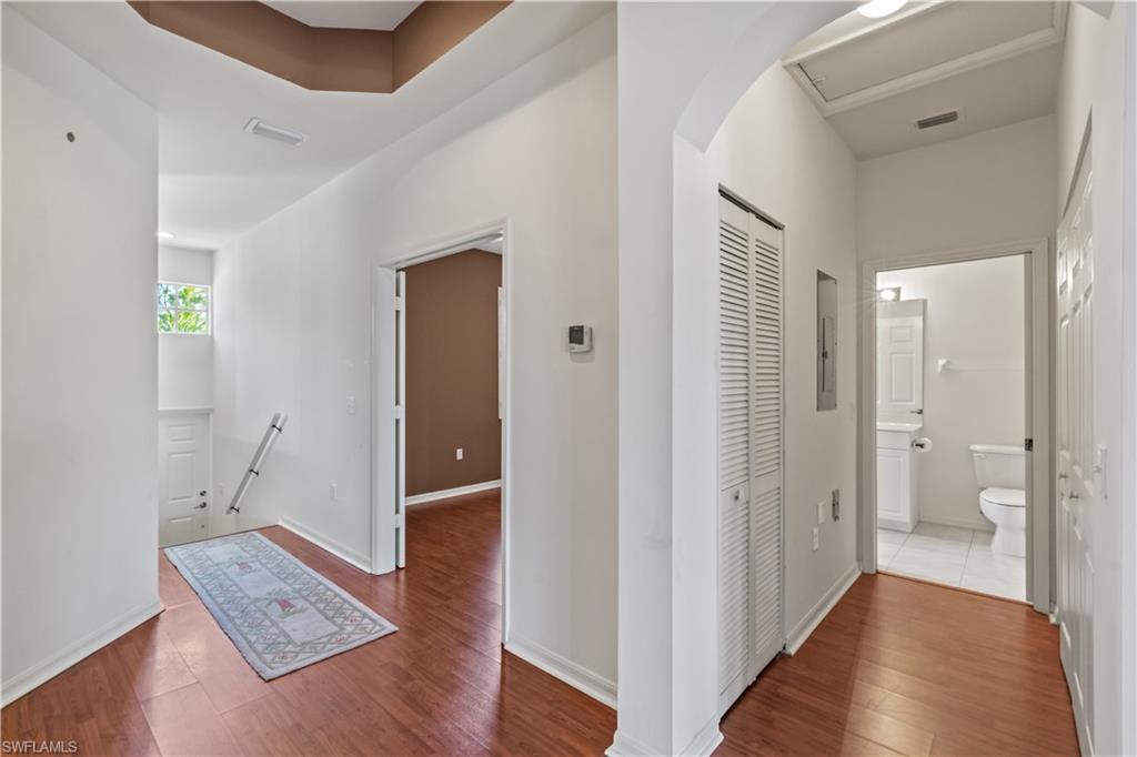Bring your offer!! Live in Paradise in an amazing location -- AVOID Immokalee Road traffic and HAVE IT ALL -- Easy beach access, fabulous shopping and peaceful! Brand New AC and beautiful cooks kitchen. Soaring ceilings and large bedrooms! SW Rear facing, enjoy endless sunsets and our beautiful cotton candy sky's! NO HURRICANE DAMAGE! NO FLOOD ZONE! Absolutely lovely 2nd floor coach home in the very desirable Wilshire Lakes located in North Naples. A very lush, private and well established community w/ beautiful mature trees. A peaceful and relaxing homesite as it rests within a small enclave of homes w/in the main gate. This 2 bedroom split floorplan has tall ceilings, plenty of storage and a huge chef's kitchen! The chef's kitchen can hold a small breakfast nook or a desk/den for those that work from home. The great room is spacious and allows for a number of ways to use the space and has sliding doors to an enclosed balcony w/ beautiful view. Split bedrooms are large and the bathrooms are well appointed with plenty of space. A 1 car detatched garage is including with the unit and can be used for your car or extra storage as guest parking is plentiful. The community offers 2 pools, tennis courts, fitness center and fun activities. Close to everything: Beaches, Shopping, Seed to Table, Mercato, Waterside Shops, 5th Ave, I-75 yet quiet and tranquil here at home. Notably, New Roofs were done on the buildings and exteriors were recently painted. Easy and A Joy to Show!
