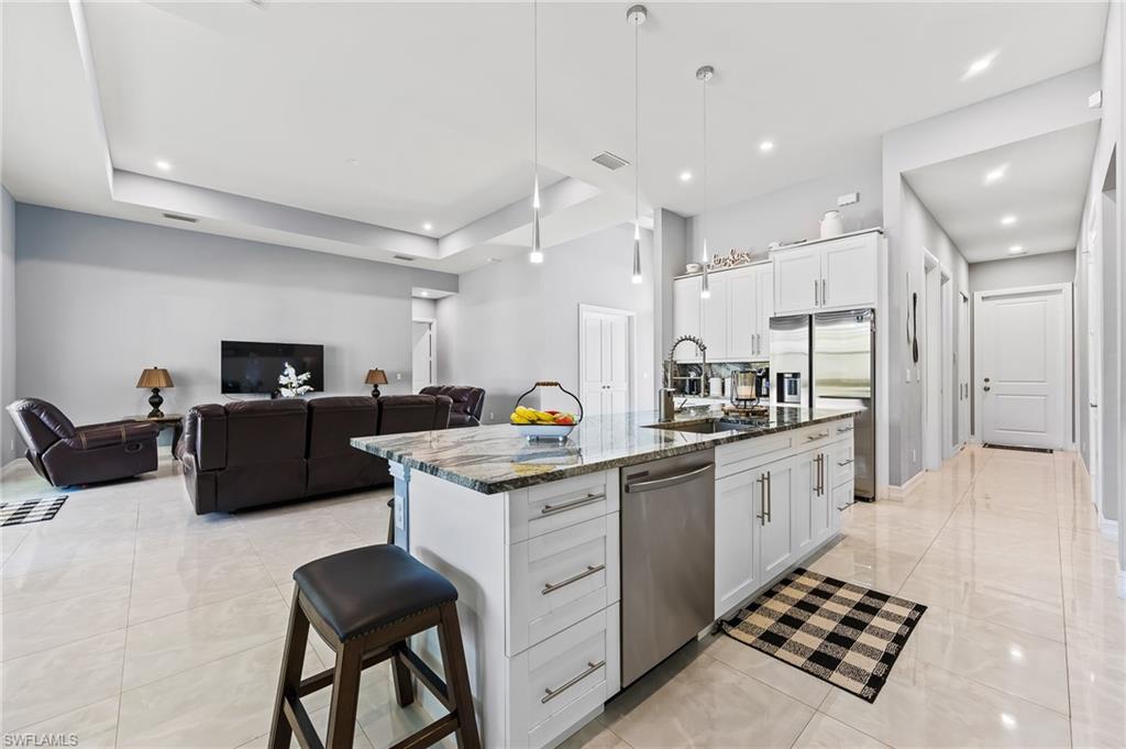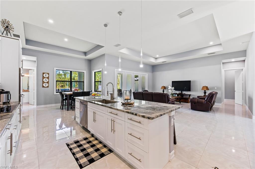 New construction paradise located in the growing area of Golden Gate Estates! This home features a multitude of upgrades including a metal roof, LED lighting, custom wood cabinetry, wet bar, porcelain tile throughout, Jacuzzi, asphalt driveway and so much more! This home is a must see to believe! Spacious and stylish open concept floor-plan, with a master suite that is a perfect retreat that allows for relaxation with a spa-like master bath. This home not only offers space inside, but it also has 2.65 acres of lush property and plenty of room to build a pool for the upcoming summer season! This home is also located just under 15 minutes away from local village shops and dining, public schools, Publix shopping center, and the new recreational park off Oil Well Road. This is a once in a life-time opportunity, hurry now!