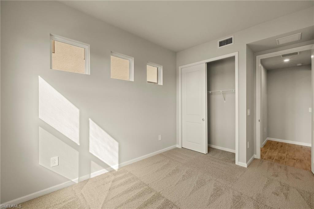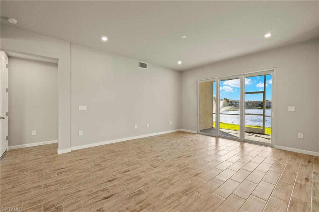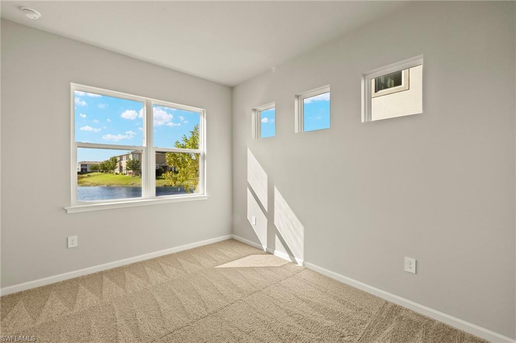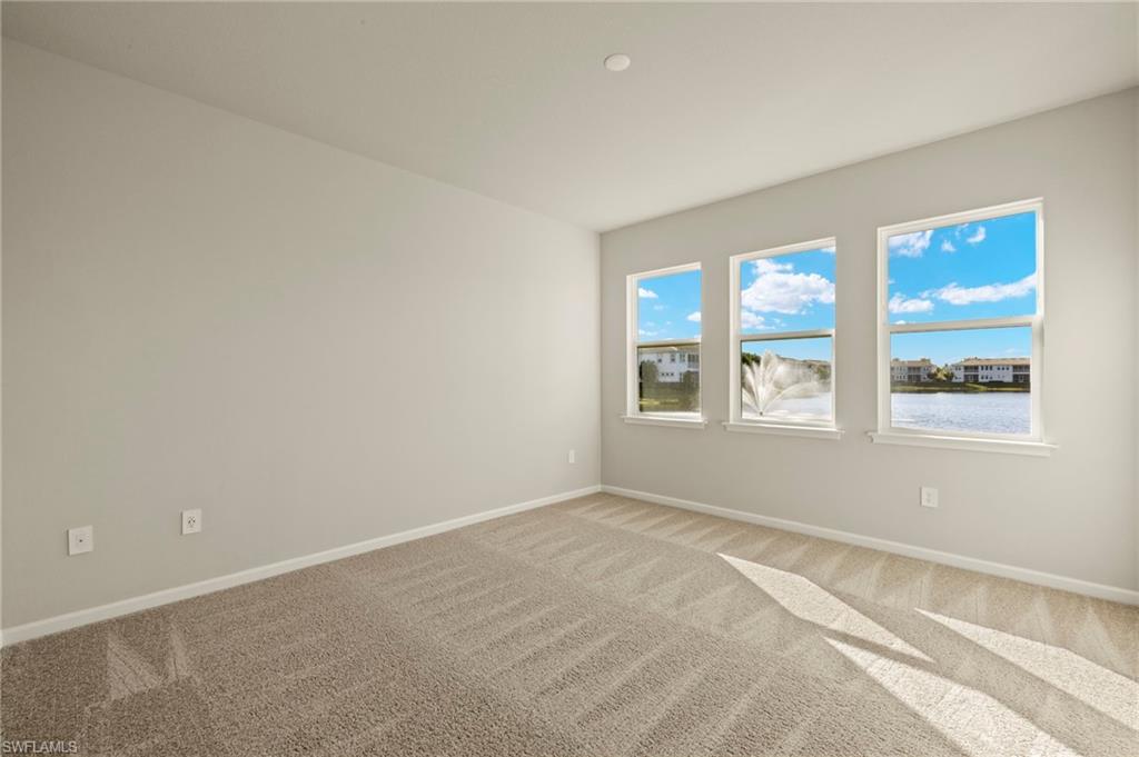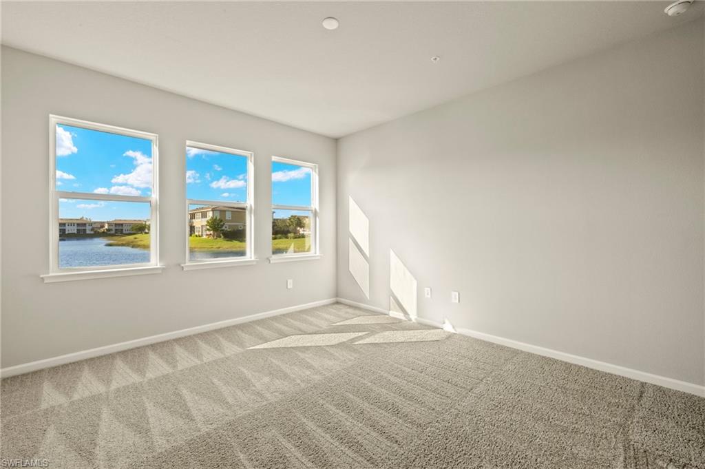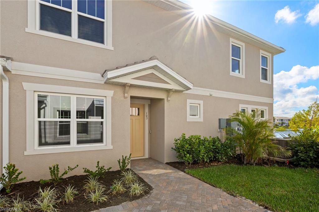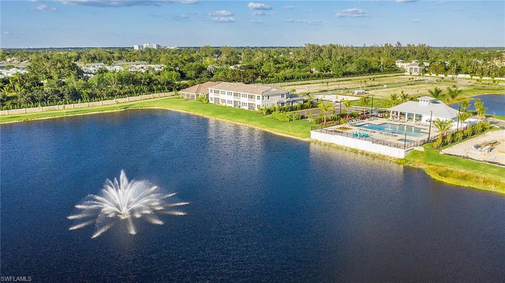 Extensive waterfront view, walking distance to the amenities this is one you don't want to miss -- The Carmel coach home is a 1st floor end unit (1,406 sq ft under air) home that is designed to enhance your lifestyle. Featuring Smart Home Technology, 2 bedrooms, 2 baths, and a 2-car garage, upgraded design package, this open and airy floorplan has a natural flow that lives like a single-family home. A beautiful designer kitchen with 42" Wood Linen painted Shaker style cabinets, white/gray vein quartz countertop, glass subway tile backsplash and large island with breakfast bar. Adjacent to it is a sunlit dining area. The kitchen overlooks the airy Great Room that is highlighted by expansive sliding glass doors that lead to the covered, screened lanai. The owner’s suite is spacious and adjacent to the private owner’s bath with a walk-in closet and a linen closet and a storage closet. The 2nd bedroom features front and side windows and is adjacent to the 2nd full bath. Direct access to the home is provided through the covered porch or through the 2-car garage. Fantastic location within minutes to Downtown Naples, Restaurants, Beaches, Art District, I-75, Shopping and entertainment. Photos, renderings and plans are for illustrative purposes only, and should never be relied upon and may vary from the actual home. The photos are from a furnished model home and not the home offered for sale.