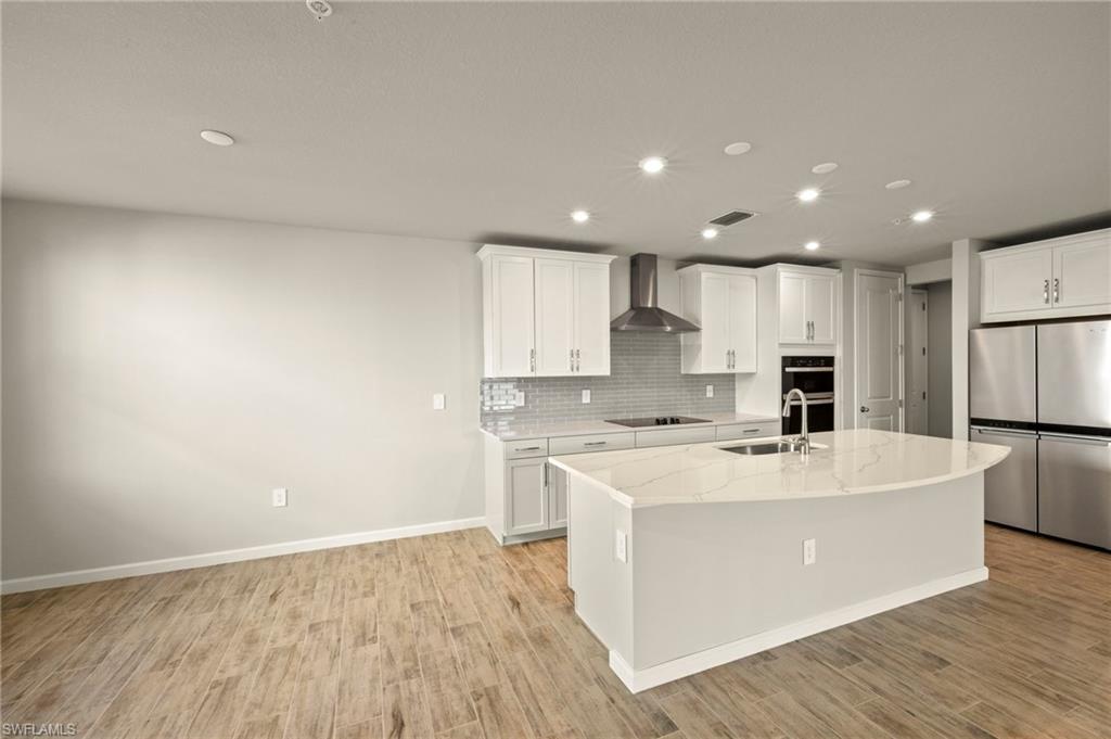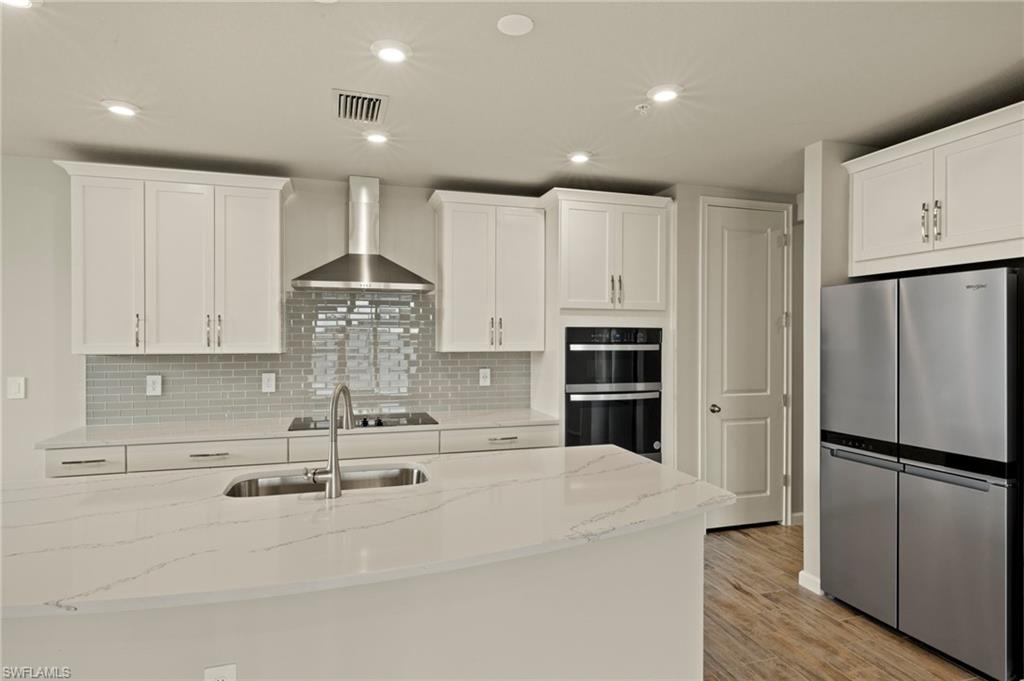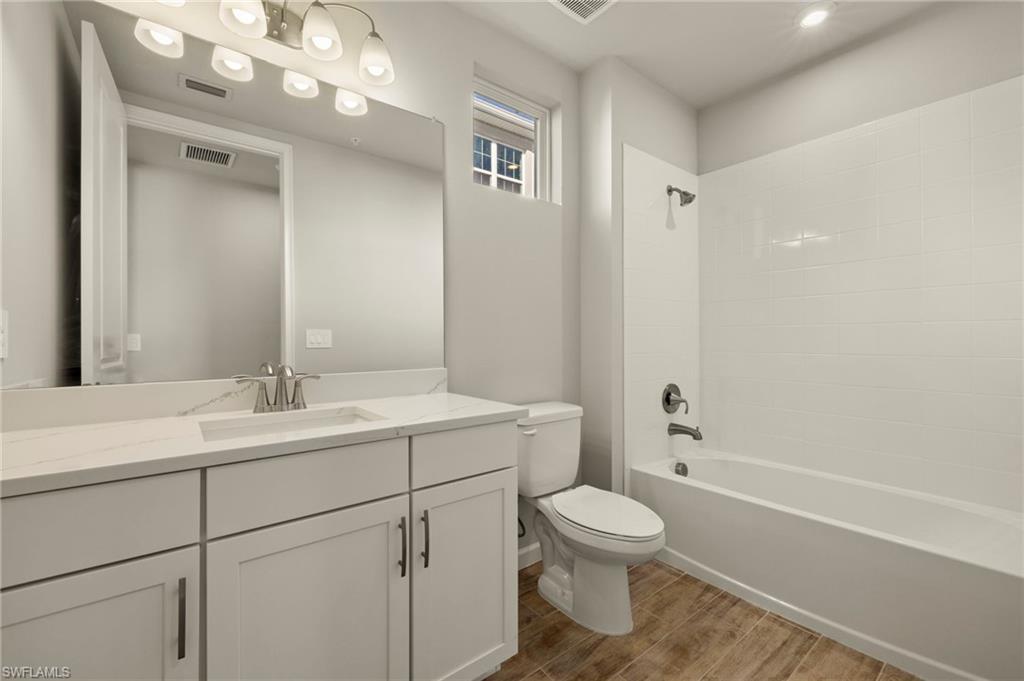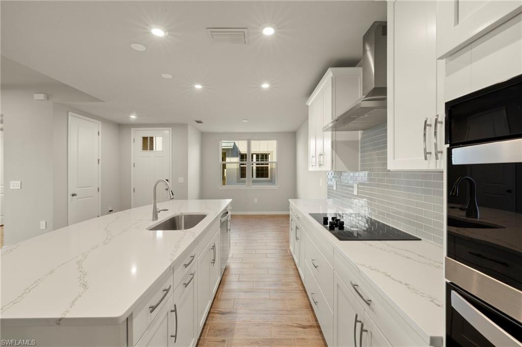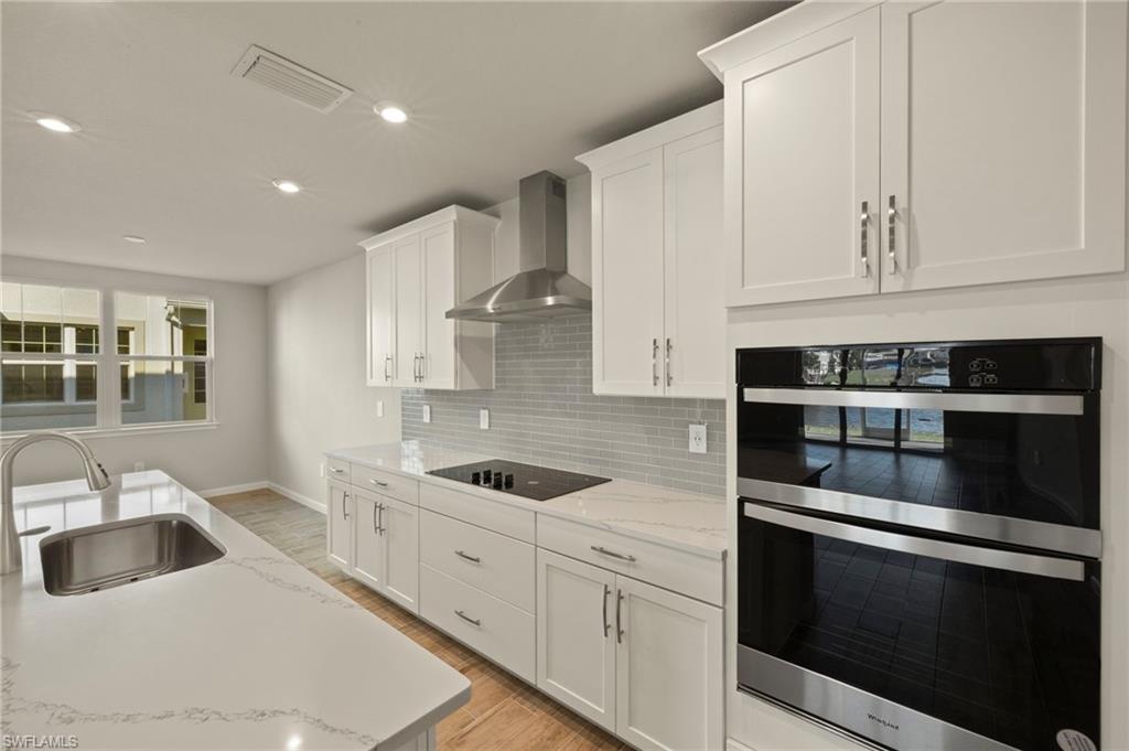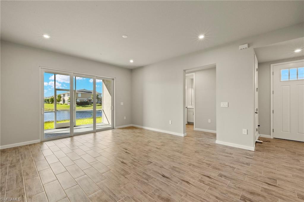 Extensive waterfront view, walking distance to the amenities this is one you don't want to miss -- The Carmel coach home is a 1st floor end unit (1,406 sq ft under air) home that is designed to enhance your lifestyle. Featuring Smart Home Technology, 2 bedrooms, 2 baths, and a 2-car garage, upgraded design package, this open and airy floorplan has a natural flow that lives like a single-family home. A beautiful designer kitchen with 42" Wood Linen painted Shaker style cabinets, white/gray vein quartz countertop, glass subway tile backsplash and large island with breakfast bar. Adjacent to it is a sunlit dining area. The kitchen overlooks the airy Great Room that is highlighted by expansive sliding glass doors that lead to the covered, screened lanai. The owner’s suite is spacious and adjacent to the private owner’s bath with a walk-in closet and a linen closet and a storage closet. The 2nd bedroom features front and side windows and is adjacent to the 2nd full bath. Direct access to the home is provided through the covered porch or through the 2-car garage. Fantastic location within minutes to Downtown Naples, Restaurants, Beaches, Art District, I-75, Shopping and entertainment. Photos, renderings and plans are for illustrative purposes only, and should never be relied upon and may vary from the actual home. The photos are from a furnished model home and not the home offered for sale.