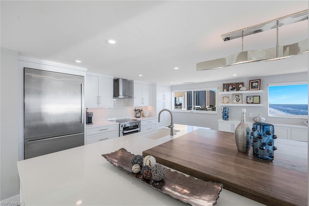 HUGE PRICE REDUCTION - BEST FULLY RENOVATED BEACHFRONT VALUE! Gulf-Front Elegance Meets Iconic Location 9051 Gulf Shore Dr #602 | Vanderbilt Beach | Naples, FL --- Vanderbilt Beach is Naples' premier coastal destination—and Condo 602 is your front-row seat to it all. Perfectly positioned directly on the beach, this residence offers sweeping views of the Gulf Beaches, with an unparalleled vantage point that stretches up and down the shoreline, outshining neighboring units. Just across the street lies the highly anticipated Ritz-Carlton Residences, where penthouse condos are priced up to $26 million—offering a strong testament to the area’s prestige and long-term value. This isn’t just a home—it’s a lifestyle investment. Step into a fully renovated, design-forward space transformed by Design West, Naples’ top-rated design firm. Every inch has been curated with luxurious intent: contemporary cabinetry, quartz countertops, Miele appliances, a built-in buffet bar with beverage cooler, broad plank tile flooring, and California Closets. The 2-bedroom, 2-bath layout includes a spacious kitchen ideal for entertaining, a private laundry room, and a large lanai offering breathtaking panoramic Gulf views. The primary bath is a serene retreat, featuring a dual soaking tub and shower combo and premium designer finishes. The building is also nearing completion of a full-scale renovation, bringing modern infrastructure and refreshed amenities to complement the luxury living experience. Additional peace of mind comes with a full-time on-site property manager, ensuring seamless upkeep and service. Step outside to white sand beaches just downstairs—or take a short stroll to the Ritz-Carlton Hotel, Turtle Club, or LaPlaya for beachfront dining and cocktails. A quick drive brings you to Mercato, Naples' premier destination for upscale shopping, dining, and nightlife. Whether you're looking for a luxury retreat or an investment in the coastal lifestyle, Condo 602 at Vanderbilt Beach delivers rare Gulf-front living with a refined, turnkey experience. WATCH THE VIDEO TOUR!