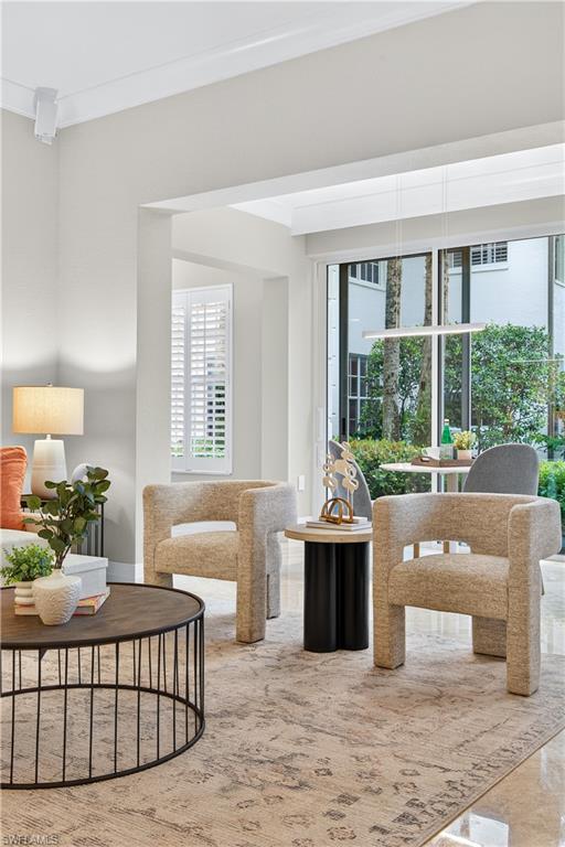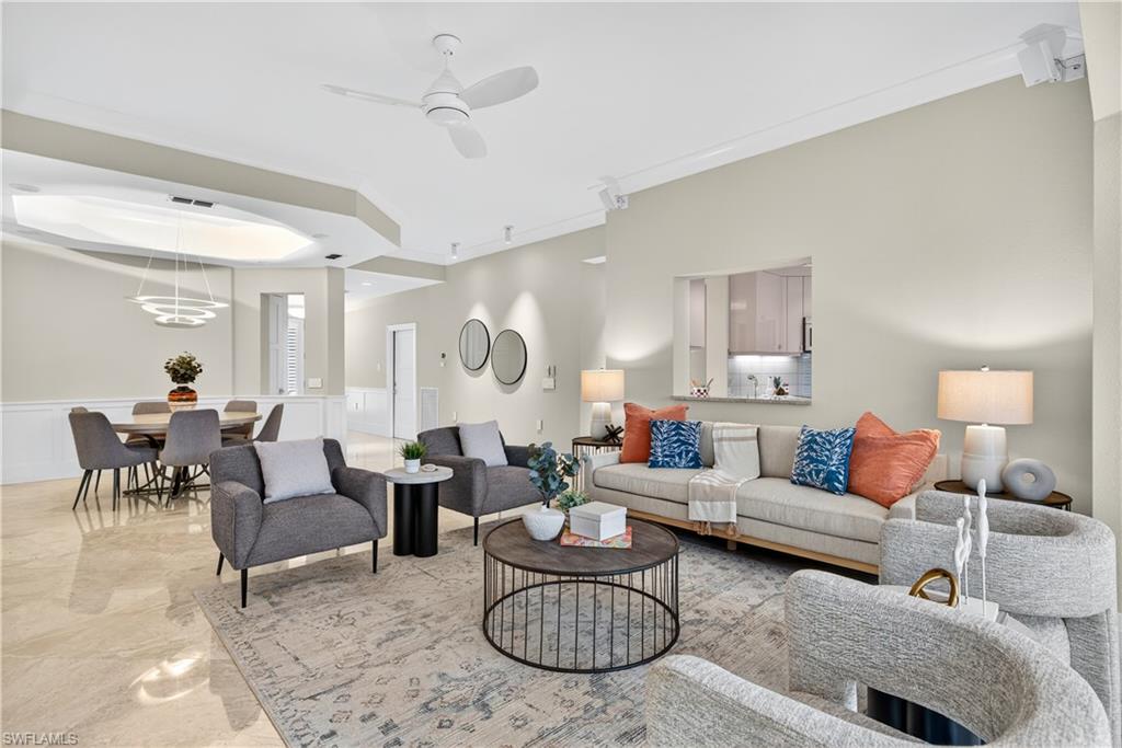 Introducing this masterfully renovated first floor condo in Osprey Pointe at Pelican Marsh. Encompassing over 2200 sq ft of air conditioned space, this 3 bedroom 2.5 bath home is the epitome of light and bright with a contemporary feel and lives like a single family home. Enjoy the southern light over a parklike landscape setting whether entertaining or enjoying a good book. Features include marble flooring, new millwork, electrical details, 8 ft solid wood doors, plantation shutters, impact glass sliders across the expanded living space, thoughtful cabinetry details in the kitchen with a hidden computer workspace and pantry, the owners suite offers a very large walk in closet with custom cabinetry and beautifully redesigned bath, the 2 car garage has built in cabinetry and fully finished flooring, no detail has been overlooked. Pelican Marsh is a gated amenity rich community offering a top tennis program, pickleball, exercise facility, bocce ball courts, restaurant and the private Pelican Marsh Golf Club with optional memberships. Located in North Naples, this home is close to Mercato, Waterside Shops, Artis-Naples and beautiful beaches.