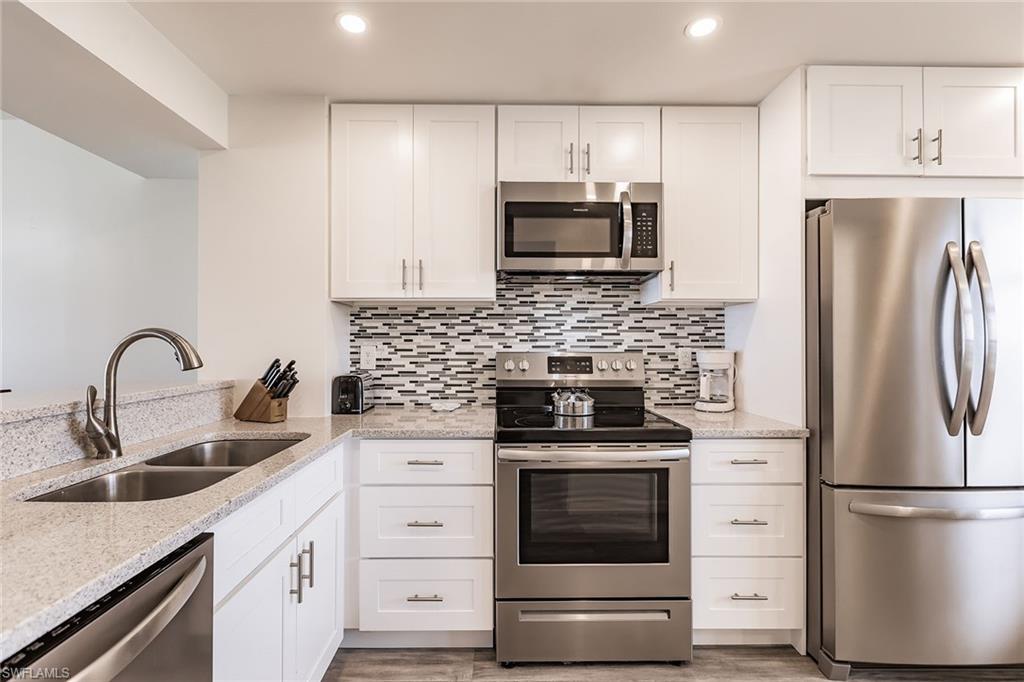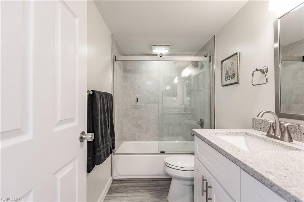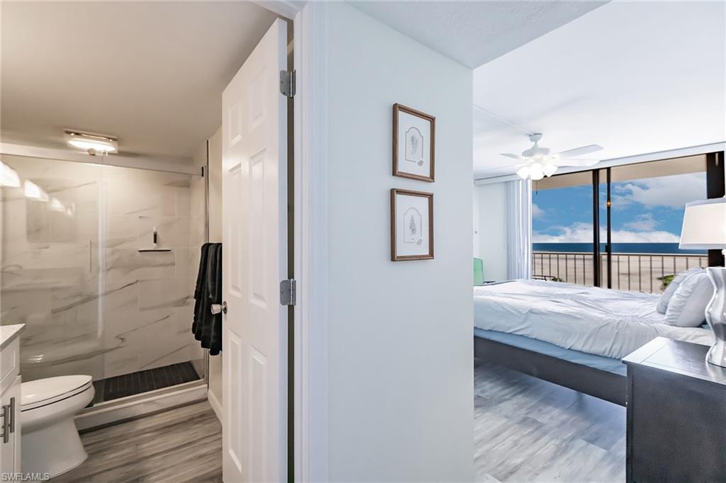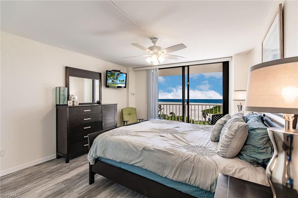 As seen on Fox News' lifestyle show "Out About in SW Florida". Beachfront with Spectacular Views! 2 bed/2 bath condo with SW exposure for ample light. Beach views from living room, primary bedroom, dining room, kitchen & balcony. Coastal renovation (2021). White Shaker cabinets with granite tops (kitchen & bathrooms). Stainless steel appliances. Engineered wood plank floors throughout. Impact windows & doors. Gated community in prestigious South Seas Towers. Weekly rentals allowed. Strong rental history (as high as $63,429.57/year). Heated resort pool overlooking the Gulf of Mexico with beach access. Covered garage parking. Fitness center, tennis/pickleball courts & optional boat slip rental available. Close to restaurants, entertainment, shops, ice cream and grocery store. Marco Island is famous for its white sandy beaches, boating, water sports, and wide sidewalks all over the island, great for walking & bicycling.
