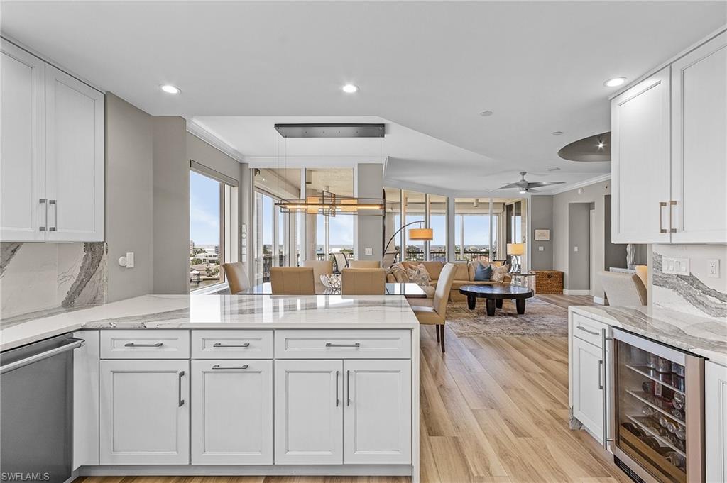 Welcome to your Sunset, where the view is always better when it is yours!!! Luxury living is alive within this stunning condo boasting 4 bedrooms and 3 bathrooms, perfect for families or those who love to entertain. The spacious layout includes Cascading Cambria engineered stone countertops, Viking Appliances, specialized lighting and fixtures thru out the living, kitchen and hallways. Breathtaking southern GULF views to Naples, and northern Estero BAY views to Ft. Myers. Imagine enjoying your morning coffee on the private balcony overlooking the water. The private pool is perfect for relaxing on hot summer days, while the electric hurricane shutters provide peace of mind during storm season. When you thought it couldn't be any better, this condo comes with its very own private garage for parking along with private storage. The Sunset located in the community of Waterside at Bay Beach also offers guest suites, perfect for hosting friends and family who come to visit. Whether you're looking for a permanent residence or a vacation home, this BEAUTIFUL STUNNING, Turnkey condo has everything you need for a life of luxury and comfort. Don't miss out on the opportunity to own a piece of paradise in this exclusive waterfront community. Live the dream at Waterside at Bay Beach!
