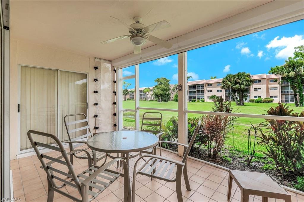 REDUCED - OUTSTANDING VALUE!!!!Gorgeous golf course views, first floor AND a garage!!!!! AND JUST REDUCED!!!!!!!!! This very well cared for prime unit can be yours and is move in ready. Located in arguably one of the best communities Naples has to offer with the convenience of Pine Ridge Crossing and only a ten minute ride to beautiful sugary sand beaches! With 2 bedrooms and 2 full bathrooms this comfortable condo is surrounded with lush landscaping and the private screened in lanai provides front row views of the golf course. The Master bedroom is generously sized with lots of closet space and the Master bathroom has dual sinks and a combined tub and shower. The kitchen has room a plenty for any discerning cook, and a breakfast nook with views of the courtyard entry beyond. This wonderful home is just waiting for you to move in and enjoy! You will not be disappointed!!