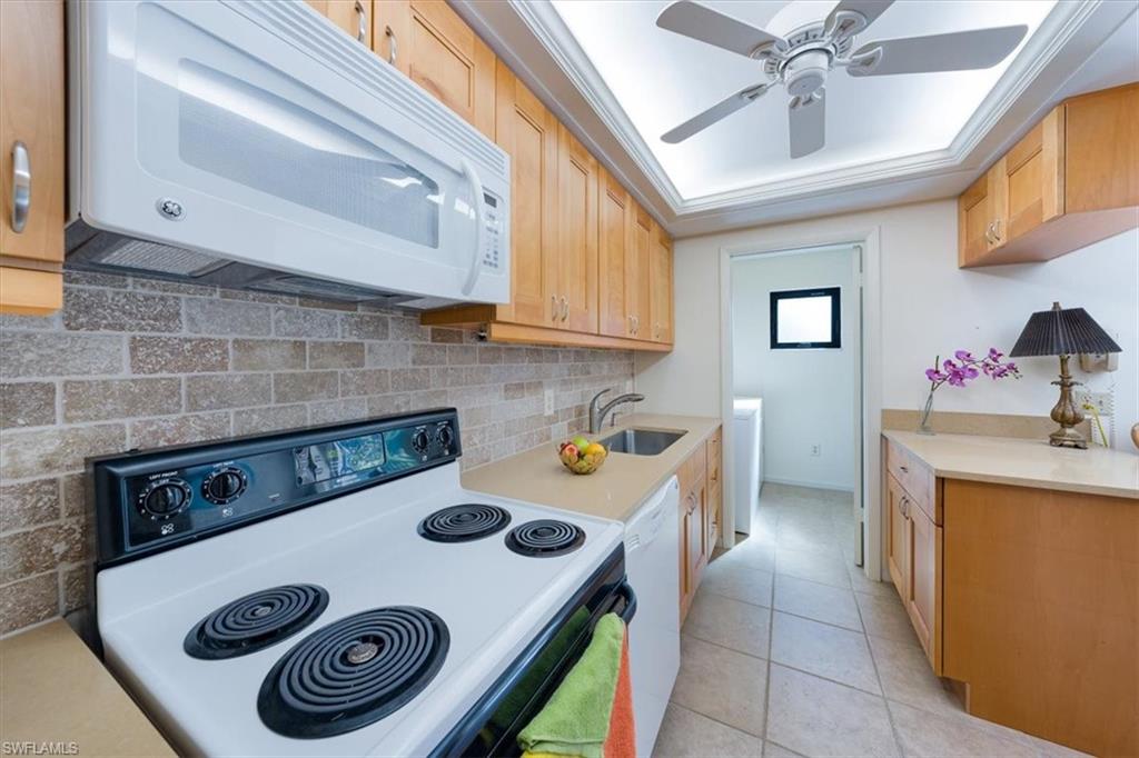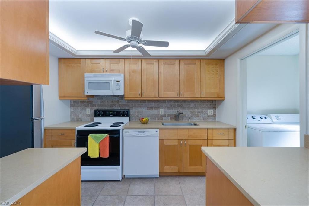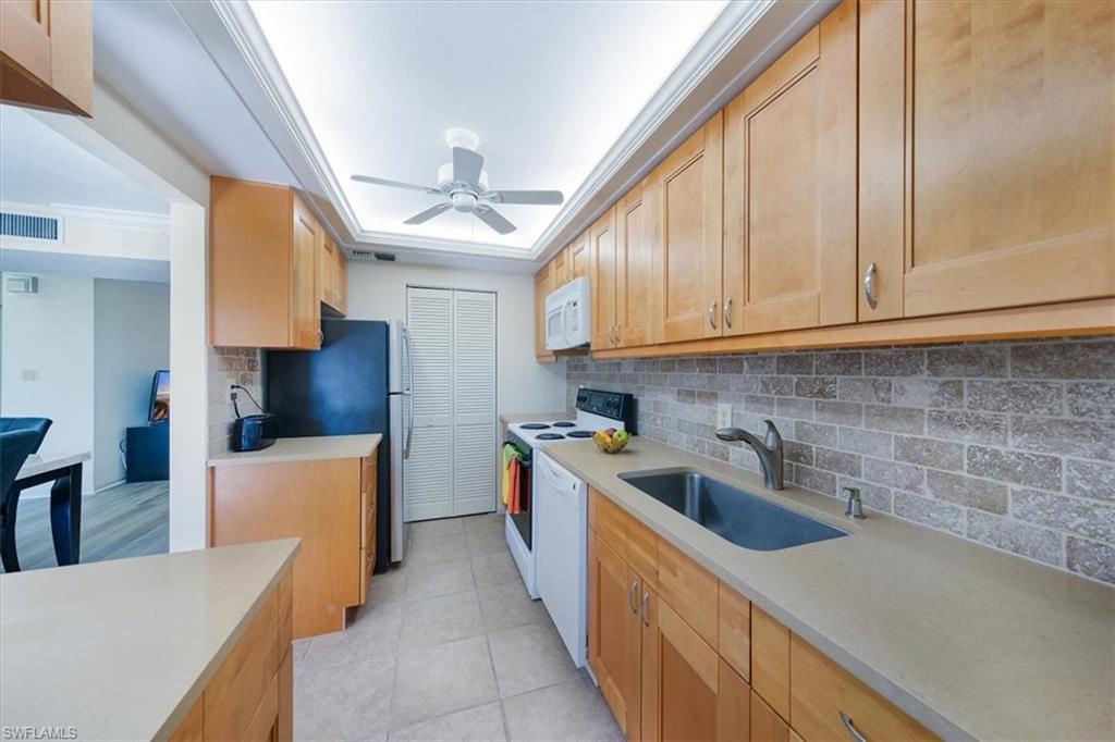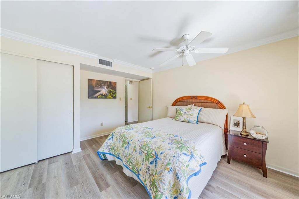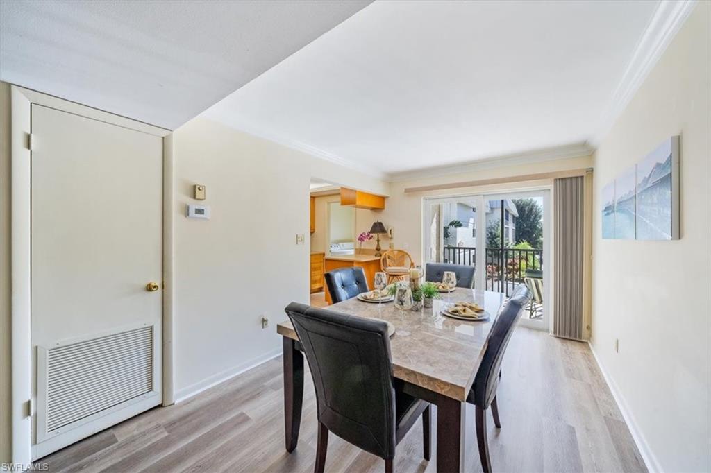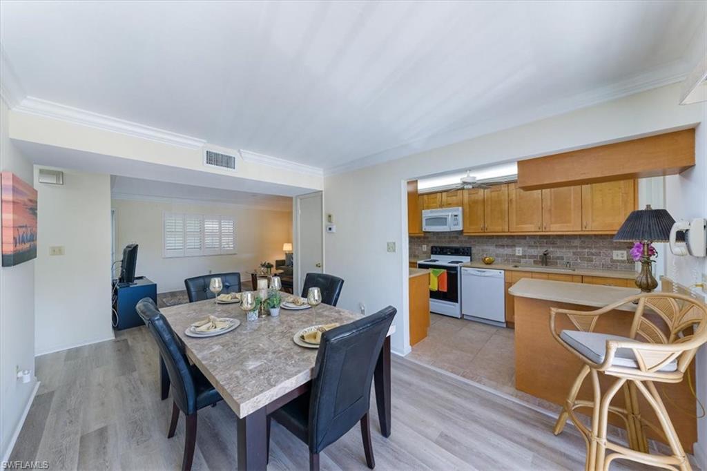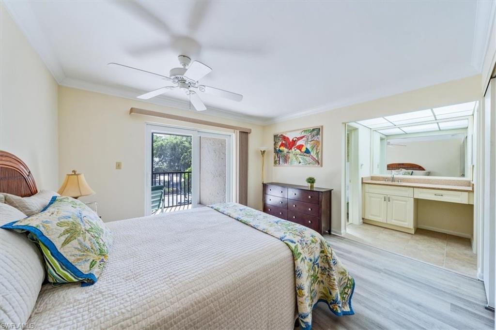Discover the perfect blend of style and convenience in this beautifully updated 2-bedroom, 2-bathroom end unit, ideally located less than a mile from pristine beaches, vibrant shops, and popular restaurants. Situated on the second floor, this gem offers privacy, peace, and all the comforts of Florida living. Step inside to find luxury vinyl flooring, elegant crown molding, and a fresh coastal ambiance. The new AC (2022) and new water heater ensure comfort year-round, while impact glass sliders and windows paired with electric storm shutters provide added security and peace of mind. An additional feature is the convenience of additional storage space in the laundry room and a newer washing machine. Enjoy the Florida lifestyle on your private, screened-in lanai, perfect for relaxing or entertaining. With all the updates and being offered turnkey furnished, all you need to do is move in and enjoy! Hidden Lake Villas offers a resort lifestyle with social activities, tennis, a 37' x 52' geo-thermal heated pool, gas grills, clubhouse with exercise area, library and function room. Residents can obtain an optional membership to Park Shore Association for private beach access at Raymond Lutgert Park. Located in the heart of Naples with easy access to enjoy all that Southwest Florida has to offer.