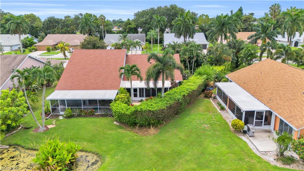 Step into 479 Saint Andrews Blvd in Lely Country Club, Naples, Florida, a private garden retreat with extensive outdoor space overlooking the water. It is a unique must-see property on an oversized lot located near award-winning golf courses, dining, shopping, and only 10 minutes from the World Famous National Pickleball Center. This charming home has two bedrooms with an oversized den that can easily be converted to a 3rd bedroom, 2 bathrooms, 2 car garage, and a separate bonus room. The large enclosed lanai / sunroom offers additional living space overlooking the private gardens. Enjoy the fresh air with the screened windows open, or add a split a/c and have an additional 150 square feet of living space with beautiful views of the lake. This is the perfect home for entertaining, garden parties, or your very own private getaway. The entire yard is fenced in offering a safe haven for your four legged friends. The home has extensive tile work and built-ins throughout. Rentals are allowed up to 4 times a year. The community pool is just a short walk away. The owners installed a Culligan Water System and a brand NEW roof in 2024.