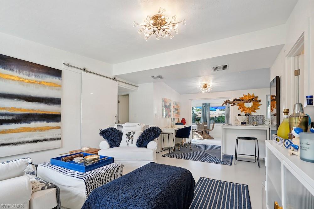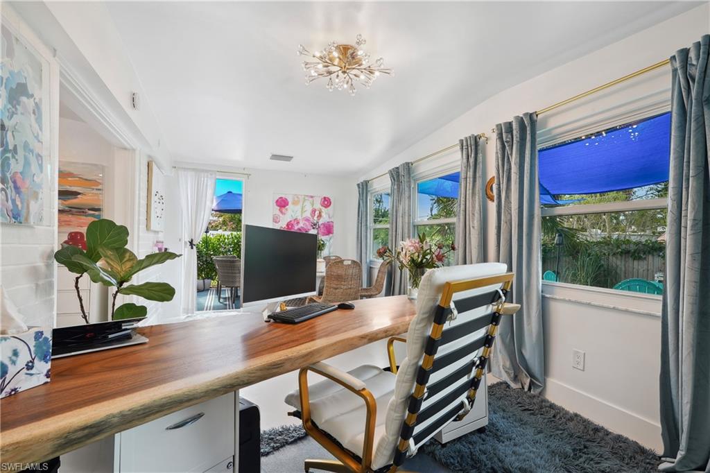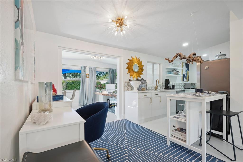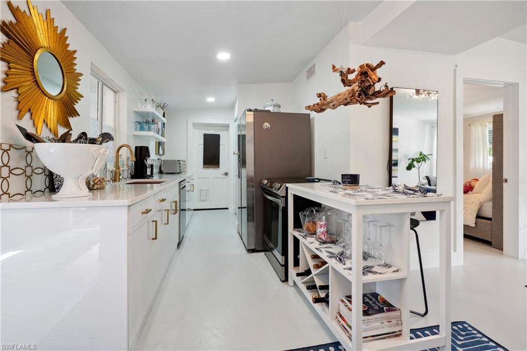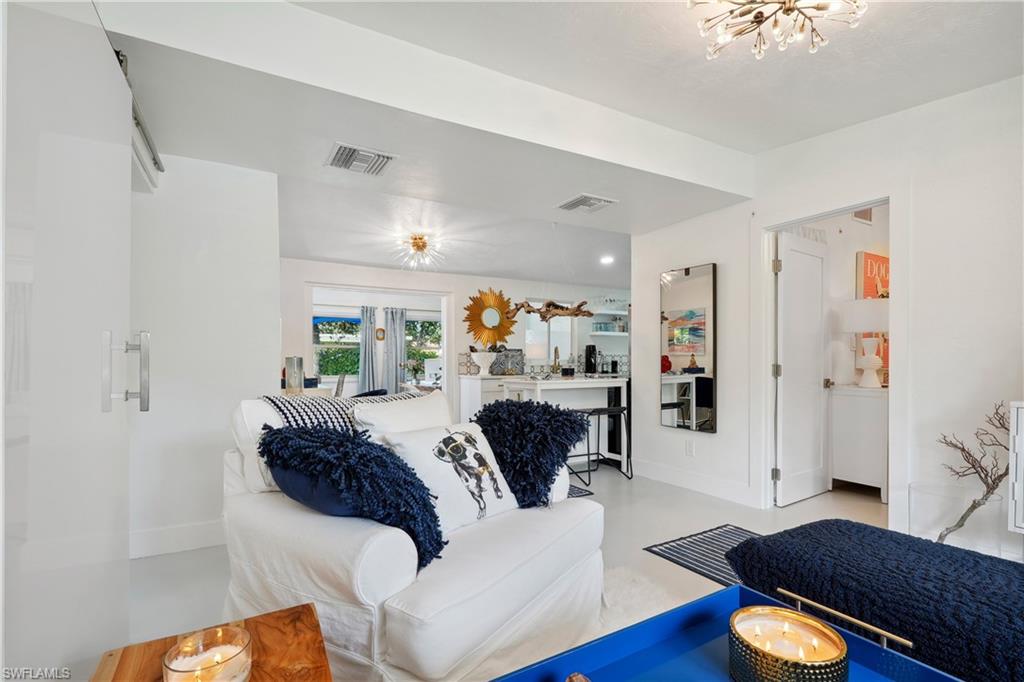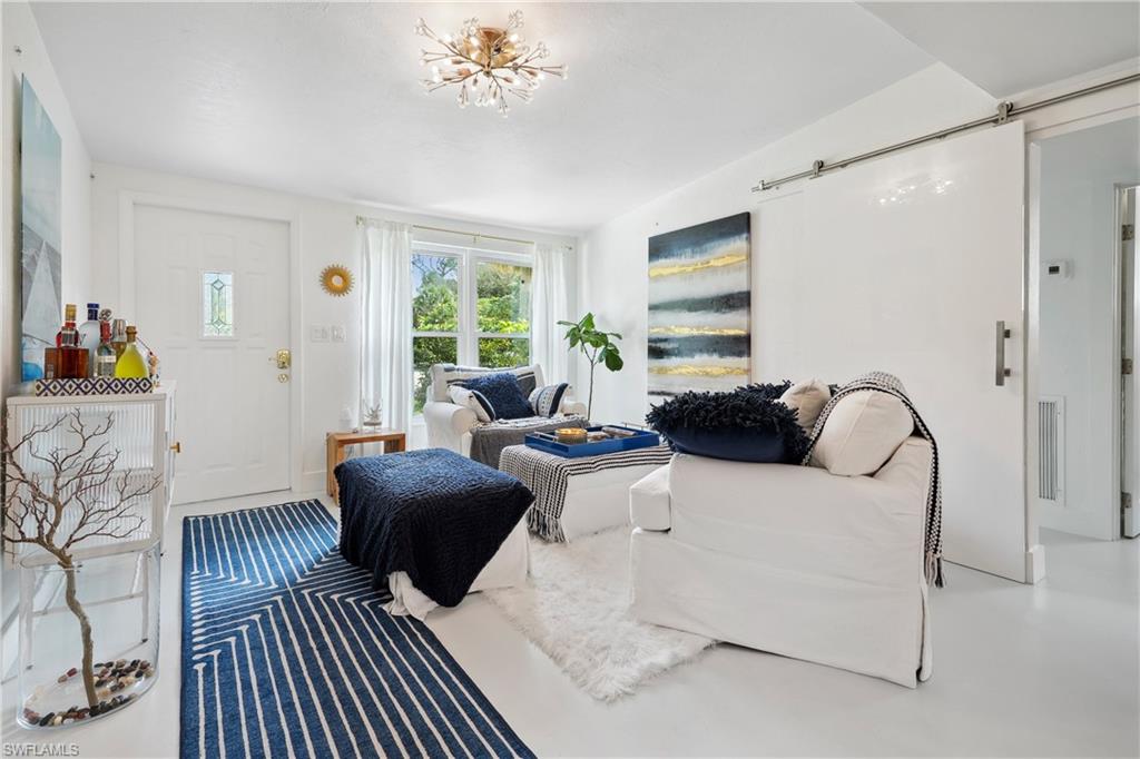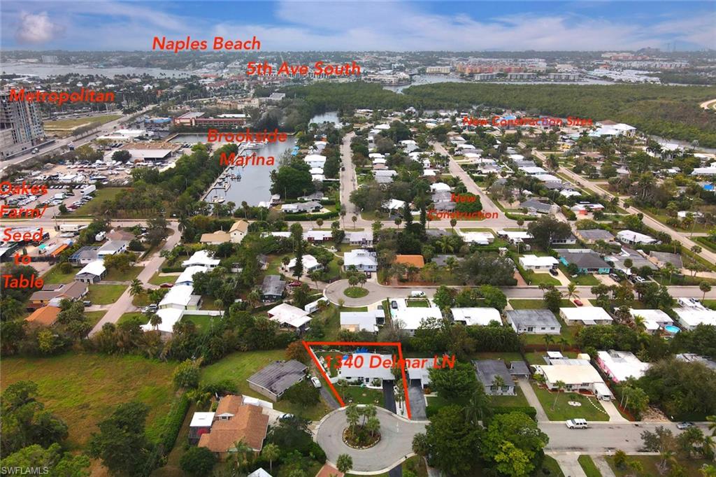 Great option to popular Old Naples and an outstanding opportunity in Brookside for a successful Airbnb or VRBO with no HOA or Deed Restrictions. Beautiful completely remodeled rarely available western exposure single family home with 1,240 sq-ft under air, 3 bed + family room / 2 full bath / carport / + attached workshop (can be converted to living space/bedroom/den) plus additional outside small shed / laundry in residence totaling 1,699 sq-ft / sells fully furnished. The property is located in a quite Cul-de-sac just minutes to famous 5th Ave South & 3rd Street South offering endless dining, shopping, nightlife possibilities and white sandy beaches. The property comes with sustainable and low maintenance fenced yard with garden dining area and additional patio for relaxing in the sun, laundry in residence. Room for a small pool or a jacuzzi. High impact windows & impact doors invite lots of natural light into the home, new heavy duty high impact front door (Miami Dade Hurricane Code) just installed October 2024. Entrance doors come with number code locks, Ring door bell & cameras, water heater 2023, new waterlines & new bath rooms 2022, A/C 2022 and new A/C splitter for laundry room & additional workshop replaced 2023 (not included in living area sq-ft - but can be converted into living space such as 4th bedroom) and new irrigation Rain Bird station/controller & valves and so much more. New high gloss kitchen with quartz counter and stainless steal appliances and marble backsplash.Furniture, decor, art, rugs, TV's, linen, kitchen utensils, dishes & fitness mirror, outdoor furniture included in sales price (area rugs are machine washable/ruggables). Store your boat at Brookside Marina or join the Boat Club at Brookside Marina and your boat will always be ready. Harvest your own fruits in your private fenced back yard such as Mangos, Bananas, Avocados, Passion-, Dragon-, Grape Fruits, Cherries & Berries, Limes & Lemons, Pomegranate & Pineapples. For homebuyers worried about flooding, the house can be elevated 10 feet up from the ground - estimate available. Process for lifting the house is about 8 weeks.