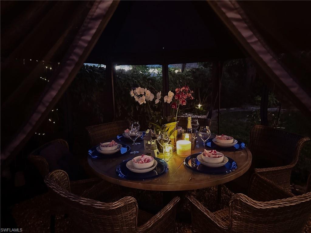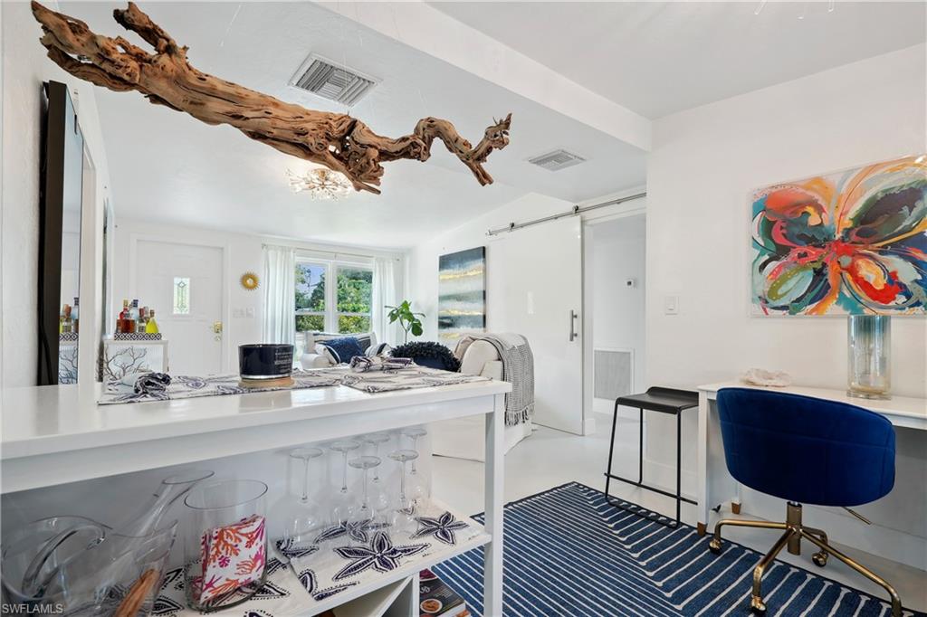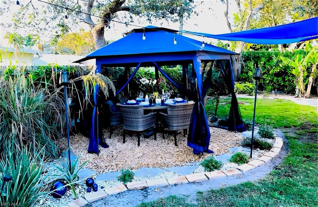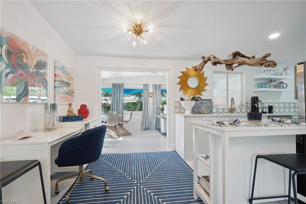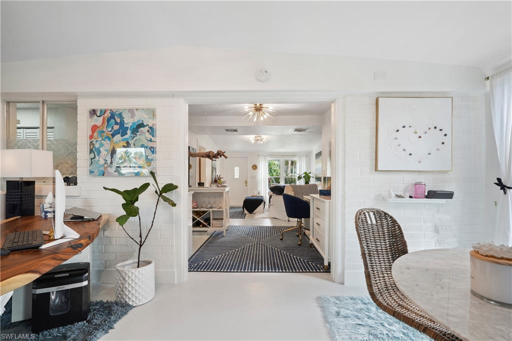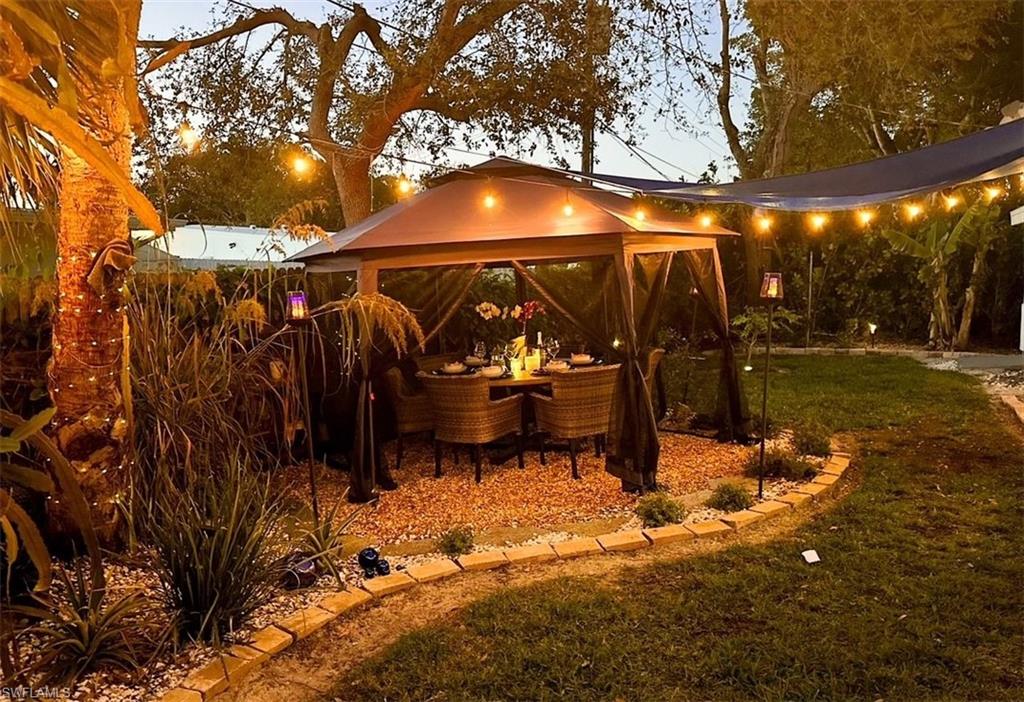 Great option to popular Old Naples and an outstanding opportunity in Brookside for a successful Airbnb or VRBO with no HOA or Deed Restrictions. Beautiful completely remodeled rarely available western exposure single family home with 1,240 sq-ft under air, 3 bed + family room / 2 full bath / carport / + attached workshop (can be converted to living space/bedroom/den) plus additional outside small shed / laundry in residence totaling 1,699 sq-ft / sells fully furnished. The property is located in a quite Cul-de-sac just minutes to famous 5th Ave South & 3rd Street South offering endless dining, shopping, nightlife possibilities and white sandy beaches. The property comes with sustainable and low maintenance fenced yard with garden dining area and additional patio for relaxing in the sun, laundry in residence. Room for a small pool or a jacuzzi. High impact windows & impact doors invite lots of natural light into the home, new heavy duty high impact front door (Miami Dade Hurricane Code) just installed October 2024. Entrance doors come with number code locks, Ring door bell & cameras, water heater 2023, new waterlines & new bath rooms 2022, A/C 2022 and new A/C splitter for laundry room & additional workshop replaced 2023 (not included in living area sq-ft - but can be converted into living space such as 4th bedroom) and new irrigation Rain Bird station/controller & valves and so much more. New high gloss kitchen with quartz counter and stainless steal appliances and marble backsplash.Furniture, decor, art, rugs, TV's, linen, kitchen utensils, dishes & fitness mirror, outdoor furniture included in sales price (area rugs are machine washable/ruggables). Store your boat at Brookside Marina or join the Boat Club at Brookside Marina and your boat will always be ready. Harvest your own fruits in your private fenced back yard such as Mangos, Bananas, Avocados, Passion-, Dragon-, Grape Fruits, Cherries & Berries, Limes & Lemons, Pomegranate & Pineapples. For homebuyers worried about flooding, the house can be elevated 10 feet up from the ground - estimate available. Process for lifting the house is about 8 weeks.