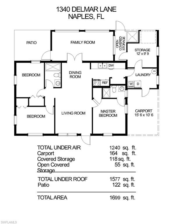 1340 Delmar Ln, Naples, FL 34104Homes - 1,240 ft² / 1,699 ft² - 1 Car Garage - 1 Carport