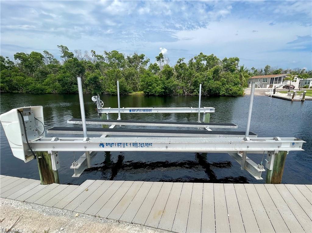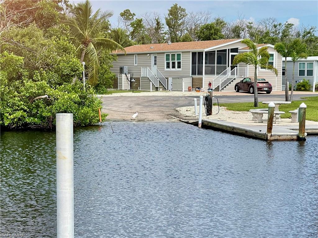 Build your own home & seize this opportunity to live high & dry in a NEW hurricane code stilt home on a superior lot. If you own an RV, you will be able to keep it on your parcel while you design your home! This is a clear advantage for the savvy buyer. Experience your own secluded, protected SE facing 90' wide, deep-water (even in Low tide!) dredged mid-block canal. This canal is dredged in perpetuity by Lee Co. This Location has magnificent and rare mangrove views. Zoning options include stilt build or Modular style home, modular shown as depicted in renderings. Dramatic Miami style design plans available with several flexible buyer options. Lot will provide a spacious 2/3 bed/2 bath residence with an upper back deck overlooking pristine natural mangrove. Many new owners are building in Port Carlos! This secluded location includes: composite boat doc & boat lift that accommodates a 27' boat beside your paver patio. Concrete reinforced bulkhead is in impeccable condition. In 1 MINUTE explore & fish the back waters of the renown ESTERO BAY, PLUS DIRECT GULF ACCESS WITH NO BRIDGES! Port Carlos is in Lee county jurisdiction, no Ft. Myers beach restrictions! Home to be elevated will grant dramatic views over the mangroves where you will see Bald Eagles, Osprey, manatee & more. Port Carlos Cove is a very unique and rare property. It is defined as: 45 acres surrounded by an environmental preserve with its own canals and over a mile of seawall. This dream location is On a back bay leading out to Gulf waters. Where else for $200 HOA dollars a month can you own a property in such an area with its own boat ramp and dock, clubhouse with Pool, Shuffleboard courts, "back 40" spacious storage area for boat, Utility trailer, RV and extra car storage. Also Port's Compound area: free lawn and landscape service, and trash disposal, water and sewer. lot INCLUDES a large ADDITIONAL protected area for parking and storage+ on this 16-acre site assigned to each resident for your trailer/camper (INCLUDED).. Port Carlos Cove is a 55+active lifestyle, co-op community with limited rentals (30 days-6x per year). Amenities: New Community Pool & newly renovated clubhouse, Pickle Ball, shuffleboard, social club. LOW HOA FEES- yes, again -$200 PER MONTH include: Water, sewer, irrigation, seawall, landscape, pool maintenance. INCREDIBLE- WALK to Ft. Myers Beach & Margaritaville, Key West Express terminal, & 2 Caribbean feel restaurants; plus a pirate ship! a five min drive offers fun times on Ft Myers Beach! Many lots have been purchased already within the community, now is the time to consider this unique opportunity.