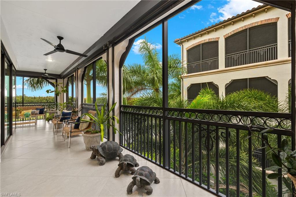 IMMEDIATE GOLF MEMBERSHIP AVAILABLE IN TALIS PARK! SKIP THE WAIT LIST! Resplendent in every manner, this upscale WCI built condominium offers numerous upgrades including the stunning kitchen cabinetry, Storm Smart electric shutters, California Closets, custom drapes and plantation shutters. The recently painted interior provides a neutral background for any style of furnishings. The natural gas cook top, tankless hot water heater, soft close cabinetry, a convenient trash chute and a separate bar area with a wine cooler and beverage refrigerator are additional features. With over 700 SF of screened loggia, one can enjoy beautiful sunsets over the serene lake or peaceful mornings sipping coffee. The FULL GOLF MEMBERSHIP is available for the Buyer to purchase at closing from Talis Park thus skipping the wait list. Owners may have their own golf cart in Talis Park. Two deeded parking places in the garage with a private storage room are also included. Carrara residents and their guests can enjoy the private pool, spa and gas grills located on Carrara Way. Talis Park affords residents many dining options including the Vyne House, Fiona's Market, the Rotunda Bar and the Casa Cortese. Amenities include tennis, pickleball, bocce, a fitness center, Esprit Spa and a very busy social calendar. The award winning golf course designed by Greg Norman and Pete Dye is a true masterpiece. With miles of beautiful sidewalks for walking/running, this vibrant community is unparalleled. The community is conveniently located within minutes to grocery stores, shopping, banking and only 20 minutes to the RSW airport!