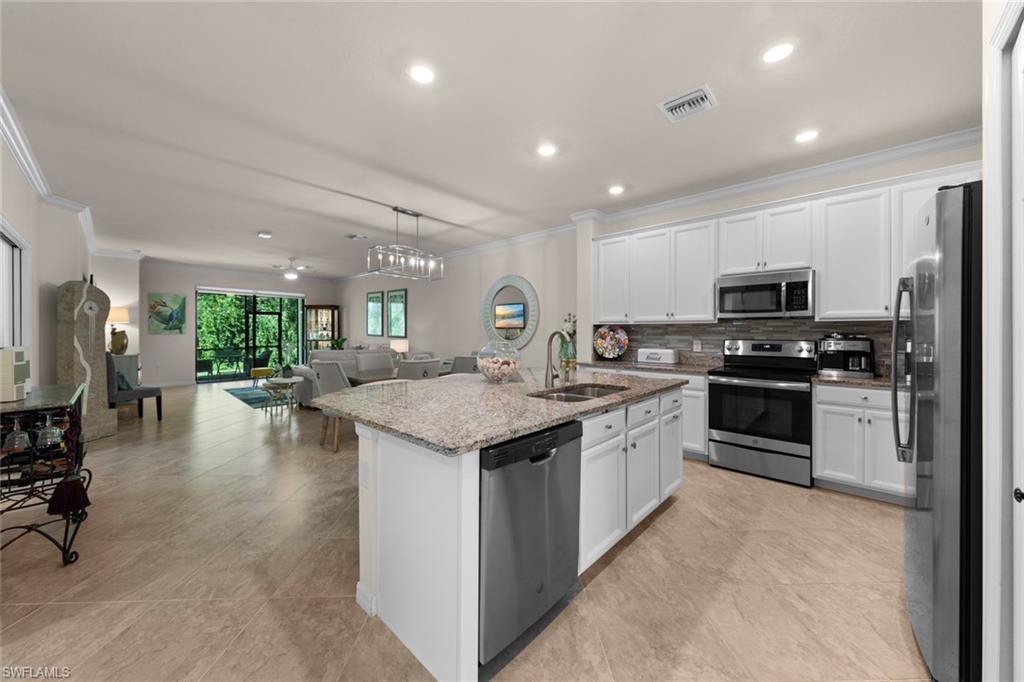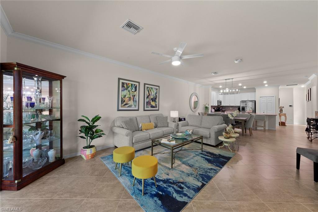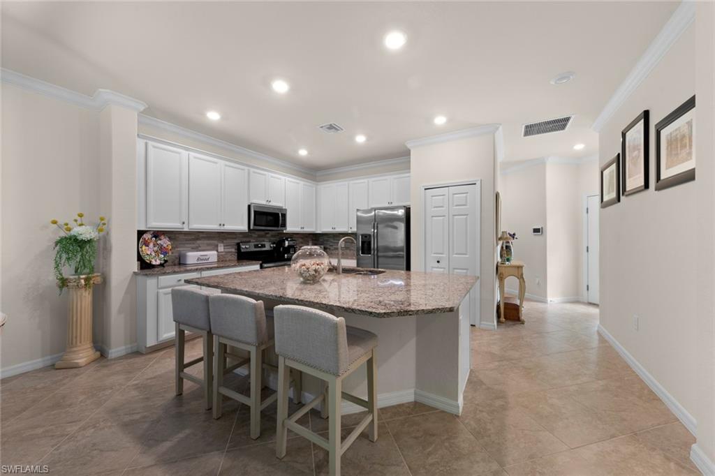 Welcome Home! A perfect piece of paradise on a private preserve lot. Whether you're seeking a retirement haven, a second home retreat, or a A+ top-tier school district for your family, Bent Creek offers it all! This lovely villa features 3 bedrooms, 2 bathrooms, & a 2-car garage w/ numerous upgrades. Step into a beautifully designed space featuring modern decor and tasteful finishes including tile flooring throughout, making it very light inside. The kitchen boasts stainless steel appliances, granite countertops, a custom backsplash and upgraded white cabinets. Enjoy the spacious master suite offering a serene retreat with a luxurious en-suite bathroom and large walk-in closet. Amazing amenities which include a resort style pool, spa, fitness center, bocce courts, lighted pickleball & tennis courts, firepit area, fitness center, clubhouse with billiards & catering kitchen. Low HOA and NO CDD! Located close to Founders Square for shopping and dining in North Naples.