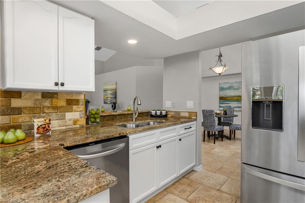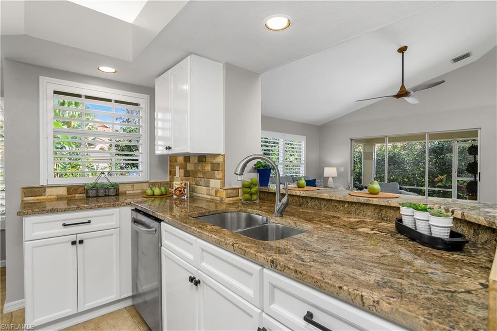 Located in the highly sought-after community of The Vineyards, this exceptional villa exudes charm, comfort, and modern elegance. As you step inside, you are greeted by an abundance of natural light, courtesy of the windows in the entire front of the house and newly installed skylights on the brand-new roof completed in February 2024. These upgrades not only enhance the home's aesthetic appeal but also ensure energy efficiency and durability for years to come. The interior features beautiful tile flooring throughout, seamlessly tying together each room in a cohesive look. The living areas and master bedroom boast soaring vaulted ceilings, creating a spacious and airy ambiance that invites relaxation and ease. The plantation shutters adorning every window add a touch of Southern charm while providing versatile light control and privacy. In the kitchen, you'll find gleaming sealed granite countertops that offer ample space for meal prep and entertaining. The stainless steel appliances, complemented by newly faced cabinets, provide a sleek and modern culinary home experience. Beyond the interior, the home is equipped with new AC ducts, ensuring efficient climate control throughout the year. The meticulous attention to detail in every corner of this villa makes it a true gem in The Vineyards. For those who enjoy the outdoors, the villa's location is unbeatable on a corner lot providing one of the largest front yards in Napa Ridge with landscaped areas and just a short walk to the community pool, where you can unwind and socialize with neighbors. Enjoying the tranquility of your private villa, this home offers a perfect blend of luxury, comfort, and convenience. Experience the best of The Vineyards living in this beautiful villa in Napa Ridge.