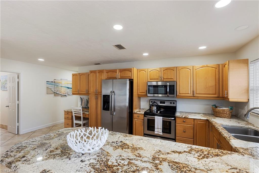 *****INVESTOR ALERT****** If you're looking for one of the lowest priced 3 bedroom with office/4th bedroom 2 bath homes in a fabulous section of Naples Park, look no further. Experience the best of Naples living with this charming home, ideally located just a short walk or bike ride from the beautiful Vanderbilt Beach. Enjoy the vibrant lifestyle with Mercato's top-notch shopping, dining, and entertainment options just moments away. This freshly painted and remodeled home offers modern comfort and style. It is being offered turn-key furnished. Just show up with your toothbrush and a change of clothes and get ready for paradise or start renting immediately to catch all the income of the Naples vacation season. The open kitchen features stainless steel appliances and granite countertops, connecting smoothly to the inviting living area. This property is spacious enough to sleep 8 people comfortably. Step outside to your private outdoor space with a large back pool deck to bask in the Naples Sunshine. The covered lanai is perfect for entertaining in the shade or take a refreshing dip in the heated pool. This home is attractively priced and is ready for immediate occupancy.