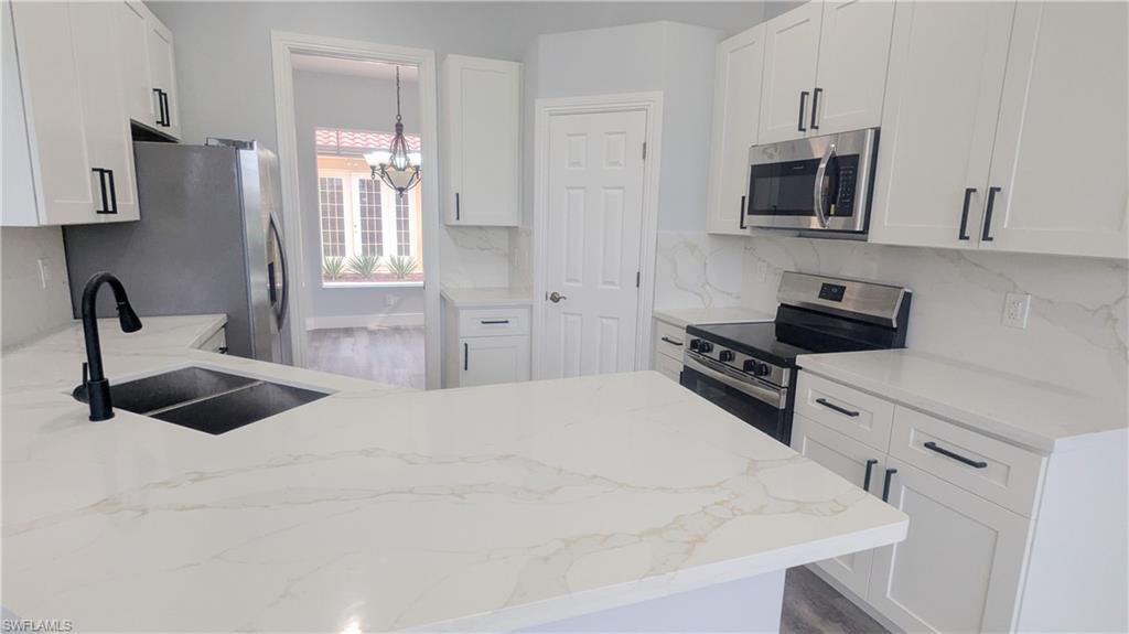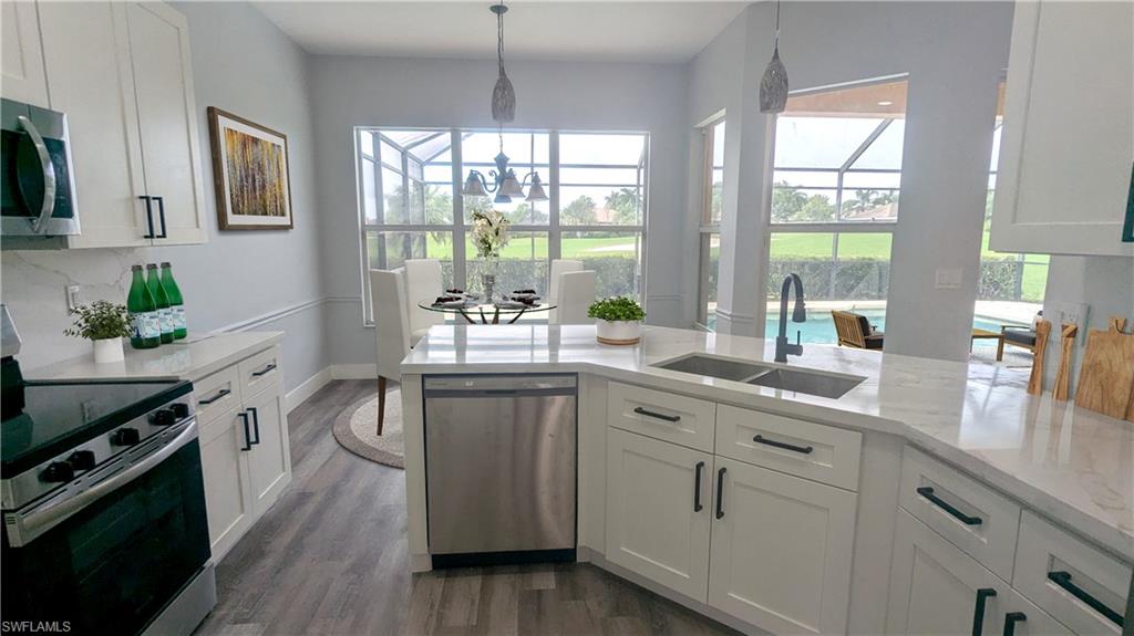 Welcome to 6733 Bent Grass Drive, an exquisite 3-bedroom, 3-bathroom pool home nestled in the prestigious Lely Resort community's Masters Reserve. This property epitomizes the best of Florida living, offering a seamless blend of luxury, comfort, and breathtaking views. The home sits on a large .39 acre cul de sac lot. The main house features 2 spacious bedrooms and 2 elegantly designed bathrooms, perfect for families or entertaining guests. A separate cabana adds a third bedroom and a full bathroom, offering privacy and flexibility, making this property one of the most sought-after models in the area. Whether you have visiting family or need a private office, the cabana is an ideal solution. Recently updated, the home boasts a brand-new kitchen with modern appliances, sleek countertops, and stylish cabinetry, creating a chef's dream. The bathrooms have also been meticulously renovated, providing spa-like experiences with modern fixtures and finishes. New flooring throughout the house adds a touch of elegance and warmth, creating a welcoming atmosphere. Step outside to your private oasis, where the sparkling pool awaits. Enjoy relaxing on the spacious patio while taking in the serene golf course views, complemented by a partial lake view that adds to the home's tranquil ambiance. This outdoor space is perfect for hosting gatherings, barbecues, or simply enjoying the Florida sunshine. Living in the Masters Reserve community of Lely Resort offers more than just a beautiful home; it provides an unparalleled lifestyle. Membership to the exclusive Players Club grants access to an array of world-class amenities. Enjoy three resort-style pools, indulge in casual and fine dining options, and participate in weekly member events and socials. The full-service spa, state-of-the-art fitness center with trainers and classes, and one of Naples' top tennis centers with tennis and pickleball courts offer endless recreational opportunities. Additional amenities include bocce courts, a billiards room, a theater, a members-only office with computers and printers, and a dog play park. Experience the perfect blend of luxury, convenience, and community at 6733 Bent Grass Drive. This is more than just a home; it’s a lifestyle that so many are proud to call their Naples residence. Don’t miss the opportunity to make this stunning property your own.