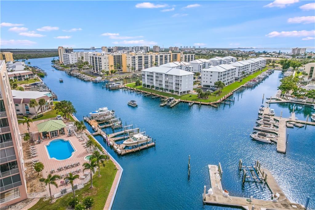 Welcome to this stunning 3 bed/2 bath CORNER waterfront condo. WEEKLY RENTALS allowed! Home warranty through October 2025 included. Whether you're looking for a permanent residence or a vacation home, this property offers both comfort and potential income! Abundance of natural light fills the open-concept living and dining area. The modern kitchen features beautiful quartz countertops, glass backslash, and stainless appliances, providing both style and functionality. Enjoy your morning coffee or evening beverage on the lanai overlooking the beautiful canal views!! Glass enclosure over screens in lanai add extra enclosed living space and protection from the weather. NEW AC in 2023! Palm Harbour Club offers a range of desirable amenities including tennis court, shuffle board and community pool. Convenience is at your doorstep with this prime location. Just a short walk away, you'll find yourself at the beach, where you can relax on the sugar white sand beach. The nearby Santini Plaza and CVS pharmacy provide easy access to shopping, restaurants and daily essentials. Don't miss out on this incredible opportunity to own a waterfront condo in Fort Myers Beach. Schedule your showing today and start living your dream coastal lifestyle!