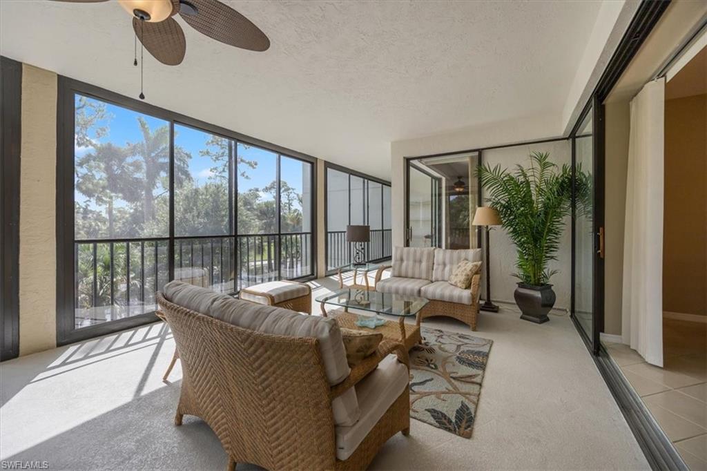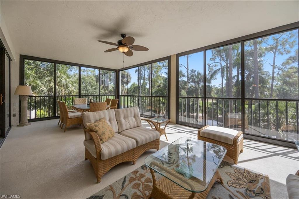 Condo living at it’s best! Feels like a Single-Family home but without the worries. This FURNISHED TURNKEY Royal Tern 3 bedroom 3 bath golf course condo offers a tranquil view of the 4th fairway. The updated gourmet kitchen, complete with granite countertops, new appliances open to the spacious dining and living room combination and right through to the signature 16’ x 42’ LANAI Florida room. This spacious condo with 3 large bedrooms each with their own bath is the perfect home to entertain family and friends. Just a short walk to the neighborhood pool and spa and to the golf Practice Range, the new and very social Crystal lake Sports Bar, pool, tennis, PICKLEBALL and fitness center. Eagle Creek is a warm & friendly golf, tennis and pet friendly ( no weight limit/ max 2) community set in over 300 acres of mature landscaping in South Naples. Best kept secret in Naples!!! 8 miles to 5th Ave Naples and 8 miles to the Beaches of Marco Island. BUYER of this property must purchase a Social/Sports Membership. (Social Sports members have unlimited access to the Golf practice facilities all year and unlimited golf play May 1 to Oct 31st) (ASK ABOUT THE GOLF UPGRADE LIST AND YOU CAN PLAY GOLF ALL YEAR LONG FOR A DAILY GOLF FEE)