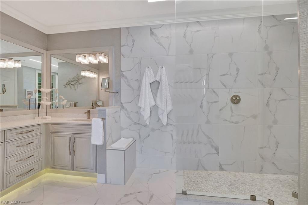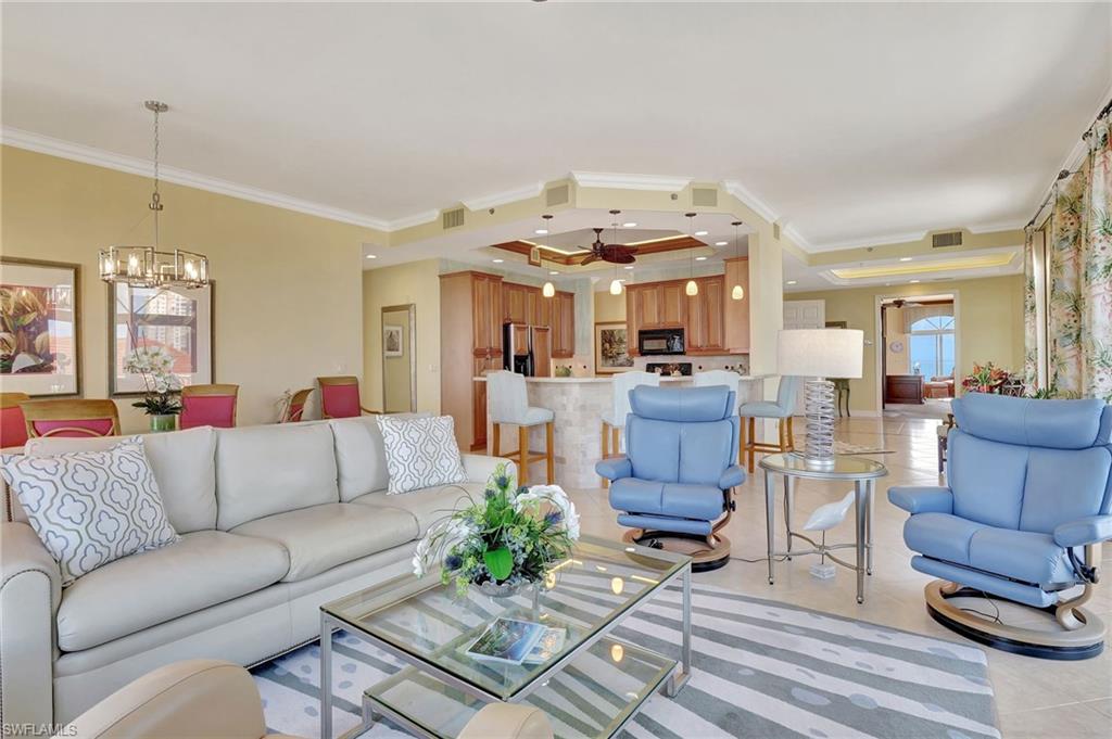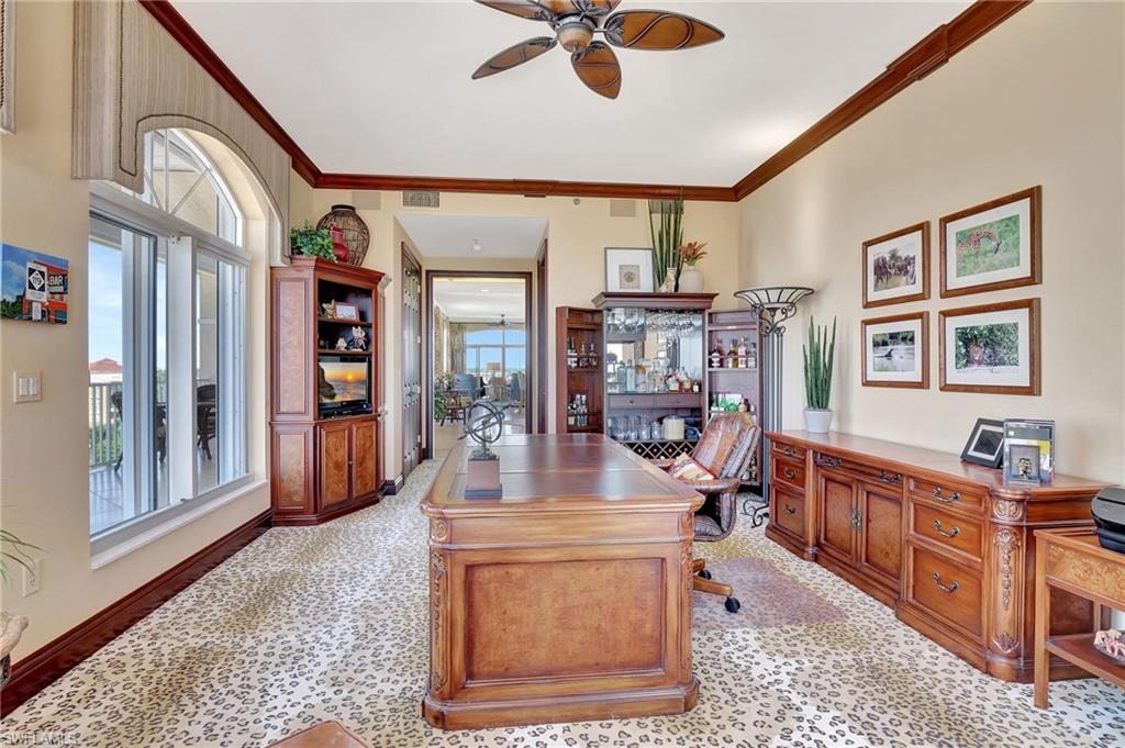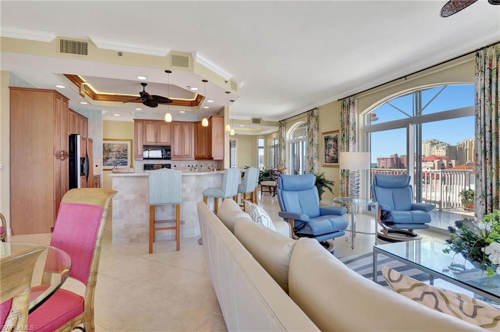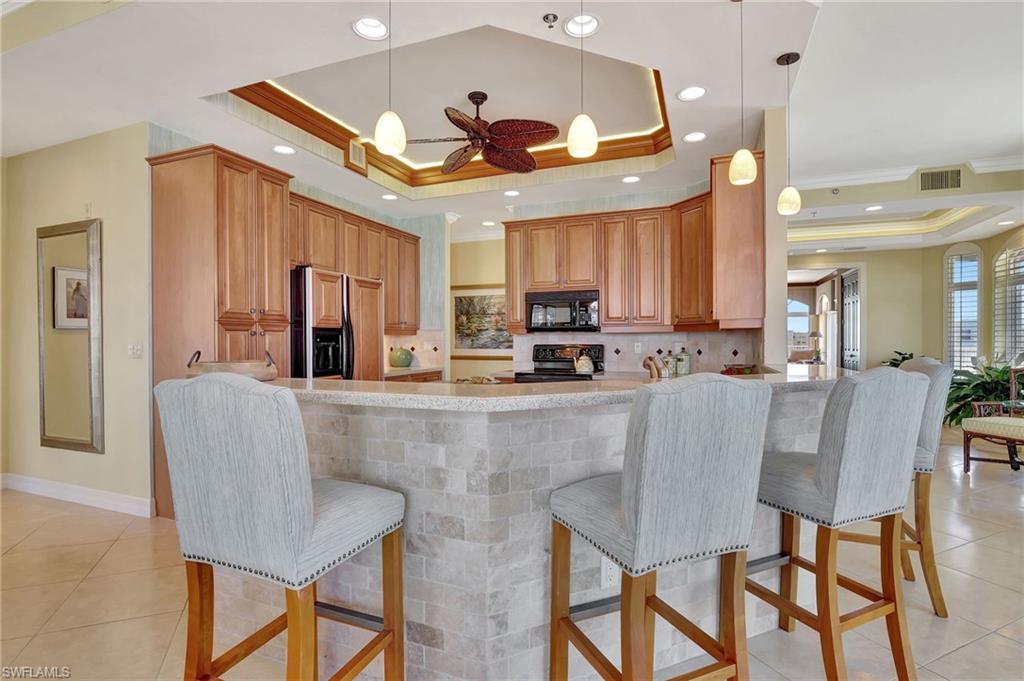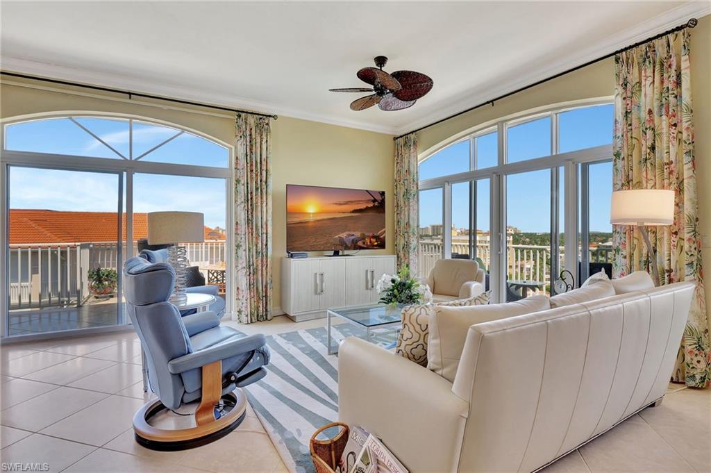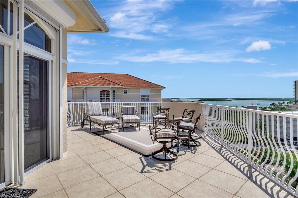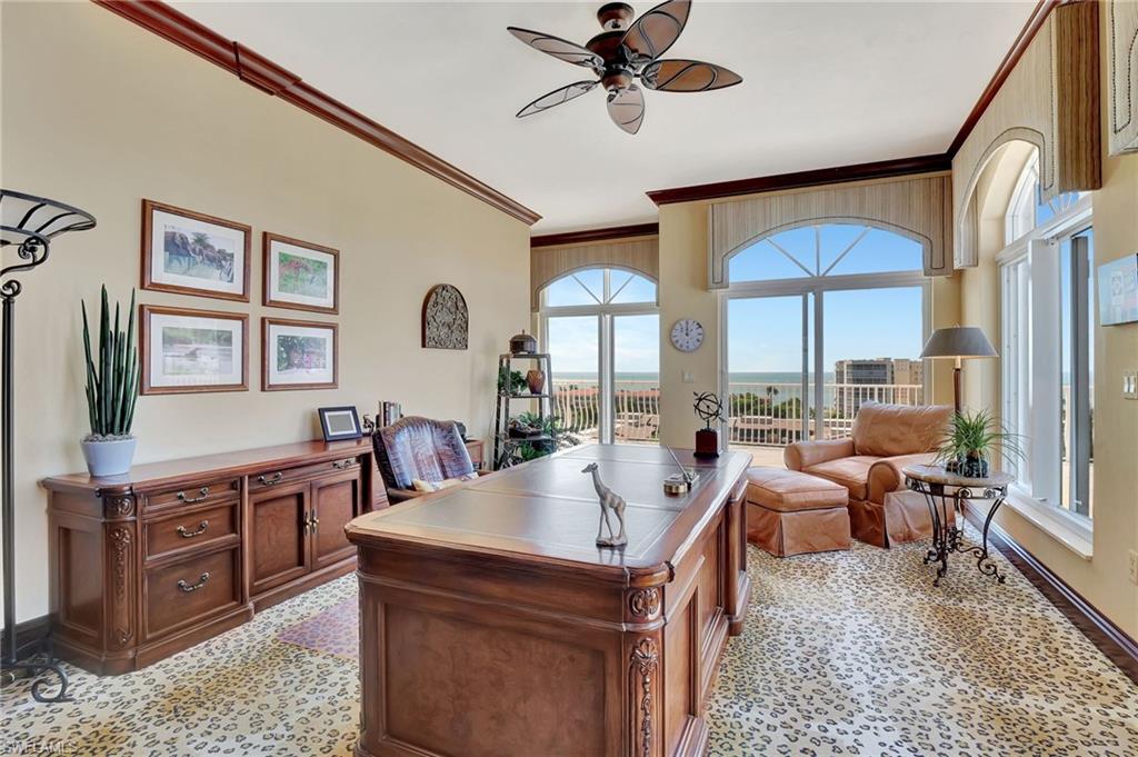 Price adjustment! You have to see this penthouse in person -located on the coveted south end where the views are absolutely stunning and the decor is perfectly suited for the Marco Island lifestyle! The move couldn't be easier since everything is included, updated and ready for a new owner after 25 years of enjoyment by the current owners. Come discover this spectacular penthouse where every detail has been meticulously crafted to create a breathtaking living experience on the ENTIRE top floor of the building (levels 1-6 in this complex are two units per floor). From the moment the elevator opens to your private entryway, you’ll be captivated by the grand foyer, featuring a lighted tray ceiling layered with crown molding, floor-to-ceiling windows, and exquisite patterned tile flooring. This residence is being offered fully furnished with three spacious bedrooms plus a home office/optional 4th bedroom, each with its own ensuite full bathroom, custom window treatments, elegant bedding, and upholstered furniture—every room a masterpiece of design. The primary bedroom suite, recently updated, exudes sophistication, with tasteful renovations extending to the luxurious primary bathroom. Custom painted wall treatments in both the master bath and kitchen enhance the refined elegance throughout this magnificent home. Step outside to your nearly 360-degree wraparound lanai, a haven for outdoor living. With multiple seating areas perfect for entertaining or unwinding, accessible through multiple sliding doors, the views of the gulf, the canal and the city will leave you in awe. Electric hurricane shutters on every window provide an added level of assurance and convenience. And the indulgence doesn’t stop there—the extremely rare, two and a half-car street level garage, fully tiled with center dividing wall removed for additional space adds another layer of luxury. With two service doors leading directly into the lobby and elevator, convenience is unmatched! Residents enjoy a large, geothermal heated pool, a clubhouse with a full kitchen, grills, two exercise rooms, and access to five boat slips available for lease by lottery. This immaculate penthouse is more than just a home—it's a lifestyle. Designed for those who crave both sophistication and serenity, this penthouse boasts expansive open living spaces, floor-to-ceiling windows, and private terraces where you can savor both sunrise and sunset over the island’s pristine beaches. Be prepared to fall in love with this one of a kind residence.