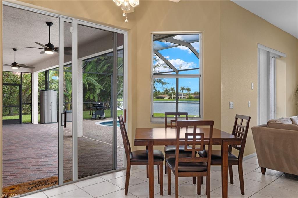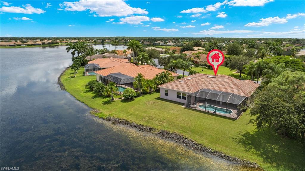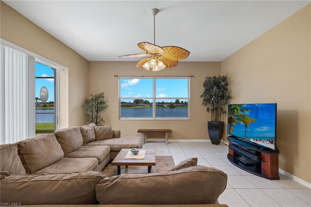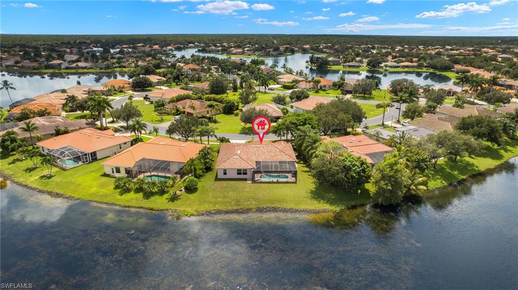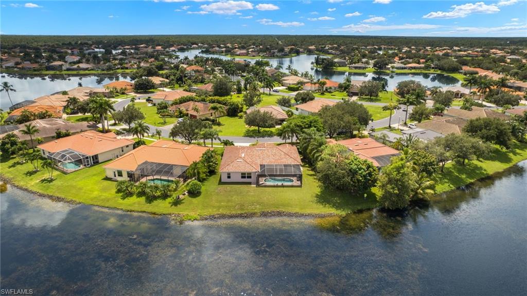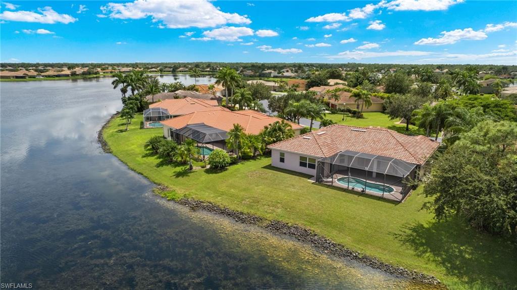 This gorgeous 3 bedroom + optional 4th bedroom or den, 2 full bathrooms, pool home with breathtaking water views that offers a flexible layout to suit your lifestyle. The open-concept living area flows seamlessly to the outdoors and invites you to relax by the sparkling pool while taking in the serene surroundings. This property features a spacious, light-filled interior with an open floor plan perfect for entertaining. The outdoor space is an oasis with an extended covered lanai, providing an ideal setting for dining lounging and entertaining. Pool has been freshly resurfaced with new pump and filter. Oversized 2 car garage also is complete with 64 sqft of mounted rack storage. Enjoy your time on the lake sailing, kayaking, paddle boarding and fishing. Valencia Lakes is a gate community with low HOA fees that include a heated pool, fitness center, new playground, and multi-purpose basketball/tennis/pickleball courts. Located in a quaint & quiet location in the neighborhood with minimal traffic and near the easily accessible resident-only gate. Relax peacefully on your lanai with no road noise from Immokalee Rd! You’ll be just minutes from top-rated schools, upscale shopping, and fine dining. With its prime location, unmatched water views, and flexible floor plan, this home is a rare find. Don’t miss your chance to own this slice of paradise and start living your dream!