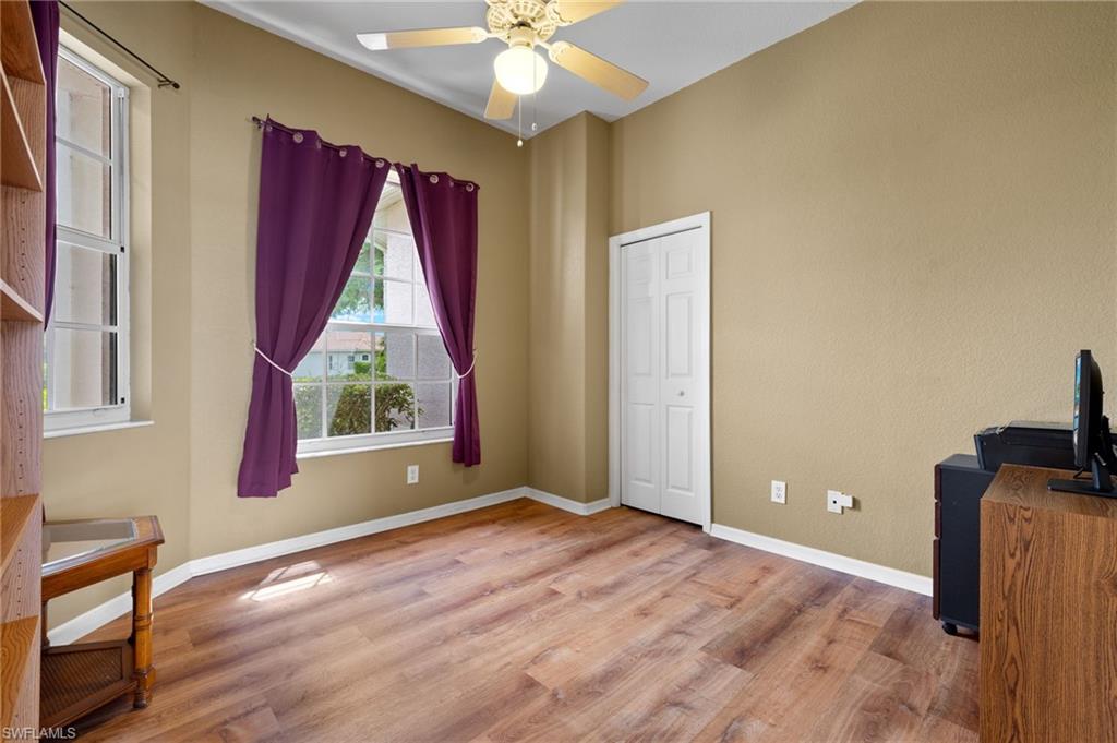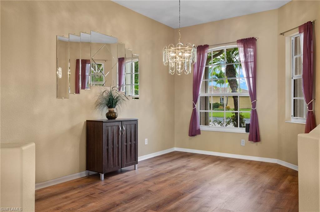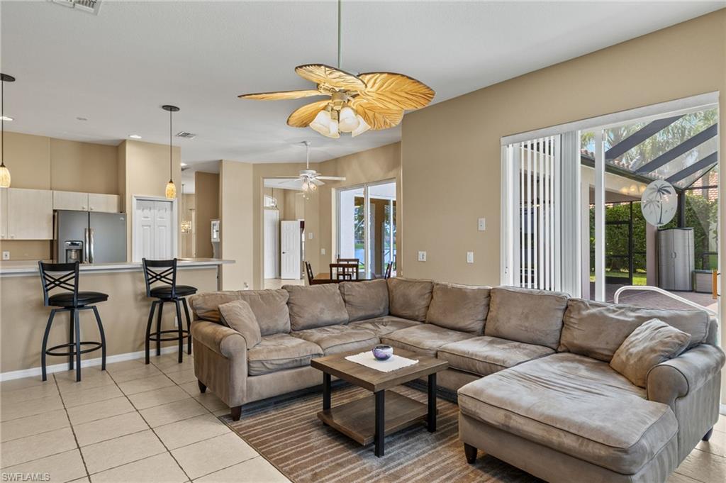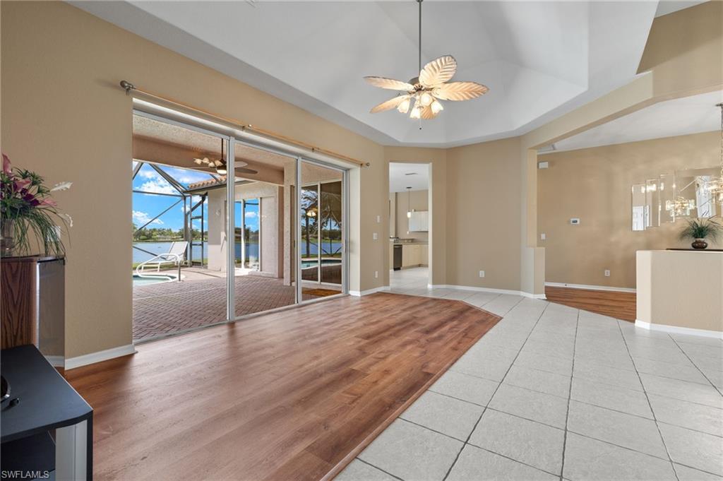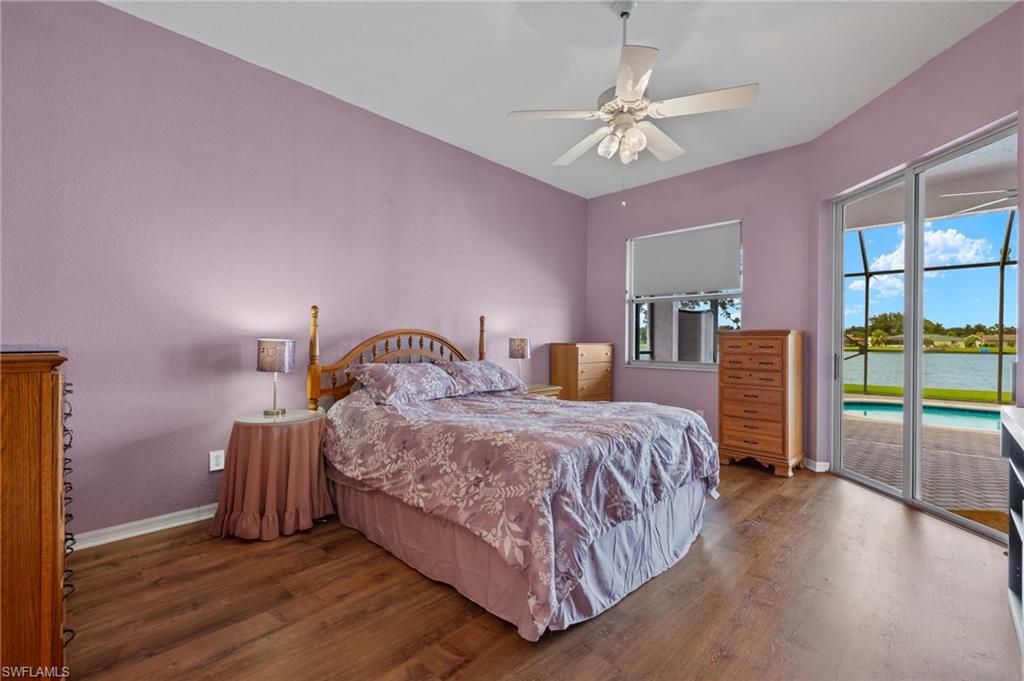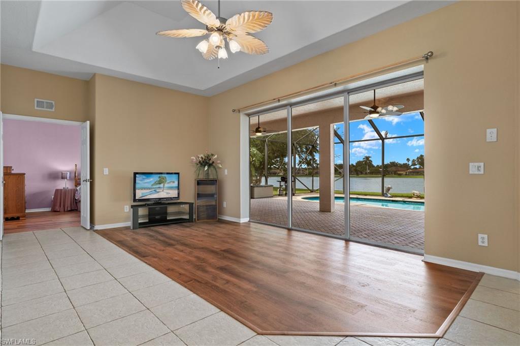 This gorgeous 3 bedroom + optional 4th bedroom or den, 2 full bathrooms, pool home with breathtaking water views that offers a flexible layout to suit your lifestyle. The open-concept living area flows seamlessly to the outdoors and invites you to relax by the sparkling pool while taking in the serene surroundings. This property features a spacious, light-filled interior with an open floor plan perfect for entertaining. The outdoor space is an oasis with an extended covered lanai, providing an ideal setting for dining lounging and entertaining. Pool has been freshly resurfaced with new pump and filter. Oversized 2 car garage also is complete with 64 sqft of mounted rack storage. Enjoy your time on the lake sailing, kayaking, paddle boarding and fishing. Valencia Lakes is a gate community with low HOA fees that include a heated pool, fitness center, new playground, and multi-purpose basketball/tennis/pickleball courts. Located in a quaint & quiet location in the neighborhood with minimal traffic and near the easily accessible resident-only gate. Relax peacefully on your lanai with no road noise from Immokalee Rd! You’ll be just minutes from top-rated schools, upscale shopping, and fine dining. With its prime location, unmatched water views, and flexible floor plan, this home is a rare find. Don’t miss your chance to own this slice of paradise and start living your dream!