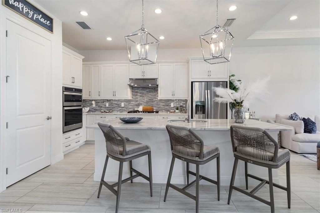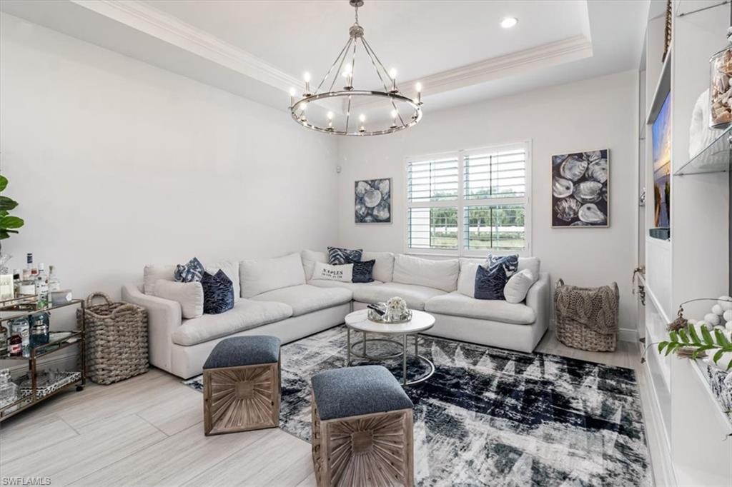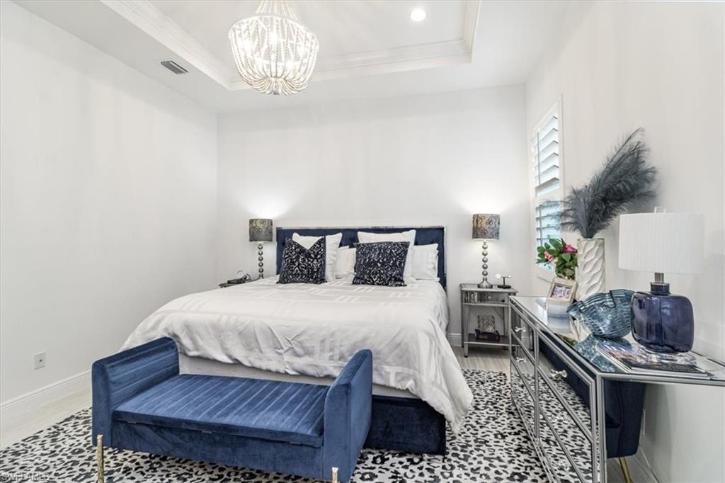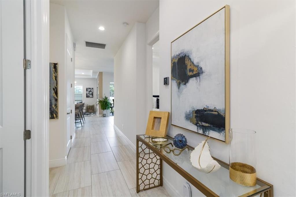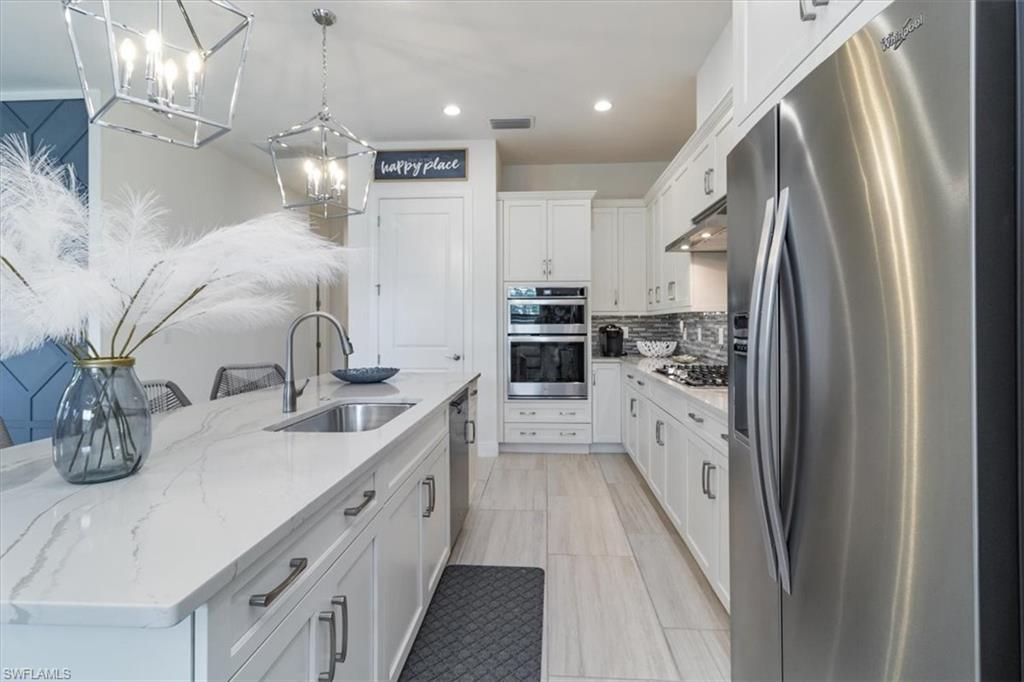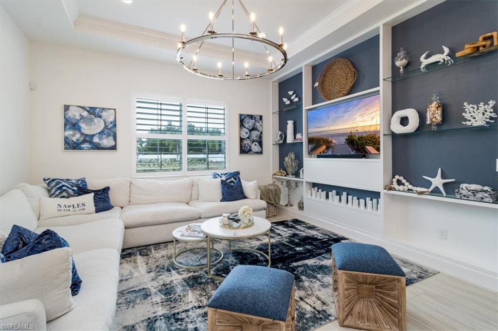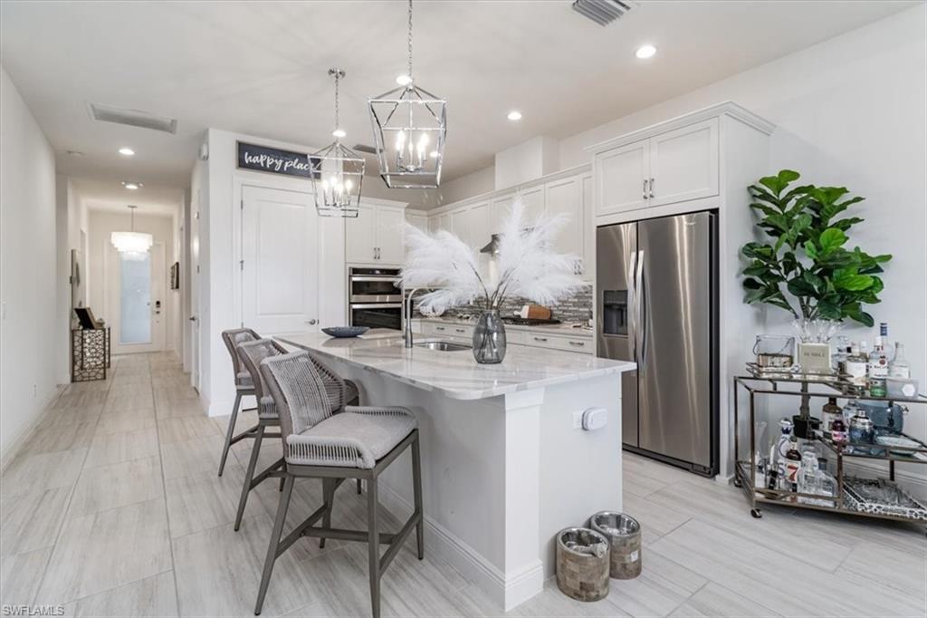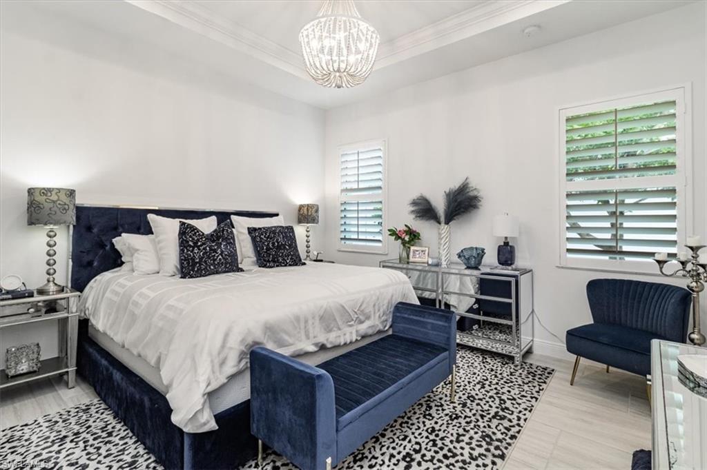 This spacious, turnkey furnished two-bedroom, two-bathroom home in the desirable Azure @ Hacienda Lakes offers the perfect blend of comfort and style. Featuring gorgeous tile flooring throughout, a bright white kitchen with modern cabinetry, stainless steel appliances, and contemporary light fixtures, this home is a true gem. The master bathroom boasts a sleek shower door, while plantation shutters and custom cabinetry in the laundry room add to the home’s elegance. Beautiful wall accents throughout further enhance its sophisticated design. Enjoy peaceful lake views from the comfort of your home. The property also includes a two-car garage, providing plenty of space for both vehicles and storage. Azure is a gated community that offers an exceptional lifestyle with resort-style amenities, including a pool, spa, fitness center, community room with a kitchenette, library, pool table, and bar. Stay active with tennis and pickleball courts, and enjoy the convenience of being just a five-minute walk from the clubhouse. Don’t miss your chance to own this beautiful home in one of Naples’ most sought-after communities!