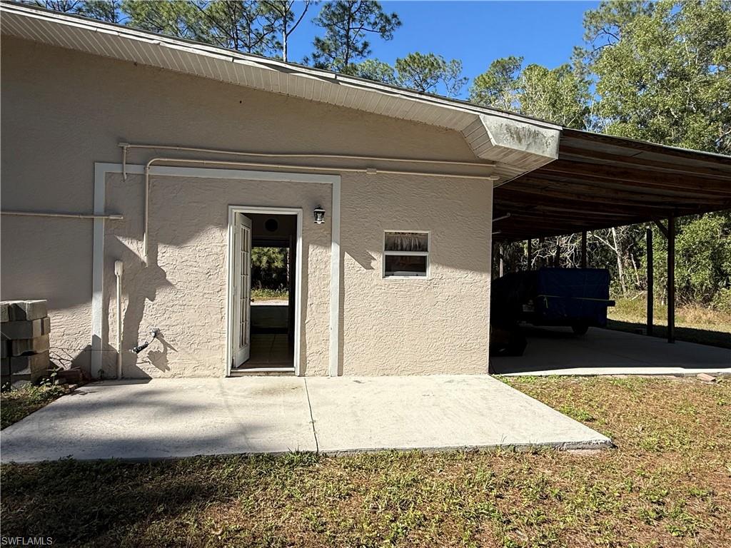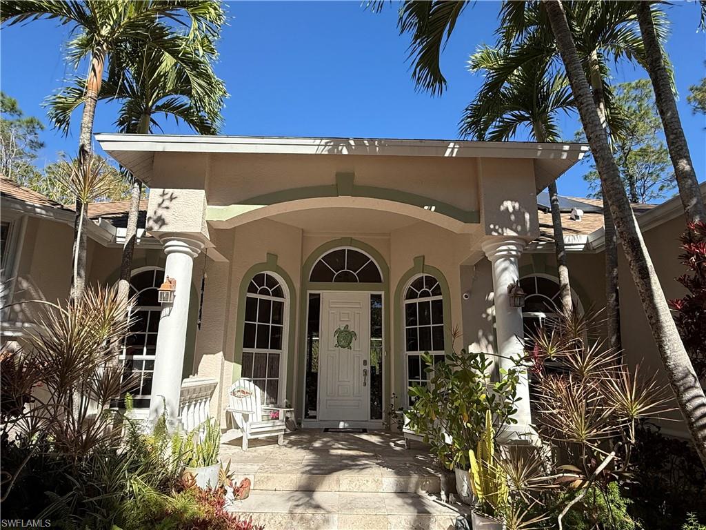 Nestled at the end of 25th Avenue SW, just off Collier Blvd., this exceptional property offers unmatched privacy, modern upgrades, and versatile features. The main home boasts soaring 10-foot ceilings and abundant natural light, complemented by a newer roof (2022) and state-of-the-art smart home systems, including security cameras. This property truly stands out with its stunning mature landscaping, featuring mango and other fruit trees, making it ideal for families and business owners seeking extra land for entertaining. The backyard oasis provides ultimate privacy around the heated pool and spa, enhanced by a new screen and Smart Screen Hurricane Fabric. Additional highlights include landscape lighting, a Kinetico RO water system, a solar water heater, a front gate with a video interface, and an 8-zone sprinkler system. The home is comfortably climate-controlled year-round with two AC units—a 4-ton unit installed in 2018 and a 2.5-ton unit installed in 2020. A bonus 880 sq. ft. rear building adds even more value, complete with electric, water, and AC. It features an efficiency apartment, ample storage, and a spacious workshop with two garage doors. The golf cart barn, also equipped with electricity, enhances the property’s functionality. There’s a carport that accommodates four vehicles, and with a whole house generator, you can be assured of continuous power for added security. Offering a perfect blend of comfort, luxury, and practicality, this extraordinary property is a must-see for discerning buyers. Additionally, you're just 15 minutes away from downtown Naples and the beautiful beaches. The property has never flooded—rest assured, this home is high and dry, waiting for you to make it your own.