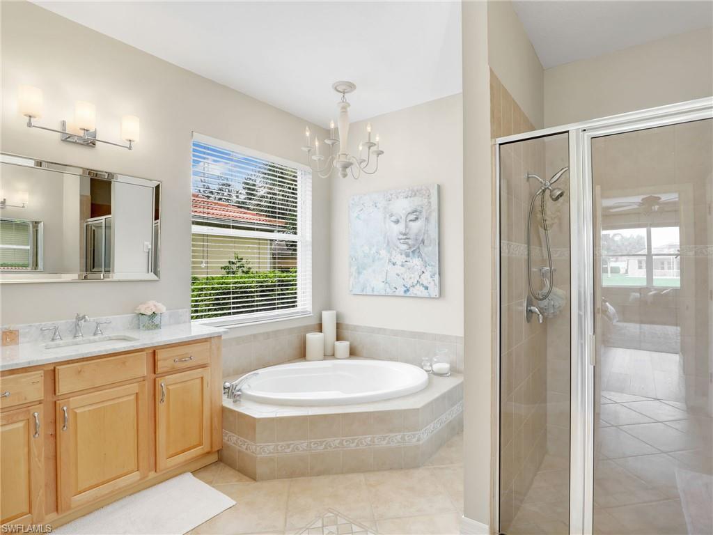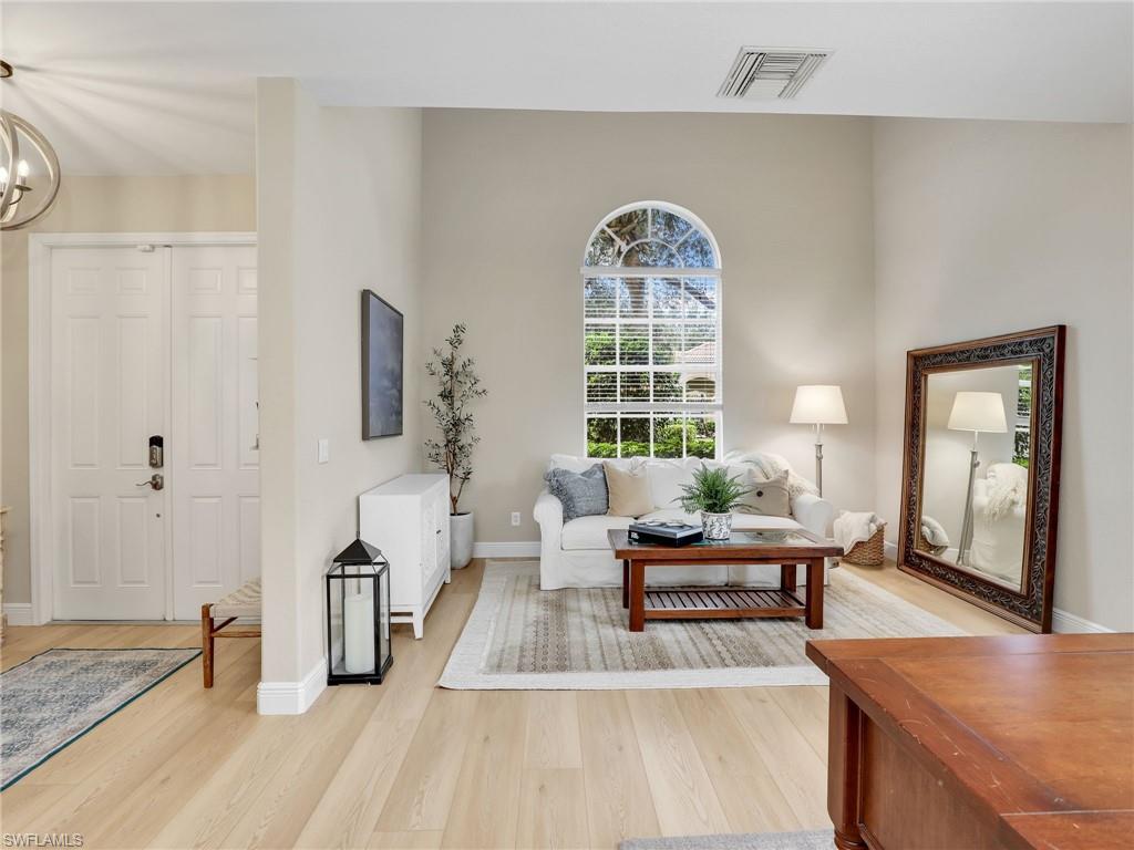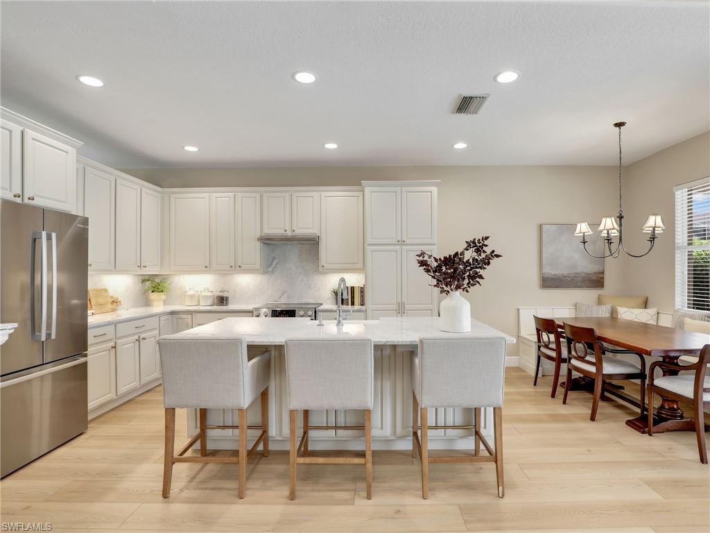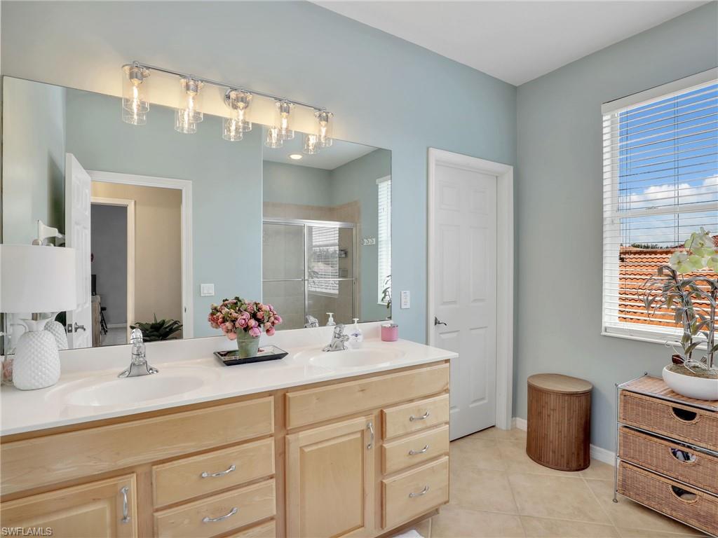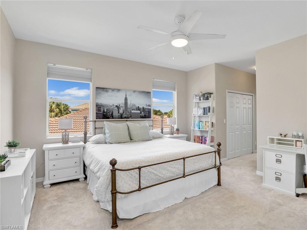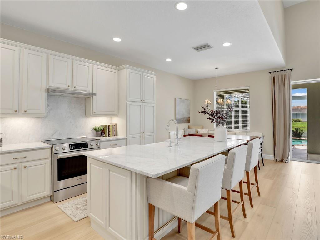NEWLY RENOVATED. Situated on a quiet cul-de-sac, this beautiful lakefront pool Greenbriar Grande model spanning over 3300 square feet, boasts 5 bedrooms, ( including 1 UPSTAIRS AND 1 DOWNSTAIRS MASTER bedrooms ) 3.5 baths. This home offers everything your family needs, from a modern design to the perfect layout for privacy and comfort. Whether you have a large family, adult children, or in-laws, the space is thoughtfully crafted to meet everyone’s needs. Step inside to find exquisite modern finishes and neutral tones that create a warm, inviting atmosphere. The attention to detail is remarkable, making this home feel as stylish as it is welcoming. With TWO spacious primary en-suites, this home offers unparalleled flexibility. One suite is conveniently located on the main level with tranquil lake and pool views, while the second is a private retreat upstairs. Whether you’re accommodating family, guests, in-laws, or simply want a luxurious retreat, this home is designed to provide comfort, privacy, and flexibility. The open-concept kitchen is an entertainer’s dream. Featuring high-end finishes, including marble countertops, a large 8-foot island, a farmhouse sink, and premium Bosch stainless steel appliances, it's the perfect blend of function and style. The charming built-in seating adds storage and space, making it ideal for casual meals or gathering with family and friends. Natural light floods the home through large windows and pocketing glass sliding doors, offering breathtaking views of the serene lake that serves as the backdrop for the living and dining areas. Step outside to your very own slice of paradise with a beautifully landscaped yard, elegant lighting, and a pool area overlooking the lake. This tranquil outdoor space is perfect for enjoying peaceful moments in the Florida sunshine. Don’t miss out on the opportunity to experience the best of Naples living in this exceptional lakefront home! NEW LARGE BARREL TILE ROOF 2018, POOL CAGE 2019, AC UNITS 2019, WATER HEATER 2018
