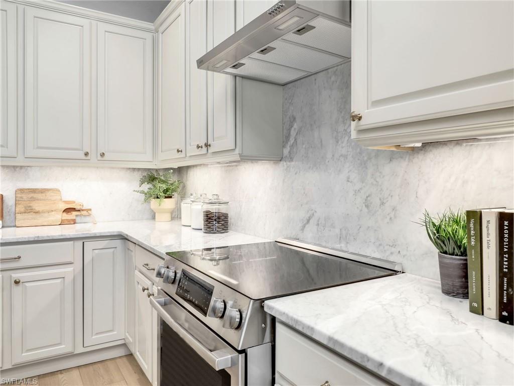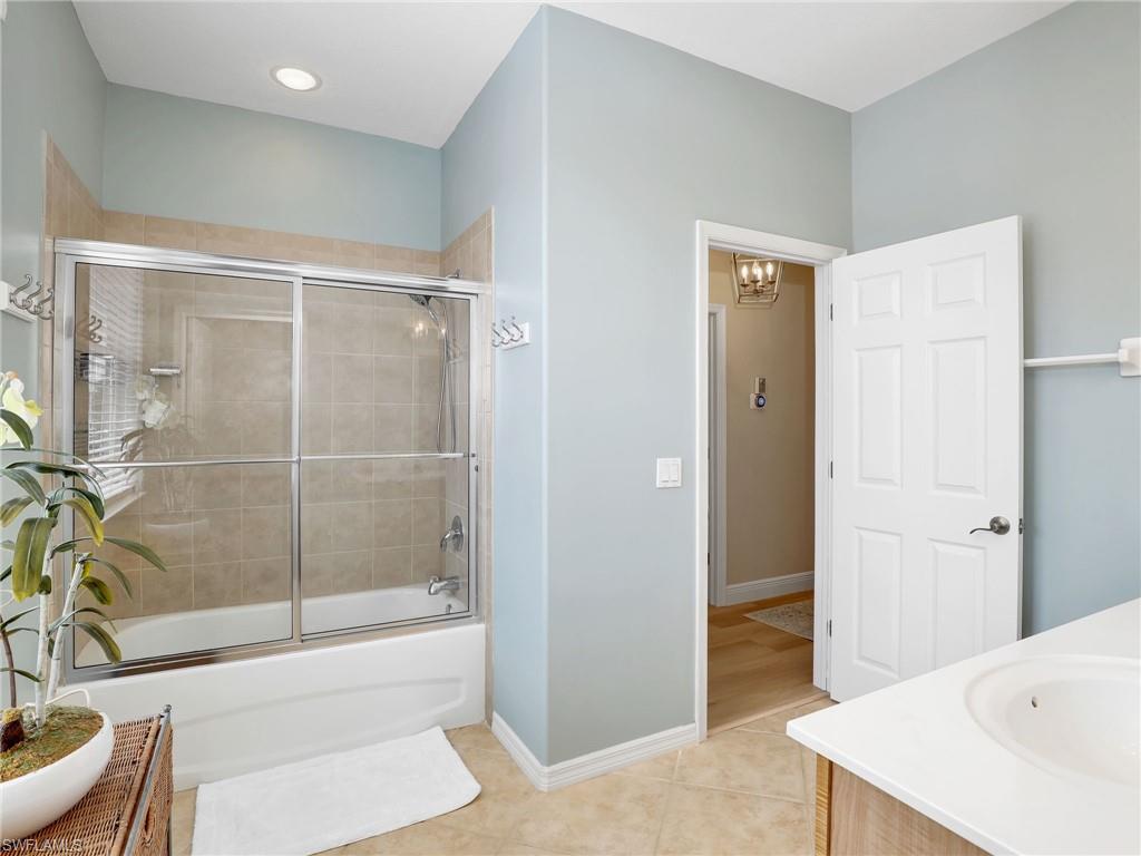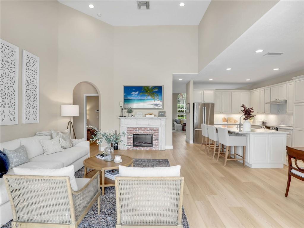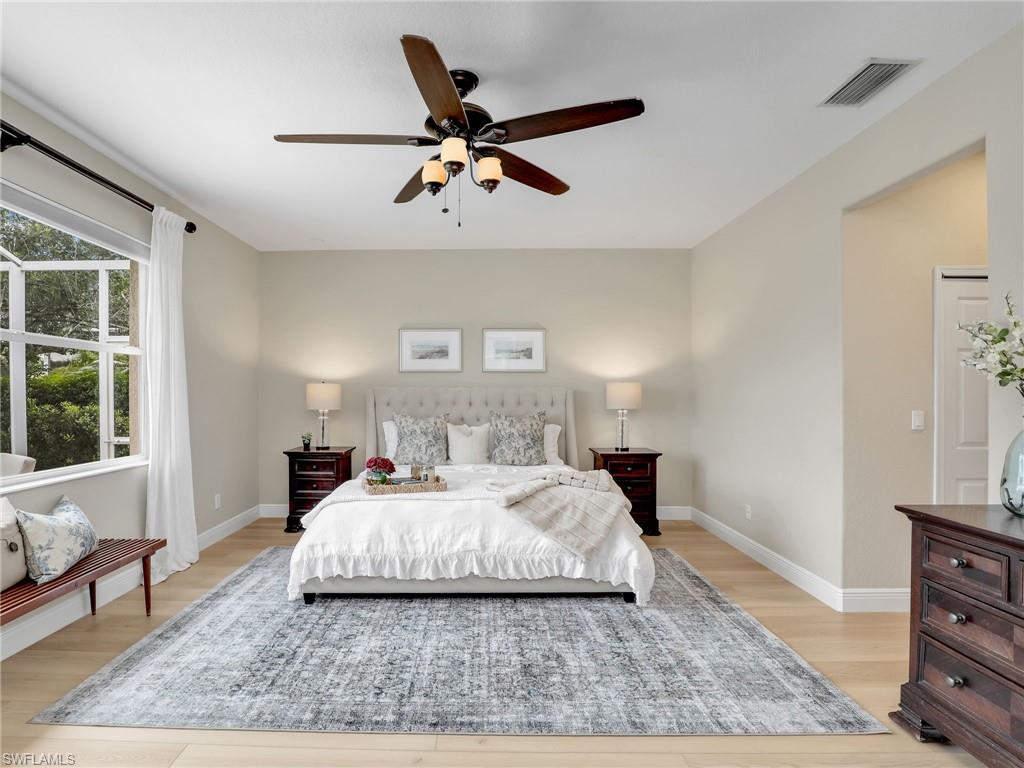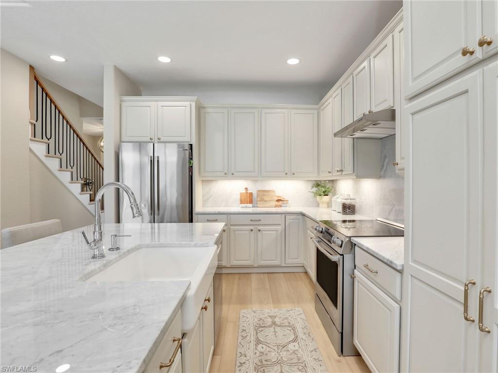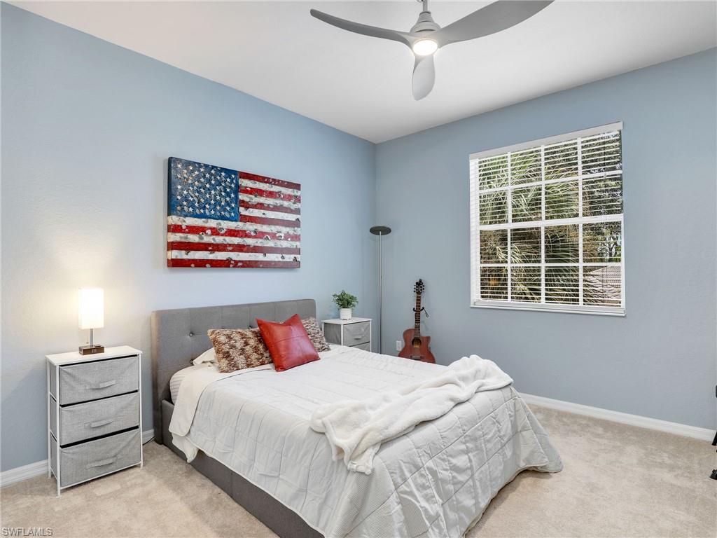 NEWLY RENOVATED. Situated on a quiet cul-de-sac, this beautiful lakefront pool Greenbriar Grande model spanning over 3300 square feet, boasts 5 bedrooms, ( including 1 UPSTAIRS AND 1 DOWNSTAIRS MASTER bedrooms ) 3.5 baths. This home offers everything your family needs, from a modern design to the perfect layout for privacy and comfort. Whether you have a large family, adult children, or in-laws, the space is thoughtfully crafted to meet everyone’s needs. Step inside to find exquisite modern finishes and neutral tones that create a warm, inviting atmosphere. The attention to detail is remarkable, making this home feel as stylish as it is welcoming. With TWO spacious primary en-suites, this home offers unparalleled flexibility. One suite is conveniently located on the main level with tranquil lake and pool views, while the second is a private retreat upstairs. Whether you’re accommodating family, guests, in-laws, or simply want a luxurious retreat, this home is designed to provide comfort, privacy, and flexibility. The open-concept kitchen is an entertainer’s dream. Featuring high-end finishes, including marble countertops, a large 8-foot island, a farmhouse sink, and premium Bosch stainless steel appliances, it's the perfect blend of function and style. The charming built-in seating adds storage and space, making it ideal for casual meals or gathering with family and friends. Natural light floods the home through large windows and pocketing glass sliding doors, offering breathtaking views of the serene lake that serves as the backdrop for the living and dining areas. Step outside to your very own slice of paradise with a beautifully landscaped yard, elegant lighting, and a pool area overlooking the lake. This tranquil outdoor space is perfect for enjoying peaceful moments in the Florida sunshine. Don’t miss out on the opportunity to experience the best of Naples living in this exceptional lakefront home! NEW LARGE BARREL TILE ROOF 2018, POOL CAGE 2019, AC UNITS 2019, WATER HEATER 2018