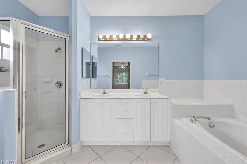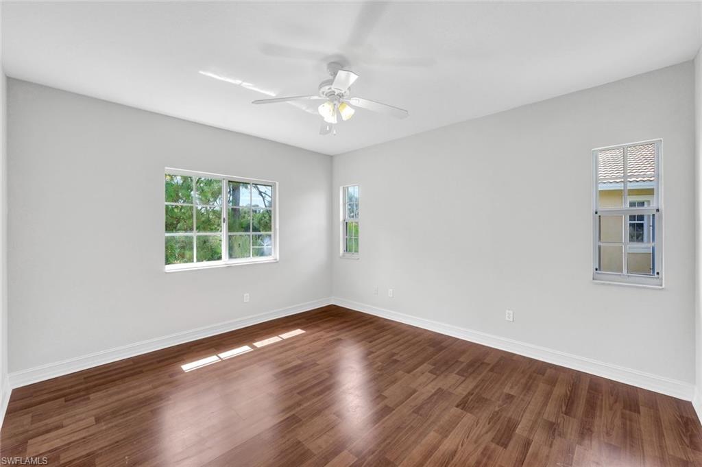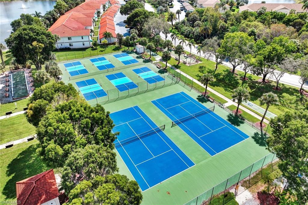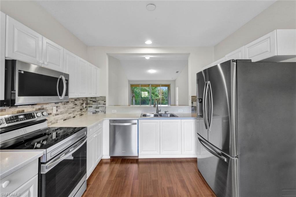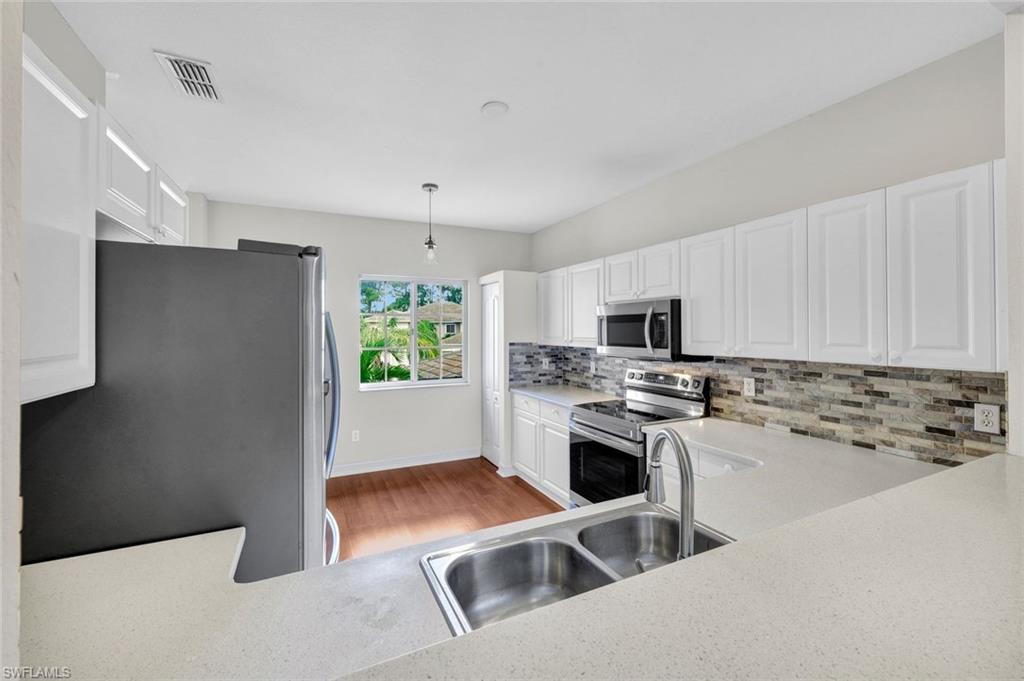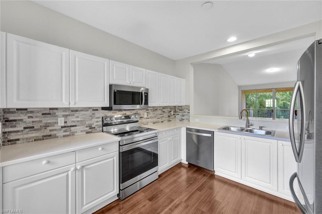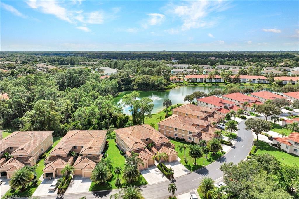 Discover the perfect blend of comfort and convenience in this well appointed 2nd floor coach home in Sapphire Lakes offering three bedrooms, two baths with 1,489 sq. ft. air conditioned space this home offers ample room for daily living, relaxation and entertaining. The open and airy floor plan features soaring volume ceilings in the great room and wood look laminate flooring throughout. The kitchen boasts stainless steel appliances, raised panel cabinetry, solid surface counter-tops and a stylish tile back-splash. The primary bedroom features walk-in closet an ensuite bathroom with dual vanities and a separate shower and tub. The attached one car garage provides convenience and secure parking. Step onto your screened lanai and soak in the lake views and preserve scenery. Sapphire Lakes is a vibrant community that offers a wide range of social and recreational activities including the use of four large swimming pools, two tennis courts, six dedicated pickle-ball courts, two bocce courts and expansive picnic area. Located just a short 15-minute drive from the pristine beaches of Naples and the bustling downtown area, this home provides easy access to shopping, dining, and entertainment. Don't miss this opportunity to make this stunning coach home your own!