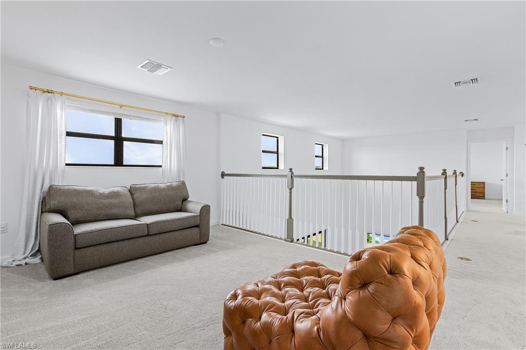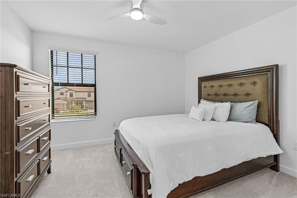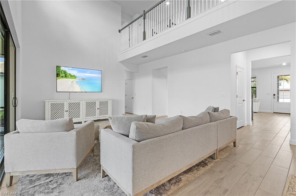 No storm damage from recent hurricanes and not in a flood zone! Discover this light-filled 5-bedroom, 4.5-bathroom home located on a peaceful cul-de-sac street in the gated Verdana Village community. With two convenient driveways, perfect for multiple drivers or those who love to travel, this home offers a seamless blend of comfort and functionality. The open floor plan features a generous living area that extends into an enclosed lanai, ideal for entertaining. The modern kitchen includes a breakfast bar and stainless steel appliances. A main-floor bedroom with an ensuite provides added convenience. Upstairs, a spacious loft overlooks the lower level, while the primary bedroom boasts a large ensuite with a shower and two separate vanities. Three additional bedrooms complete the upper floor. Enjoy all the amenities Verdana Village has to offer, including a community pool, pickleball and tennis courts, a fitness center, and more. Don’t miss this fantastic opportunity!