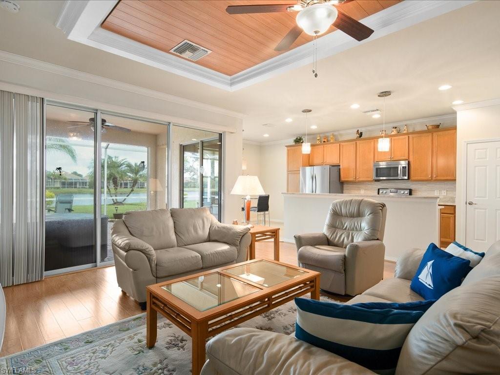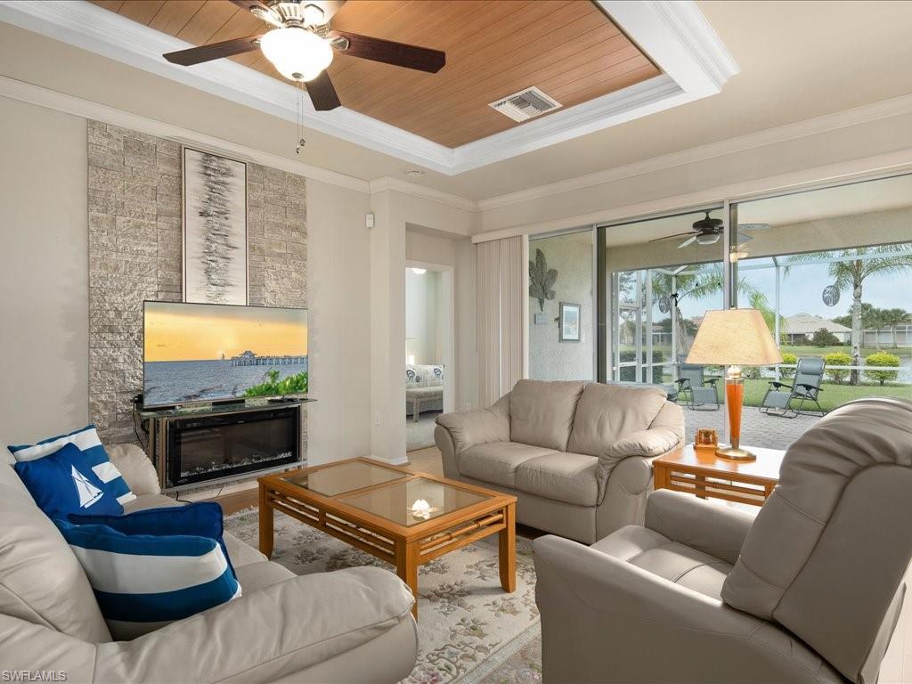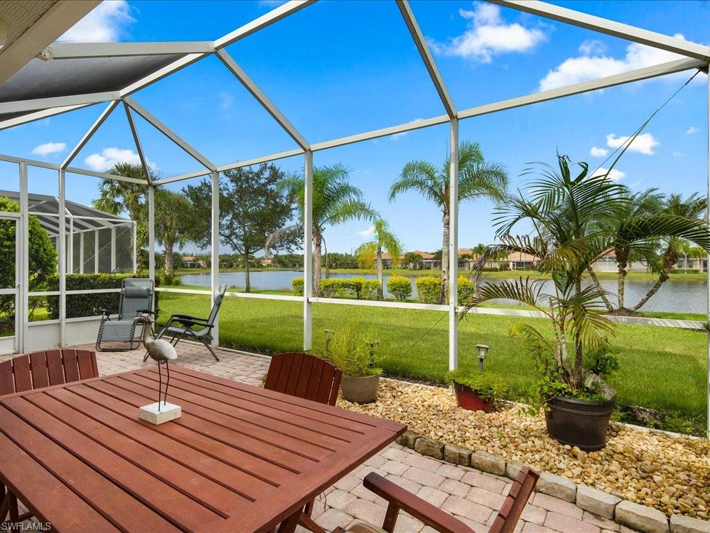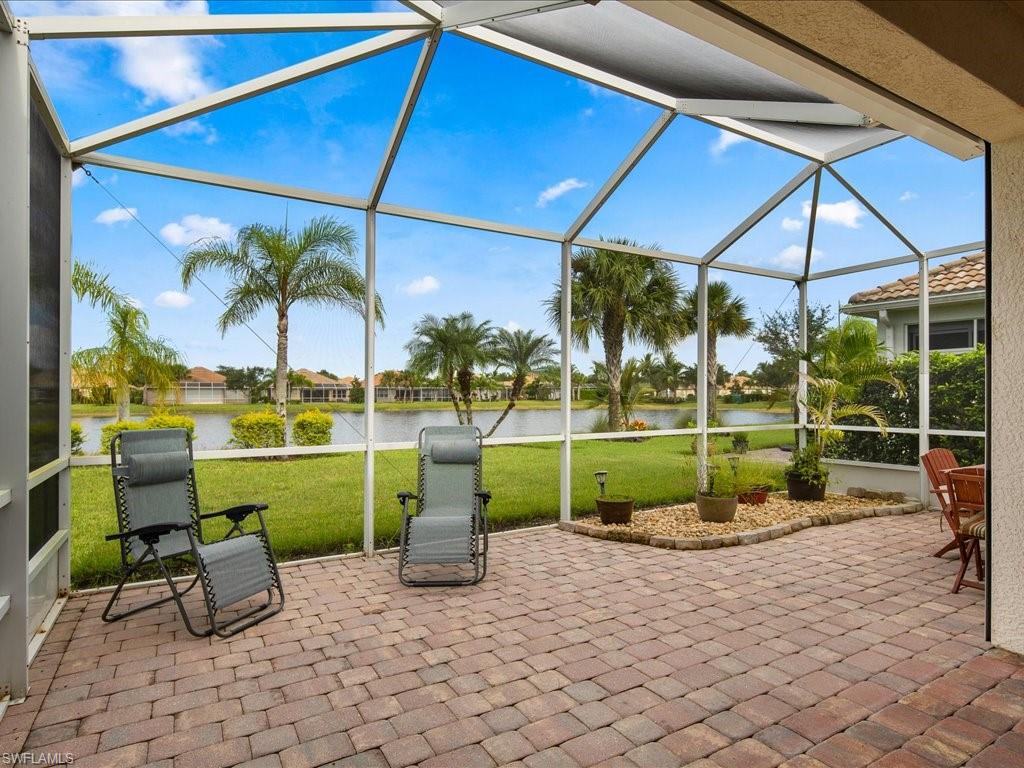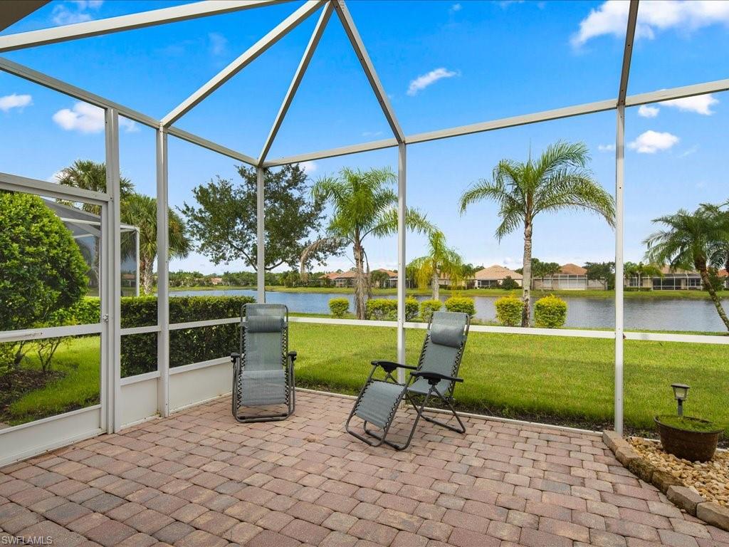 Welcome to Verona Walk — A Premier Gated Community in Naples! This spacious 3 Bedroom + Den, 2 Bath Vernon Hill single-family home is being offered turnkey furnished or unfurnished if preferred and is perfect for entertaining family and friends. The open-concept floor plan features elegant crown molding, a stylish inlay ceiling, and a striking stone accent wall for added ambiance. The bright and modern kitchen is a chef’s delight, featuring stainless steel appliances, quartzite countertops, a tile backsplash, breakfast nook, and counter seating — ideal for casual dining and gatherings. Retreat to the spacious primary suite showcasing serene water views, an oversized walk-in closet, and a luxurious en suite bath with soaking tub, separate shower, and dual vanities. This popular Vernon Hill model includes the extended lanai option, offering additional space for outdoor living and entertaining. Added features include electric and accordion storm shutters for peace of mind and a new A/C system installed in December 2022 for year-round comfort. Residents of Verona Walk enjoy resort-style amenities, including a Town Center, resort pool, pickleball, tennis, bocce, fitness center, post office, travel agency, and a vibrant calendar of community events and activities. This award winning community is conveniently located just minutes from shopping, dining, I-75, and the pristine beaches of Naples and Marco Island. Don’t miss this opportunity to live the Verona Walk lifestyle — schedule your private showing today!