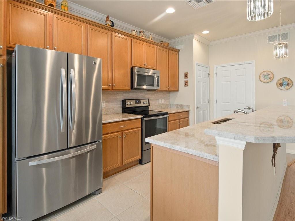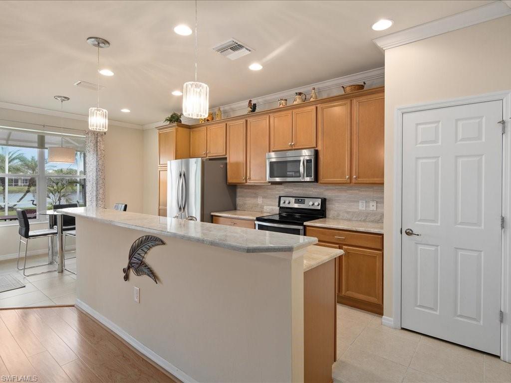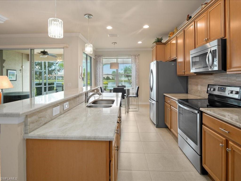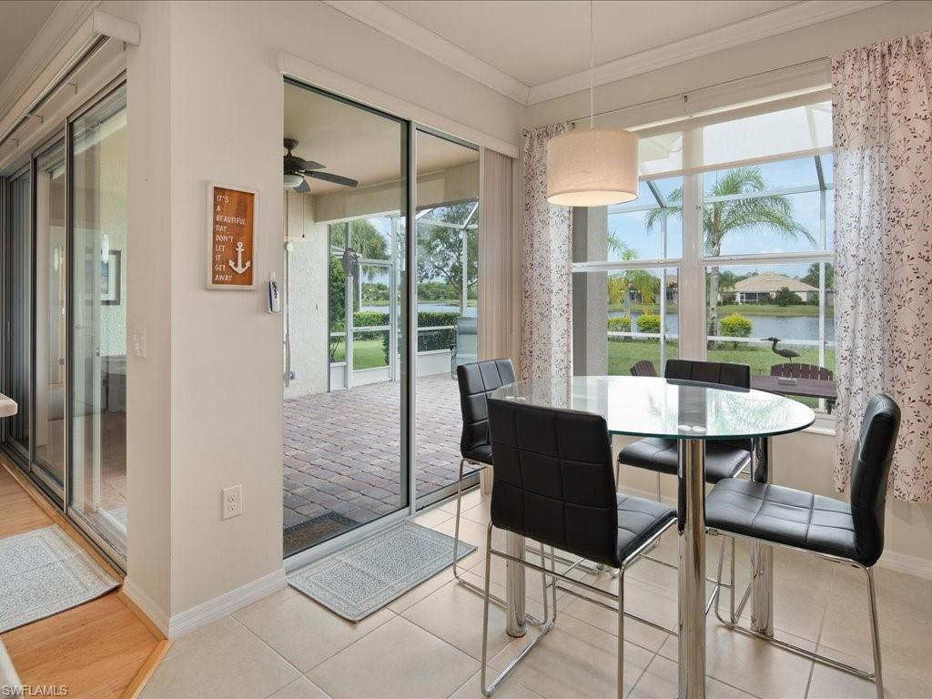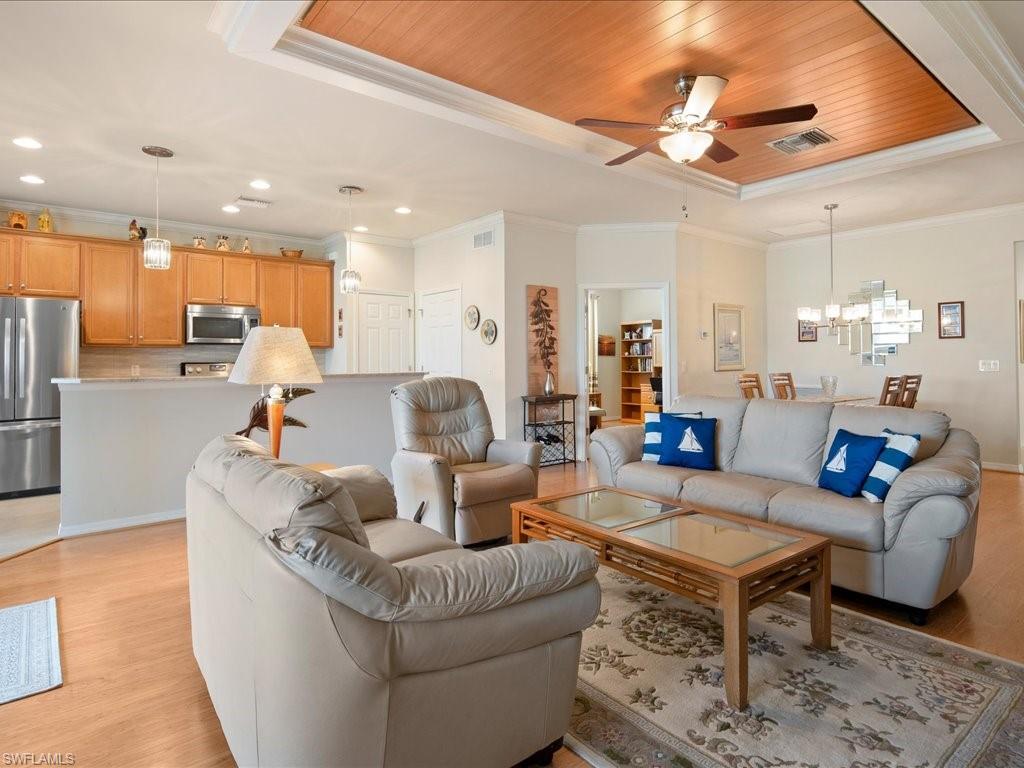 Welcome to Verona Walk — A Premier Gated Community in Naples! This spacious 3 Bedroom + Den, 2 Bath Vernon Hill single-family home is being offered turnkey furnished or unfurnished if preferred and is perfect for entertaining family and friends. The open-concept floor plan features elegant crown molding, a stylish inlay ceiling, and a striking stone accent wall for added ambiance. The bright and modern kitchen is a chef’s delight, featuring stainless steel appliances, quartzite countertops, a tile backsplash, breakfast nook, and counter seating — ideal for casual dining and gatherings. Retreat to the spacious primary suite showcasing serene water views, an oversized walk-in closet, and a luxurious en suite bath with soaking tub, separate shower, and dual vanities. This popular Vernon Hill model includes the extended lanai option, offering additional space for outdoor living and entertaining. Added features include electric and accordion storm shutters for peace of mind and a new A/C system installed in December 2022 for year-round comfort. Residents of Verona Walk enjoy resort-style amenities, including a Town Center, resort pool, pickleball, tennis, bocce, fitness center, post office, travel agency, and a vibrant calendar of community events and activities. This award winning community is conveniently located just minutes from shopping, dining, I-75, and the pristine beaches of Naples and Marco Island. Don’t miss this opportunity to live the Verona Walk lifestyle — schedule your private showing today!