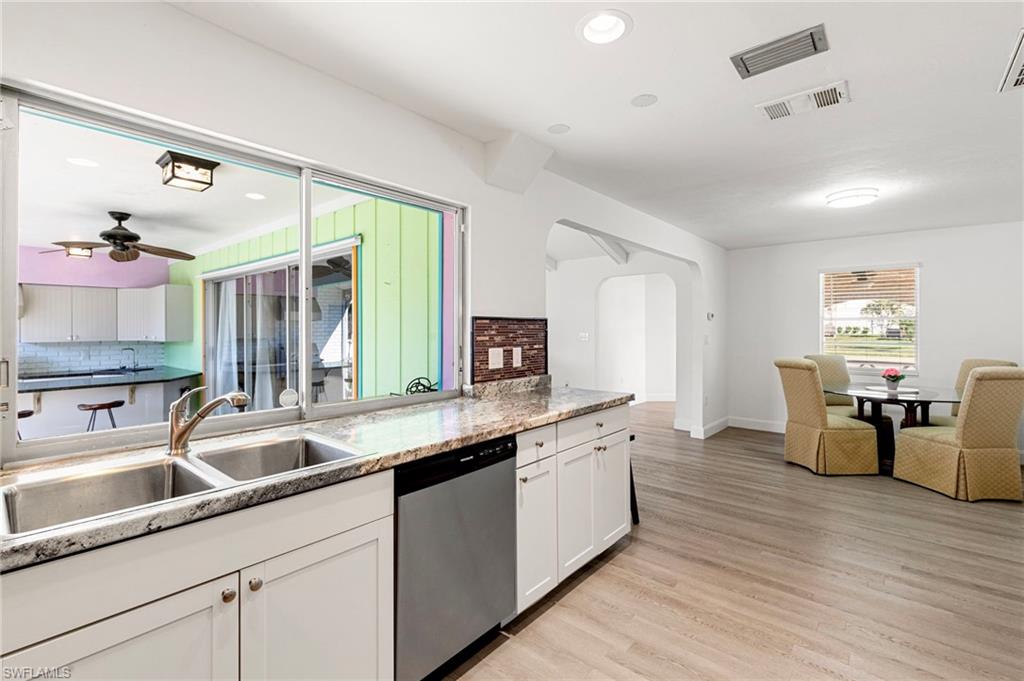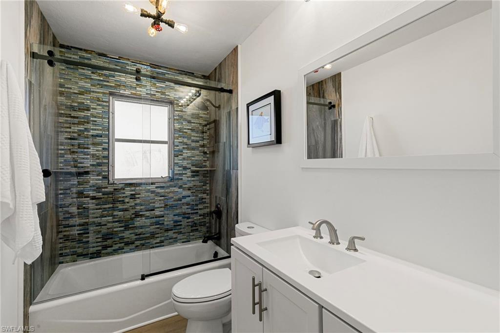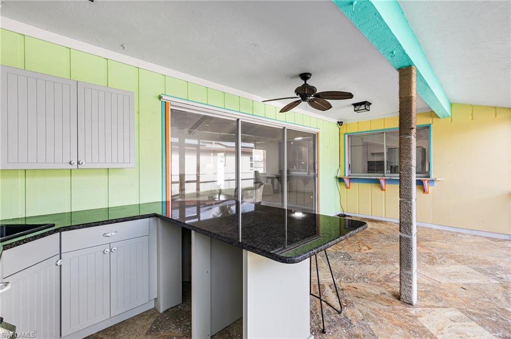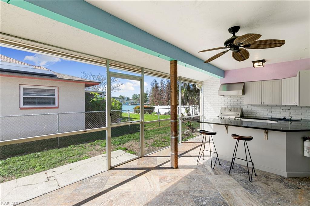Welcome to your slice of paradise in the serene enclave of Isles of Capri in beautiful Naples, Florida! This beautifully renovated 3-bedroom, 2-bathroom home seamlessly blends modern elegance with coastal charm. Step inside to discover a stunning open-concept layout featuring new luxury vinyl, coastal wood-look flooring and vaulted ceilings that create an airy, spacious feel. Sunlight bathes the great room from two skylights and a three-panel sliding glass door. Both bathrooms have been tastefully updated, offering a spa-like retreat. The heart of the home is the renovated kitchen, complete with sleek stainless steel appliances, stylish cabinetry and a convenient pass through window to the outdoor kitchen. Escape to your screened and covered lanai, where you’ll find the outdoor kitchen equipped with a vented gas grill, large granite island bar and sink—ideal for entertaining! Enjoy the serene partial view of the water as you relax in this inviting outdoor space. Situated on a desirable corner lot, this property boasts a large circular driveway for ample parking. The fenced tropical landscaped back yard provides privacy and security, making it perfect for pets or family gatherings. Location is key, and this home doesn’t disappoint! You’ll be just 0.3 miles from delightful restaurants and the marina, allowing you to fully embrace the laid-back island lifestyle. Don’t miss your chance to own this stunning home in the Isles of Capri. Schedule your showing today and start living the dream!