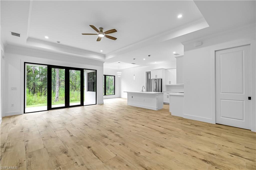 Amazing home built in a 2.73 acres rare 100% upland lot, in the area of Golden Gate Estates, features 3 bedrooms + Den, 2.5 bath, & 2 car garage! Living area of 1,900 sq.ft and a grand total of 2,627 sq.ft. Upgrades include wood plank porcelain tile throughout, crown molding, quartz countertops, stainless steel appliances, and solid wood cabinets! The living room and master suite boast tray ceilings. Master wing features an oversized bedroom, 2 spacious Closets, double vanity, and glass door enclosed shower. The outside of this home will not disappoint either with a Summer Kitchen and a beautiful landscape, auto sprinkler system, and a large lanai. Impact resistant windows/doors! *Photos are from a previous same model home.