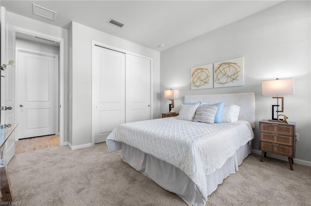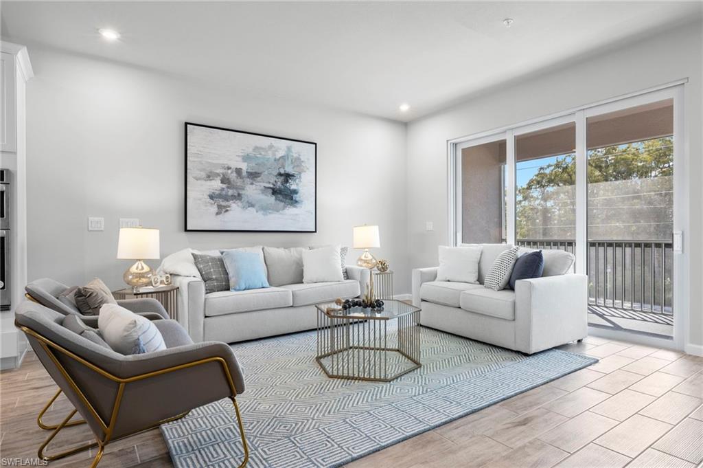 Our Seabright floor plan in our West Indies elevation is a second floor coach home 1480 sq ft. that offers 2 bedrooms, 2 baths and a 1 car garage with screened lanai. Perfect for everyday living or entertainment guests, This bright and airy floorplan includes a beautiful adjacent dining area with direct access to the kitchen. This home has our Platinum Design Package Featuring 42" White Linen cabinets throughout, white Quartz countertops with gray vein, glass tiled backsplash. Huge island where you can sit 5-6 people. Gray Tile throughout except for the two bedrooms and staircase which are carpeted. Three large windows over the stairs brings light through the entire floor. Expansive great room with large sliders bringing additional light in. The second bedroom has windows and a glass door out to a private sitting balcony to enjoy your morning or evening. This is also a smart home featuring a voice doorbell, ClareOne Touchscreen keypad and Ecobee smart thermostat . that works with Alexa. Proximity to shopping centers, restaurants, recreational facilities, beaches and schools. Pricing, dimensions and features can change at any time without notice or obligations. Photos are from a model home with the same design package and not the actual home for sale. Appliances may vary. Taxes are approx as it is new constuction.