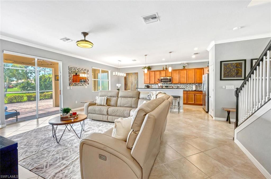 Location! Location! Location! Tucked away on a quiet cul-de-sac, you'll appreciate the peaceful atmosphere away from main road exposure and noise. Welcome to your beautiful retreat nestled within the gated community of Reflection Lakes! Featuring 4 bedrooms, 3 full bathrooms, an office/den, plus a versatile loft, this Amalfi floor plan combines generous square footage & comfortable living across two stories. This home features an open concept kitchen, dining and living room space perfect for parties or family gatherings. The primary bedroom combines great space with comfort and can easily hold an oversized King-size bedroom set. It offers a large walk-in closet and a beautiful en-suite featuring dual sinks, separate tub, enclosed walk-in shower and private water closet. Each guest room features great space and ample closets. When you’re ready to enjoy the outdoors or entertaining in style, head out to your extended lanai, providing enough space for grilling, dining and relaxation with more than enough space for a future pool installation. Take in serene lake views and soak up the warm Southwest exposure, creating a cozy ambiance throughout the home and lanai. **There is a transferrable warranty for appliances and also the current FEMA flood policy is assumable. Policy annual premium is $869. ** Conveniently close to local amenities such as restaurants, shopping, beaches, Eagle Lakes & East Naples Community Parks and more. Enjoy beautiful 5th Ave. and Naples beaches located just 11 miles away and Marco Island with all that it offers is just a quick 15 minute drive in the opposite direction. Reflection Lakes provides a variety of community amenities, including large pool, a community room for gatherings, a billiards room, game/card room, bocce courts, covered picnic areas, and a toddler tot water play area. Don't miss out on this fantastic opportunity to call Reflection Lakes your home sweet home.