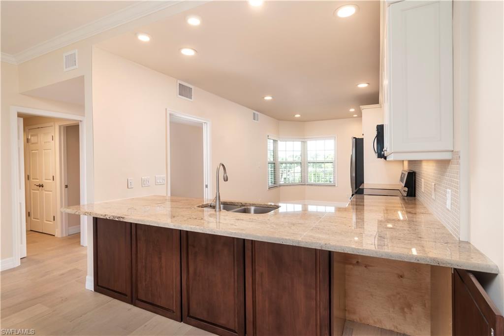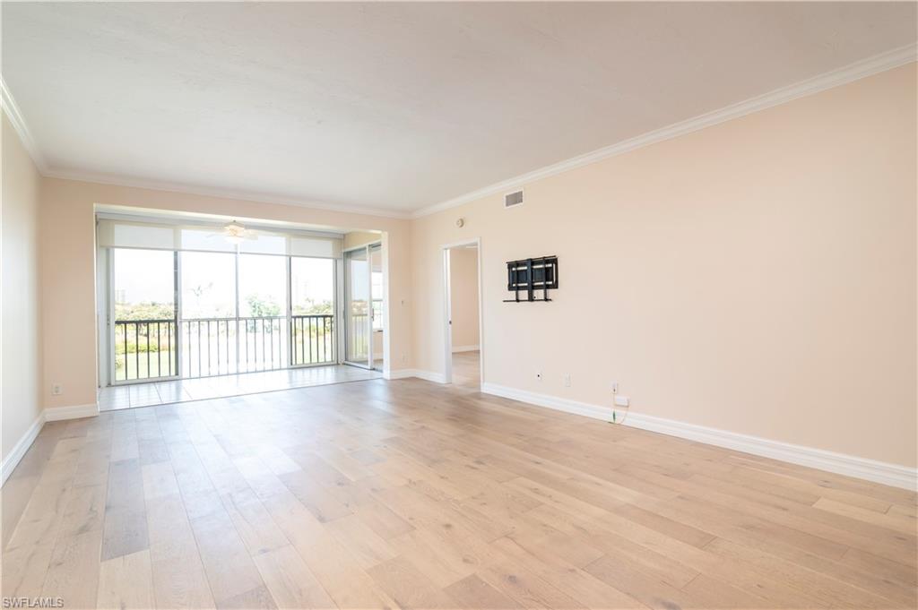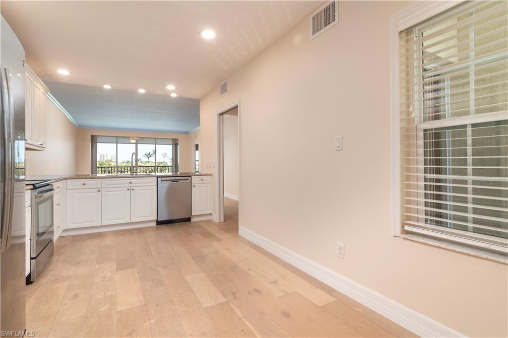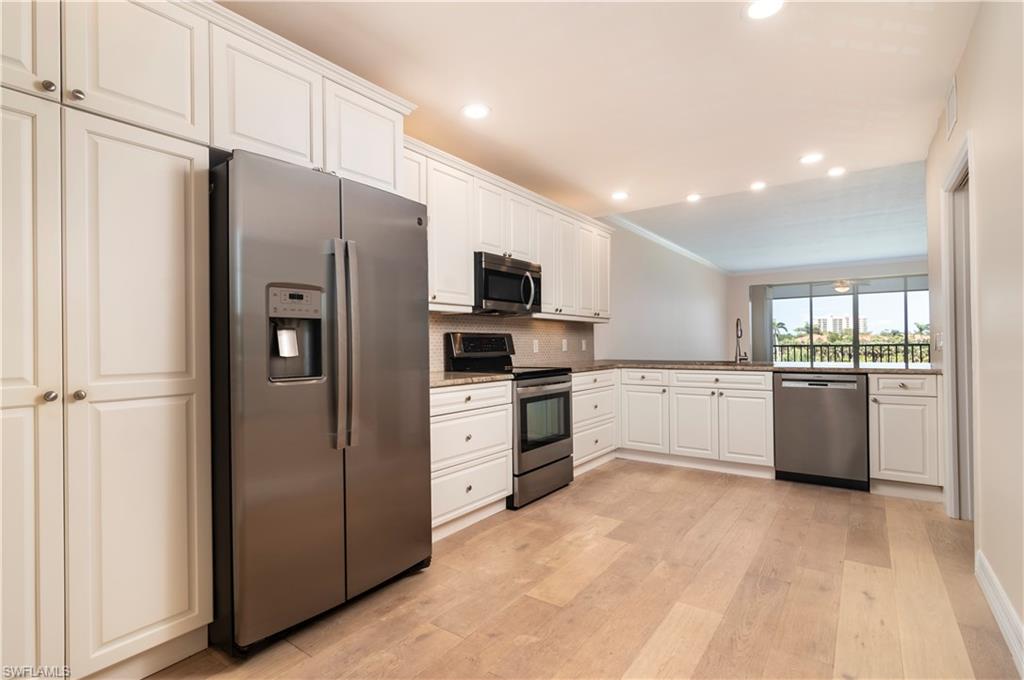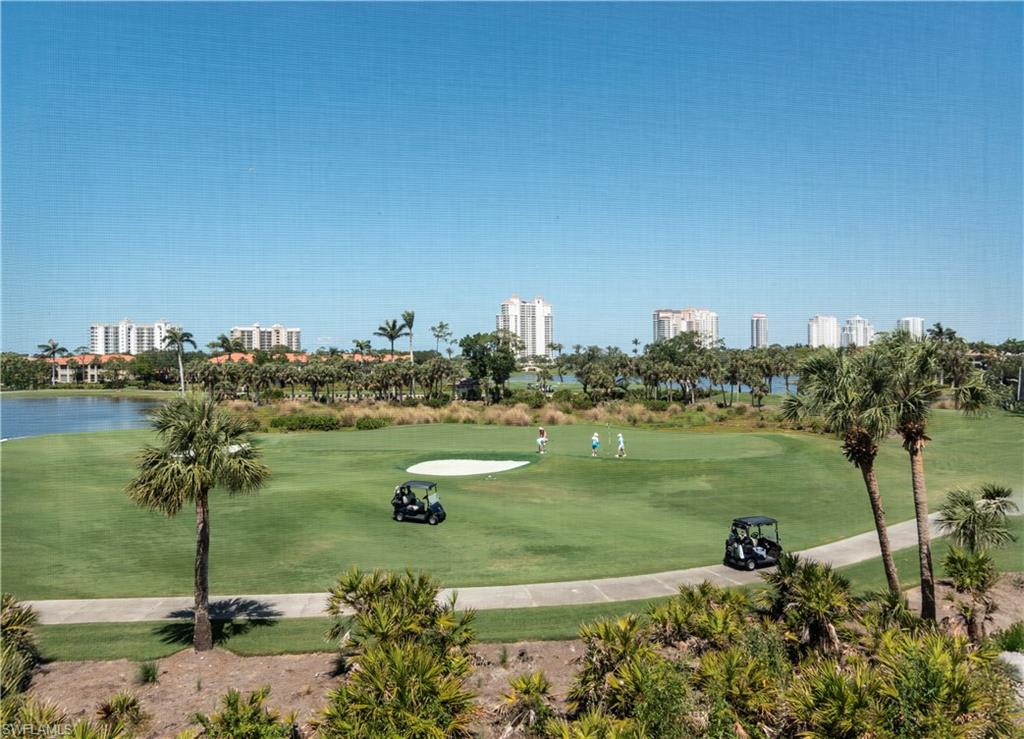 Welcome to the 'GREENBRIAR" Community, and to a Condo building that has the "BEST VIEWS" in all of Bonita Bay.....! Enjoy the "sunsets" and the “fabulous views”.... "as you look down at the Green" of the 15th hole of the BAY ISLAND COURSE and “watch them putt”! ...VIEWS can't get much better ! This residence, which recently has been “totally” refurbished, is a "spacious" great room style floor plan ....open, airy and bright.....with "2" large bedrooms and 2 full baths, plus an area for your "office"... The lanai area has been enclosed with sliding glass doors to add an extra room ....and to take in those "views" (see the photos !) The Kitchen and both baths have been totally remodeled, painted, and updated... plus wood “plank” floors installed throughout the residence.....lots of closets and storage space....and the breakfast room is set up so that it can also be used as an "office" area, if needed. NEW Air Conditioning System installed in 2024....and “impact glass” windows installed… providing storm protection. There is under building private parking for one car, and also a large storage closet (which has been refurbished with new paint, new shelves and lighting). There is plenty of "guest parking" in front of the building. The Greenbriar residents private Swimming Pool/Spa and 2 tennis courts are located just “steps” from this building. The Bonita Bay Golf and Country Club is one of the TOP RATED resort communities within Florida, if not within the USA.... Bonita Bay offers its residents an extensive array of amenities including there own “Private Beach Park on the Gulf of Mexico" ….with Shuttle service taking you back and forth during season - 12 miles of walking/biking trails, 3 large community parks with canoe, kayaking and boat docking facilities. There is a full service Marina with boat docks, and boat storage… and the Marina also has direct access to the Gulf of Mexico ! Membership opportunities are available at the world Class Bonita Bay Club ("member owned) which offers 5 championship Golf Courses, 18 Tennis Courts with a Championship tennis program, Pickle Ball courts, bocce courts, and a state of-the-art Fitness center and Swim Center. This condo can be yours at this --EXCEPTIONAL PRICE....a must see !