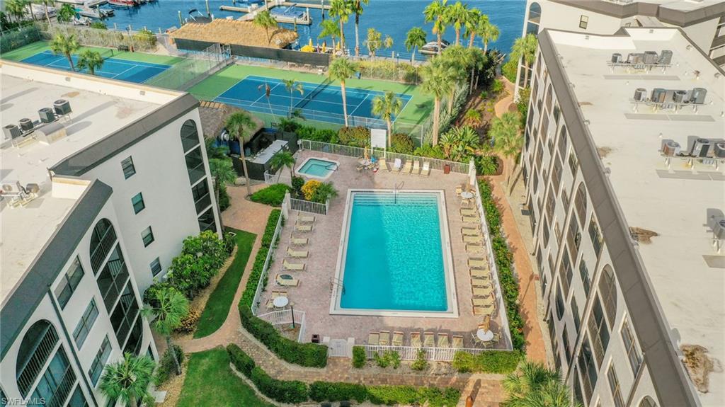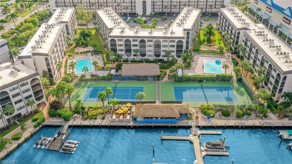 Welcome to one of Anglers Cove’s most unique and desirable cabana units, offered fully turnkey with new furniture throughout and ready for immediate enjoyment or rental income. This two-story retreat combines comfort, convenience, and a true waterfront lifestyle, all within a vibrant resort-style community on Marco Island. Enjoy views of the sparkling pool and tennis courts from your private screened-in lanai — the perfect place to relax or entertain. Inside, you’ll find an oversized master suite with three spacious closets and two beautifully updated bathrooms, blending comfort with modern style. The kitchen features a central island ideal for casual dining or serving up takeout from the on-site waterfront Tiki Bar. Downstairs, your private cabana-level bonus space offers flexibility for guests, hobbies, or extra storage. The unit also boasts a new washer and dryer, a newer AC, and a newer hot water tank, giving you peace of mind and move-in-ready convenience. Anglers Cove offers rare 7-day rental flexibility, making this an ideal investment opportunity with strong income potential. Community amenities include two pools, three hot tubs, tennis courts, on-site dining, and boat and jet ski docks available exclusively to owners — perfect for exploring the Marco River and Gulf of Mexico. Whether you’re searching for a seasonal escape, a high-performing rental, or both, this upgraded cabana unit checks every box. Easy island living starts here.