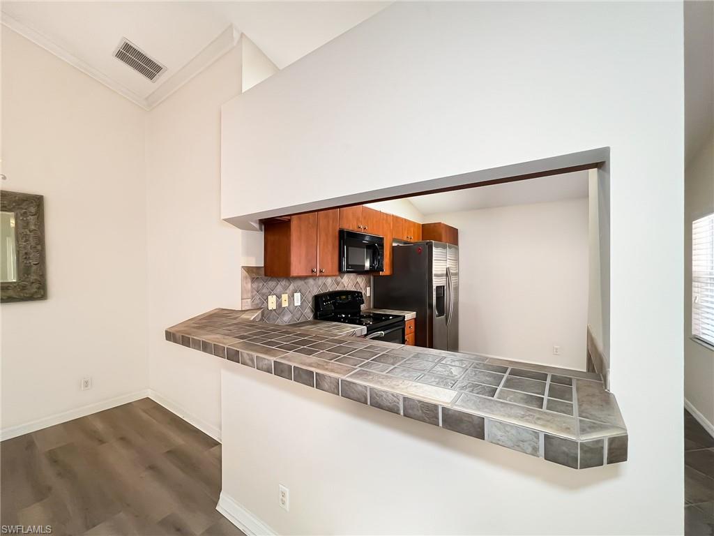 Location, Location, Location! Come see this spacious two bedroom plus den two bath home with attached two car garage in one of the most desirable areas of Estero. The present owner has added a fresh coat of paint on the interior of the home and installed new luxury vinyl tile throughout most of the home. The kitchen is equipped with newer appliances and a breakfast bar area. For added peace of mind the home can be protected during hurricane season with easy to use accordion shutters. This super active over 55 community has all the amenities you need including a pool and spa; a large fitness area; tennis and pickleball courts; bocce courts; billiards room; arts and crafts room just to name a few. Residents also have access to onsite management and an activities director. All of this with very inexpensive quarterly dues. Easy access to I75; Southwest Florida International Airport; the world renowned beaches of southwest Florida; and two Major League Baseball spring training facilities. Come take a look, you will not be disappointed. Great for a second home, or primary residence to create your own family memories.