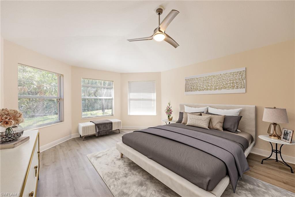 BEST price in Rookery Pointe. Exceptional value for this meticulous single family home which has been updated with NEW interior paint from floor to ceiling and luxurious LVP which flows seamlessly throughout the house (NO CARPET) and a newer, flat tile roof. Location is everything! This Single story, Beautiful home is conveniently located in the natural gas and gated community between 41 and I-75. Well appointed home boasts a spacious, open floor plan with the primary bedroom overlooking the private preserve, dual sink vanity bath, jacuzzi tub, private water closet, two other full bedrooms and full bathroom tucked away behind glass, French doors which create another layer of privacy and quiet for guests or office space. The large kitchen features a gas cooktop, a plethora of cabinet space, pantry and large breakfast bar- seating 4-6 along with an eat in kitchen. The spacious great room spills onto the screened lanai via retractable, 3 sliding glass doors which extends your entertaining space and offers an abundance of natural light. Here, you can relax, enjoy your coffee overlooking the private and peaceful preserve. SW rear exposure. The Preserves of Rookery Pointe protect the home from hurricane damage (NO Flooding from Hurricane Ian, Helene or Milton), hurricane shutters for extra protection. Just a short drive to sandy-white beaches and Steps away from the large clubhouse with screened in party/eating area, where you can enjoy the heated resort style community pool with lap lanes, water aerobics, stretch class, clay tennis courts, pickleball courts, fitness room, inline skating rink, basketball court, and new kids playground with artificial turf! The active community is virtually maintenance free, lawn care included. It is ideally located close to Coconut Point Mall, Miromar Outlets, Gulf Coast Town Center, FGCU, tons of fabulous dining choices, hospitals, right between I-75/US-41 and 1 exit away from RSW airport. Location, Location, Location! New AC 2017. Some photos are virtually staged.