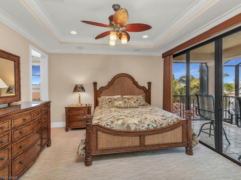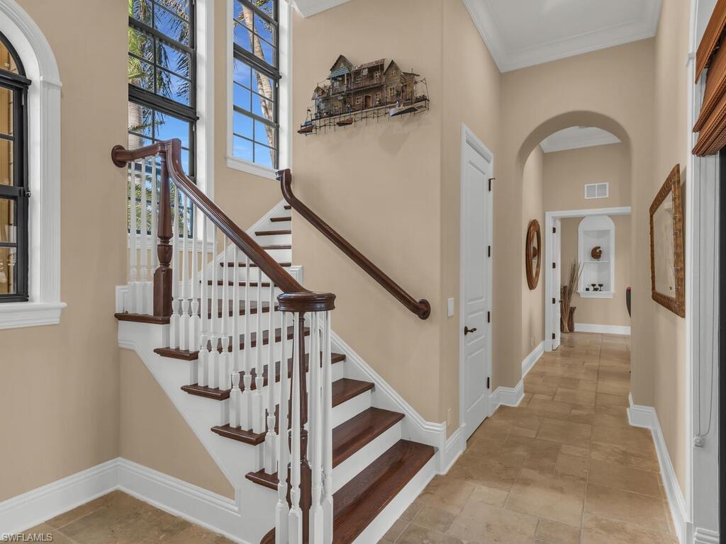 MAGNIFICENT is the only way to describe this large waterfront home. Two stories tall with an elevator and two master suites. Two more bedrooms and four and a half bathrooms make for over 4000 sq ft under air with almost 6000 sq ft of total living space. Custom cabinets with granite countertops, high end ceiling fans, impact windows and doors, upgraded appliances, like an induction cook top! Gas fireplace and heated pool and spa. In ground propane tank is already in place saving thousands in whole home generator installation. New roof 2021, New 2024 oversize pool heater, new Lania screens 2024, newer AC systems. With 153' of waterfront on an intersecting waterway and a 100' wide canal that 65' yacht will easily fit right at your dock and your power boat on the existing boat lift. Just minutes to the Gulf of Mexico with NO BRIDGE for those big sailboats and just a short distance to shopping and restaurants. Being sold partially furnished, this one is a MUST SEE!