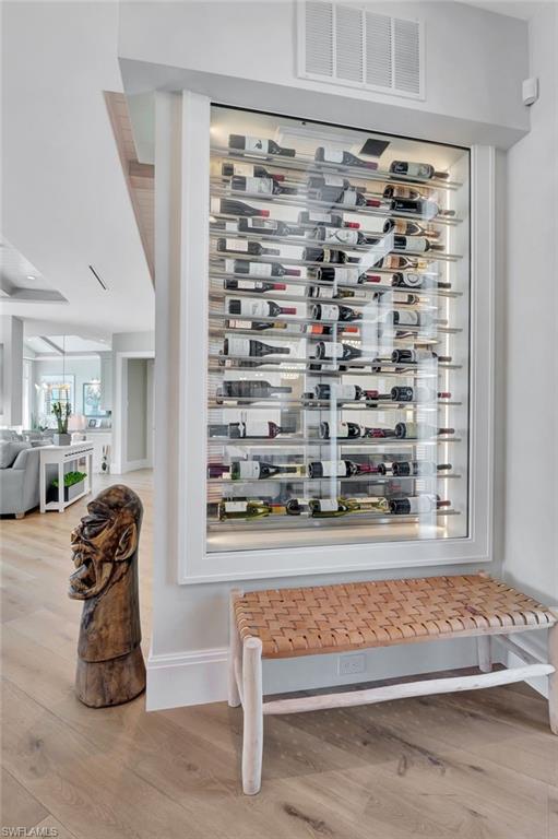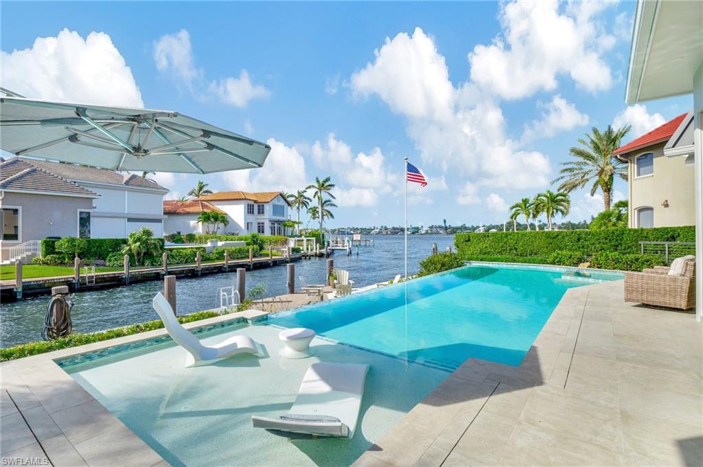 Overlooking Naples Bay with a beautiful Southwesterly view you will be amazed by the craftsmanship and features of this perfect residence. Every component was designed specifically to be an owner’s ideal “Forever” home. As you enter the incredible view of the water will only be slightly encumbered by a gorgeous glass see-through eighty bottle temperature-controlled wine wall. The Kitchen and Butler’s Pantry is full of Wolf, Subzero and Thermador appliances, if you enjoy entertaining the potential is endless. Sit down in your Family Room or Dining Room and look out at the passing boats. Owners Suites and Laundry Rooms on both floors give you the opportunity to decide which level will be your primary sleeping quarters. So many features to share…No-touch automated sliding glass doors open if your hands are full, relax in front of multiple gas and electric fireplaces, all ensuite bedrooms one of which is a beautifully designed bunk room. Oversized closets and storage areas as well as a bonus upstairs sitting area with balcony view of Tin City offering yet another casual family or guest space.The indoor/outdoor living is so well done it is one in the same. Relax on the in-pool chaise lounges, stop down to the dockside fire pit, watch a game on the back lanai, drink coffee on the upstairs balcony or you can quickly drop your boat in the water and head out to the Gulf. This house has an elevator that stops on garage level, first and second floor. An amazing property in an amazing neighborhood, come and get it!