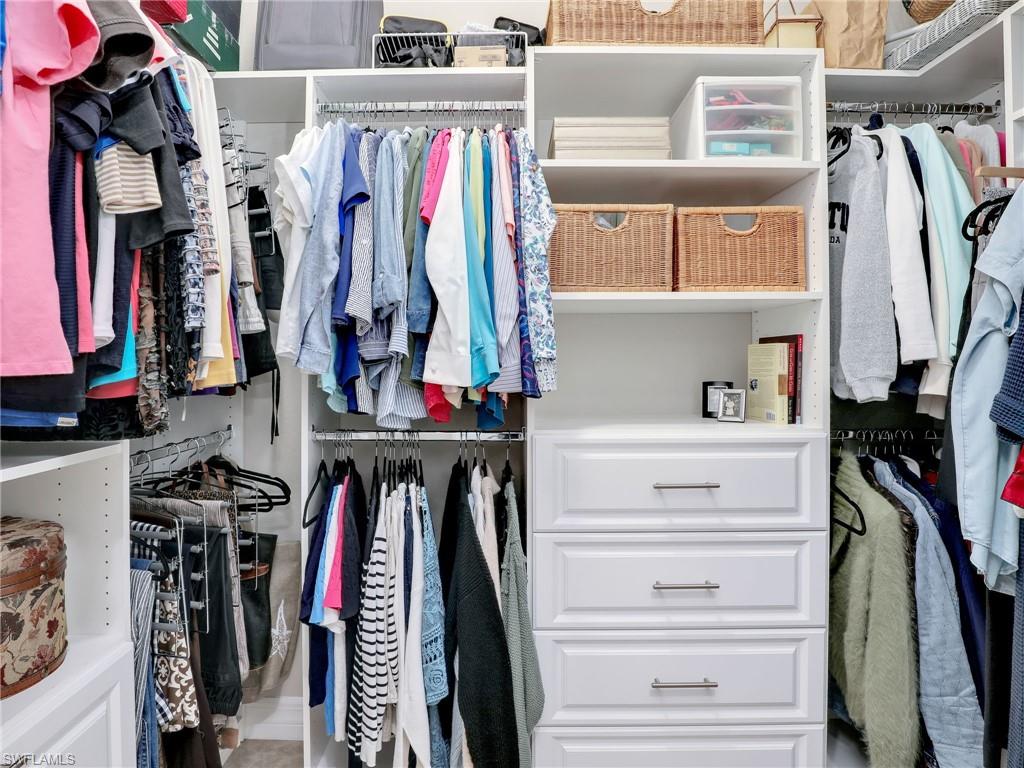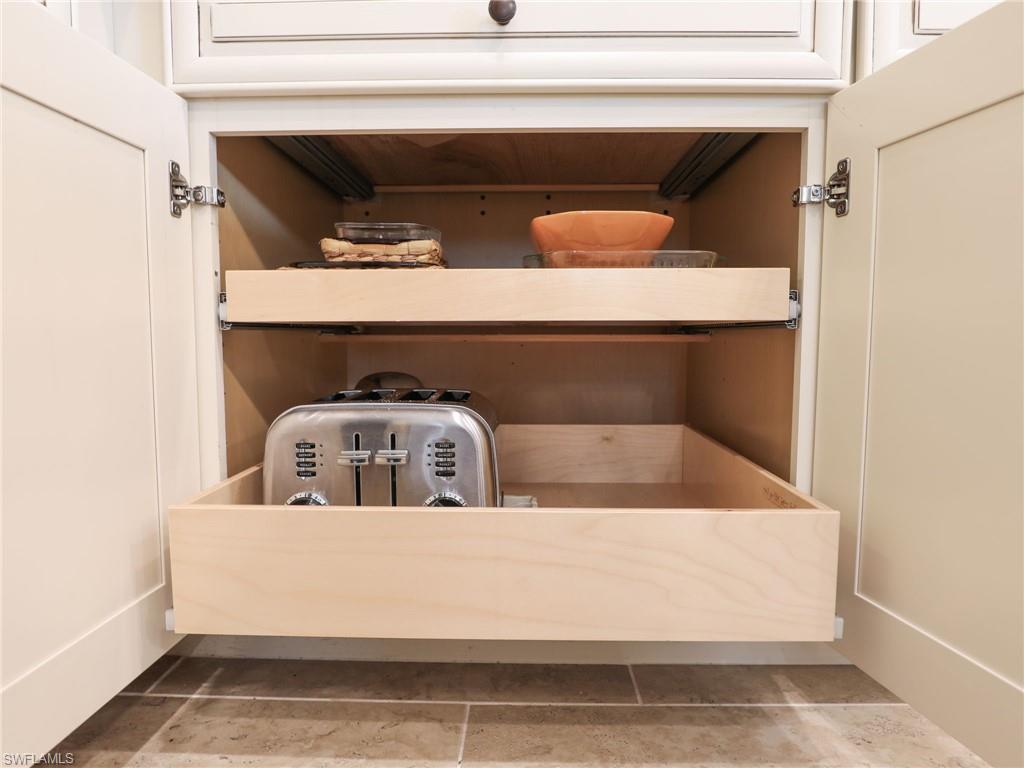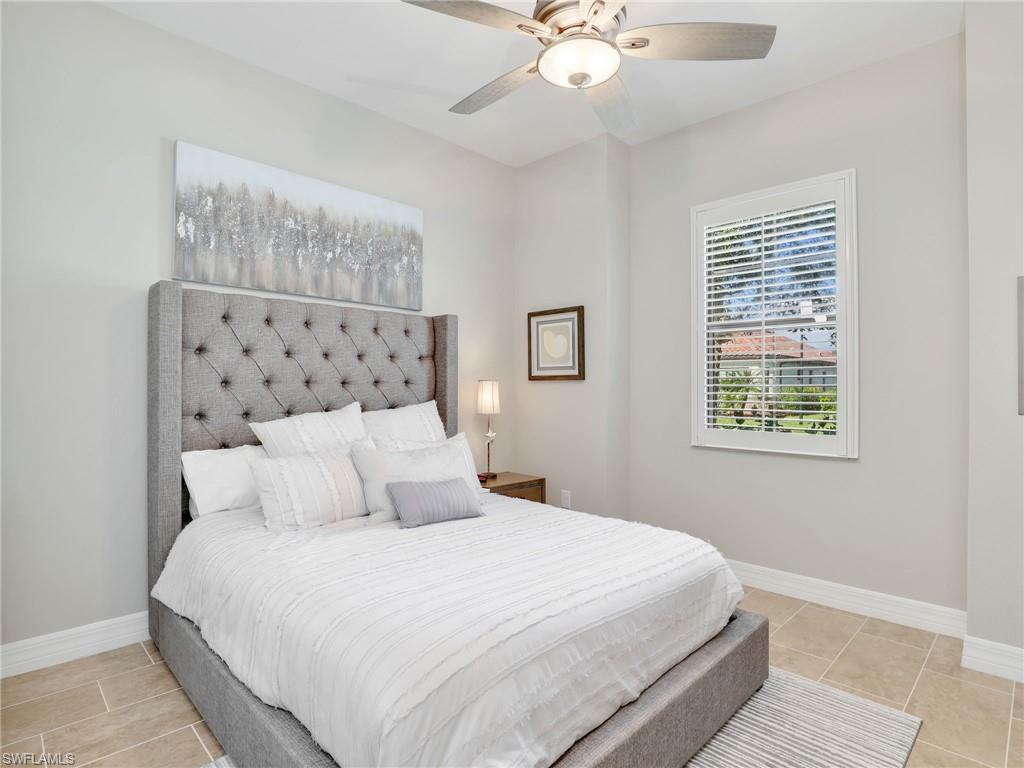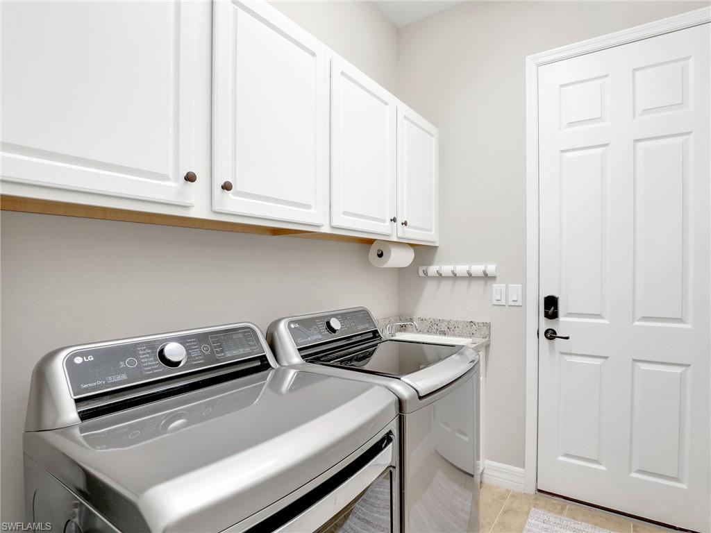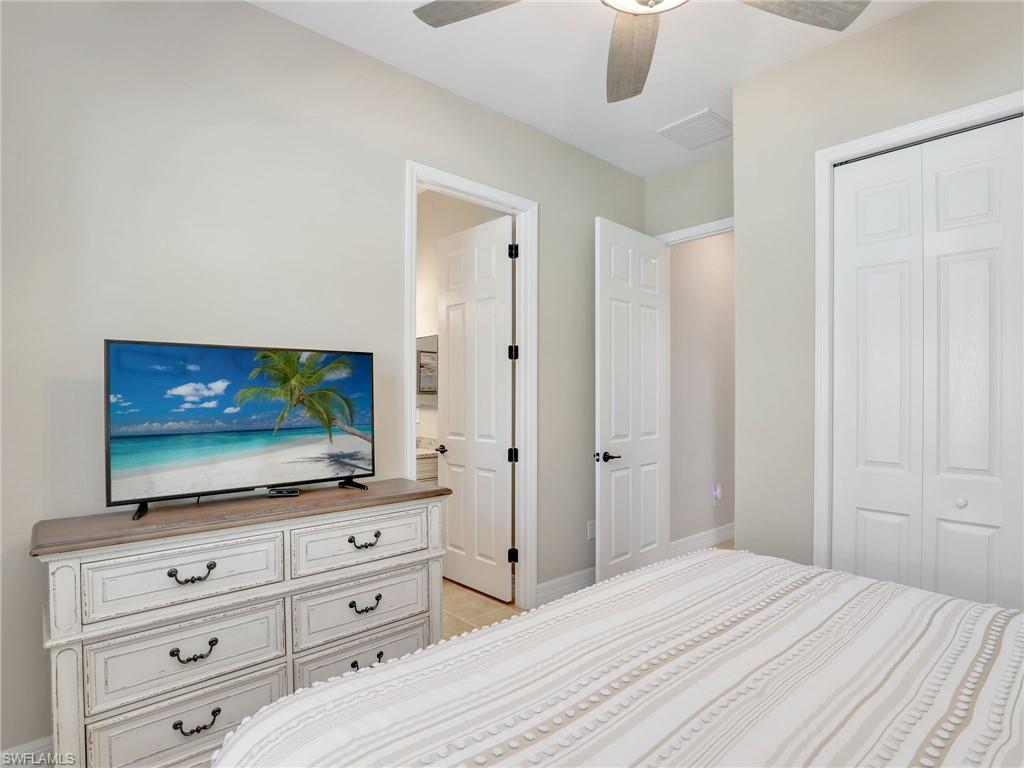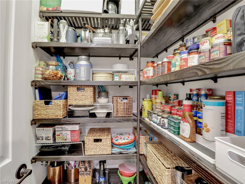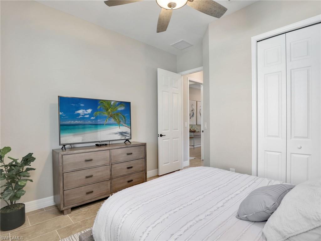 Step into SWFL luxury living! This immaculately kept home showcases too many high-end upgrades to list with 4 beds/3 baths and 2247 sqft of living space. Before even entering, you are greeted by a paver drive and walkway, luscious landscaping with professionally installed landscape lighting and custom front door with glass insert, allowing natural light to illuminate the interior. Once inside, 10-foot ceilings with crown moulding greet you with direct views to the living space and outdoor oasis through the 12-foot triple sliding glass doors. The split floorplan provides lots of options with one secondary bedroom featuring an ensuite bathroom with granite countertops, a walk-in tiled shower with frameless glass enclosure and rainfall shower head. The other two bedrooms (one currently being used as a den) are across the hall and share a bathroom, also with granite countertops, a bathtub with glass shower enclosure and rainfall shower head. There is no carpet in sight here; flooring throughout is tile or wood. The open concept living space feels bright and spacious with tray ceilings in both the dining and living rooms. Stylish light fixtures and ceiling fans adorn the spaces and plantation shutters allow you to easily let the natural light in or maintain privacy when desired. The living room is accented with an electric fireplace encased in stunning decorative framework. Nearby, the kitchen dazzles with 42” upper cabinets with crown moulding, stainless-steel appliances, a built-in oven and microwave, and granite countertops with a single basin stainless-steel sink. The walk-in pantry has been lined with custom wood shelving for extra storage and all bottom kitchen cabinets have pull out rolling shelving installed for easy access to all your cookware. At the rear of the home, the expansive primary suite offers views of the backyard, pool and pond with private access to the lanai. Two closets are available to accommodate your needs, a walk-in and reach-in, both with custom built-in shelving to make organizing and storage a breeze. Enjoy a spa day in your ensuite bathroom, with granite countertops, dual sinks, private commode space, garden tub, and tiled walk-in shower with glass enclosure and rainfall shower head. The primary suite has programmable automatic smart shades in both the bathroom and bedroom. Nothing beats Florida living more than having a backyard oasis. Step outside onto your covered and screened lanai offering plenty of space for outdoor dining or socializing. Your outdoor kitchen highlights Bull brand propane gas grill and fridge with granite countertops and stonework accents. Cool off in your saltwater pool and spa overlooking the landscaped backyard and pond or turn on the pool heater for year-round use. Stay protected from storms with impact rated windows and installed lanai storm shade. Enjoy access to the community amenities with this SOCIAL club membership home. Bocce ball and pickleball coming in fall 2025!