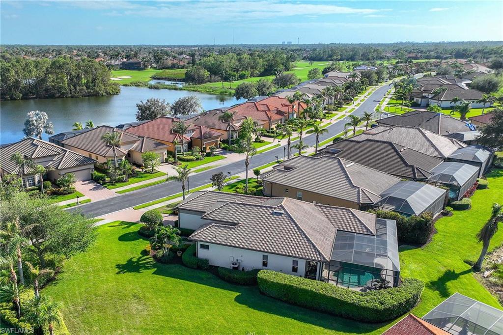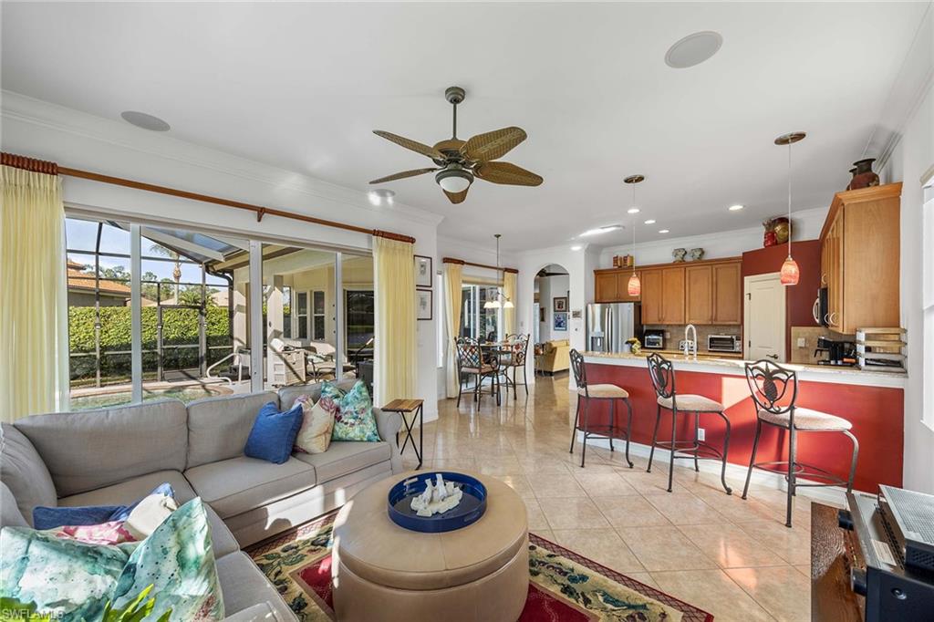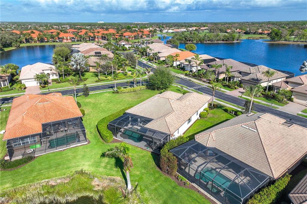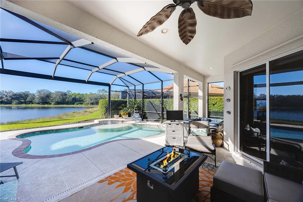 Location is key. This popular west-facing Stock Valdosta model basks in the sun throughout the day and offers beautiful sunsets. The large lanai and pool deck provide hours of relaxation overlooking a lake, in X500 zone. The interior is finely appointed with builder options and upgrades. These include designer tile laid on the diagonal throughout the entire living area. The spacious kitchen is finished with granite countertops and stainless appliances and features a spacious pantry and eat-in morning room. The garage has been customized with overhead storage providing more storage than most homes in this class. Prestwick Place is a friendly neighborhood offering you a great seasonal destination as well as year-round residency. As a deeded member of the award-winning Players Club, you will enjoy formal and casual dining, three pools, attended fitness center and full-service spa, bocce and 13-court championship tennis center with pickleball. Lely Resort is home to the Classics Country Club with 54 holes of spectacular golf on three championship courses, two are open to the public. Furnishings are also available by agreement.