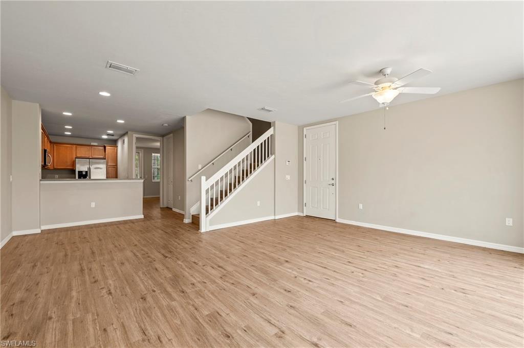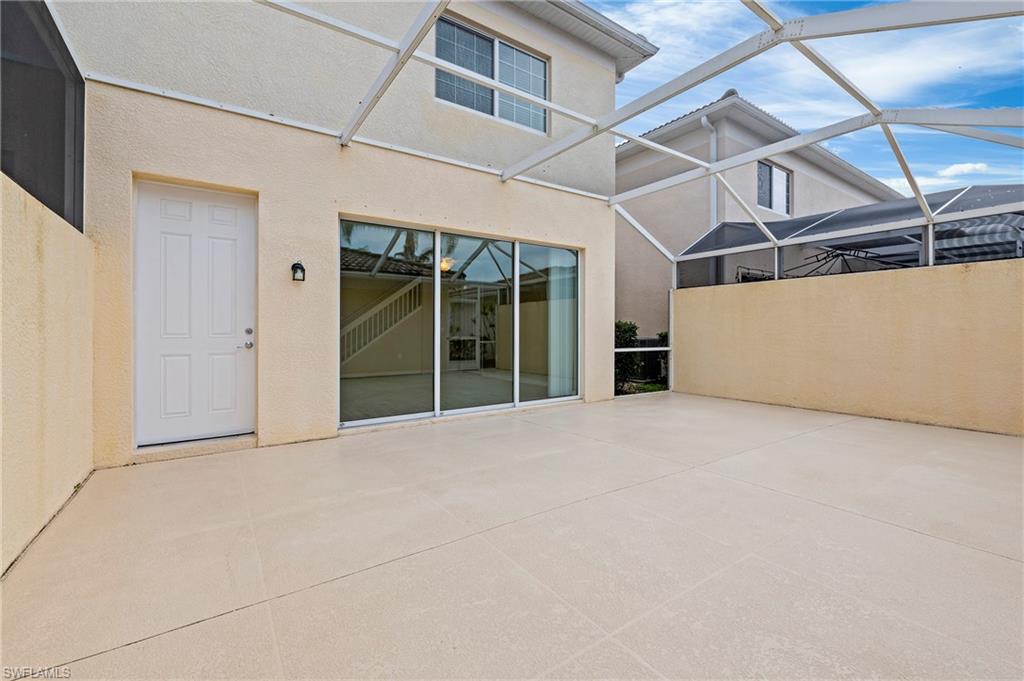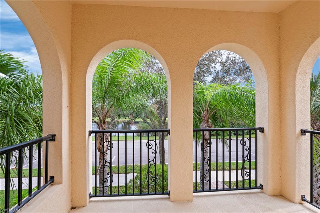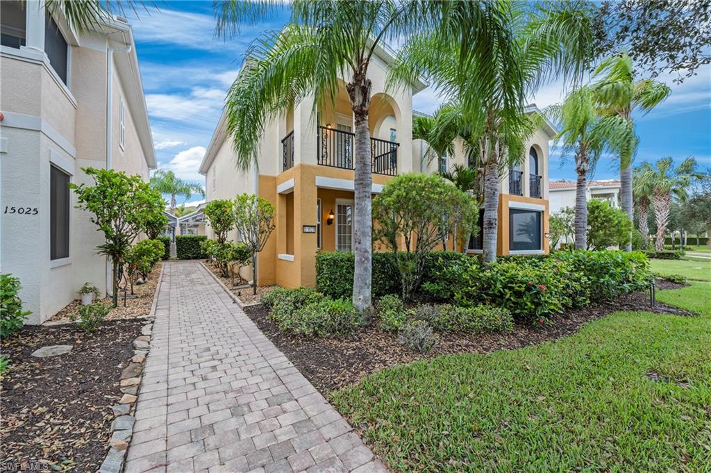 Offered by the original owner, this meticulously maintained Dublon townhome combines comfort, convenience, and charm. Featuring luxury vinyl plank flooring throughout and no carpet, it’s designed for easy upkeep and modern living. Ideally situated in the peaceful southwest corner of the community, you’re just steps from the renowned Butterfly Gardens. This second-generation model offers thoughtful upgrades, including soaring 9-foot ceilings on the first floor and elevated vanities in the bathrooms. Enjoy serene lake views from both your front porch and second-story balcony. Each of the three spacious bedrooms features walk-in closets and private en-suite bathrooms. The under-stair storage area is perfect for overflow pantry items or general storage needs. The living area is bright and welcoming, thanks to a triple sliding door that fills the space with natural light throughout the day. A detached two-car garage creates a private courtyard ideal for outdoor living. Both the front porch and balcony can be screened in for added comfort and extended living space. Upstairs, the laundry room includes a utility sink for handwashing, and the larger bedroom can comfortably accommodate two queen-size beds. VillageWalk offers 22 miles of scenic sidewalks, riverwalks, and pedestrian bridges—perfect for biking, walking, running, or golf cart rides. The Town Center is the heart of the community, featuring a full-time activities director and a wide array of amenities: resort and lap pools, bocce, pickleball, tennis, basketball, playground, gas station, bar & grill, hair salon, bagel shop, and spa. Conveniently located near Mercato, Coconut Point, Promenade, and Gulf Coast Town Center, with easy access to the airport—without the noise—VillageWalk offers the best of both tranquility and accessibility. Come experience the vibrant lifestyle at VillageWalk today!
