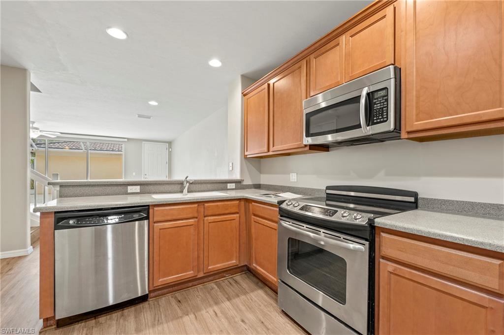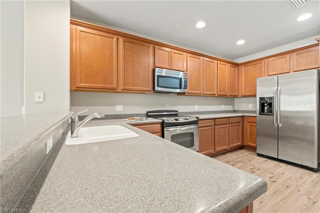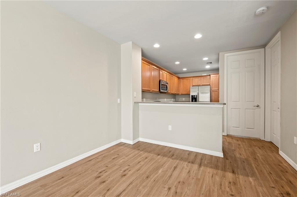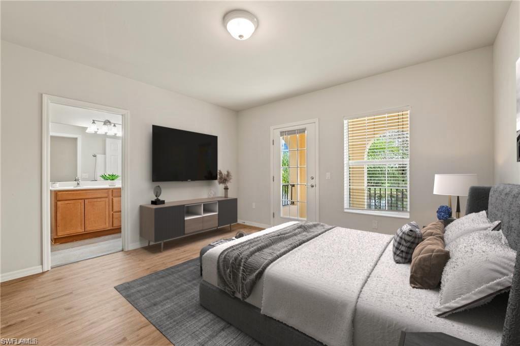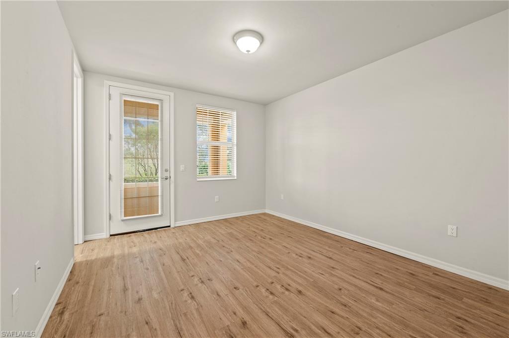 Offered by the original owner, this meticulously maintained Dublon townhome combines comfort, convenience, and charm. Featuring luxury vinyl plank flooring throughout and no carpet, it’s designed for easy upkeep and modern living. Ideally situated in the peaceful southwest corner of the community, you’re just steps from the renowned Butterfly Gardens. This second-generation model offers thoughtful upgrades, including soaring 9-foot ceilings on the first floor and elevated vanities in the bathrooms. Enjoy serene lake views from both your front porch and second-story balcony. Each of the three spacious bedrooms features walk-in closets and private en-suite bathrooms. The under-stair storage area is perfect for overflow pantry items or general storage needs. The living area is bright and welcoming, thanks to a triple sliding door that fills the space with natural light throughout the day. A detached two-car garage creates a private courtyard ideal for outdoor living. Both the front porch and balcony can be screened in for added comfort and extended living space. Upstairs, the laundry room includes a utility sink for handwashing, and the larger bedroom can comfortably accommodate two queen-size beds. VillageWalk offers 22 miles of scenic sidewalks, riverwalks, and pedestrian bridges—perfect for biking, walking, running, or golf cart rides. The Town Center is the heart of the community, featuring a full-time activities director and a wide array of amenities: resort and lap pools, bocce, pickleball, tennis, basketball, playground, gas station, bar & grill, hair salon, bagel shop, and spa. Conveniently located near Mercato, Coconut Point, Promenade, and Gulf Coast Town Center, with easy access to the airport—without the noise—VillageWalk offers the best of both tranquility and accessibility. Come experience the vibrant lifestyle at VillageWalk today!